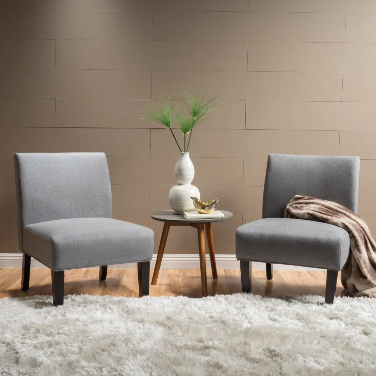 GDF Studio Abner Contemporary Slipper Accent Chair, Gray Fabric and Matte Black