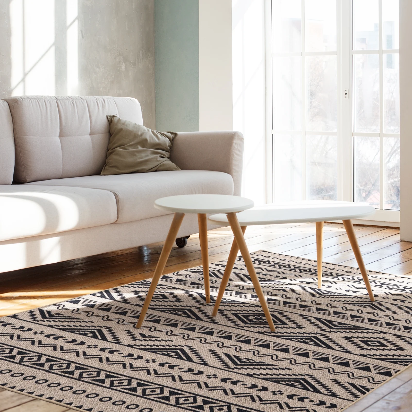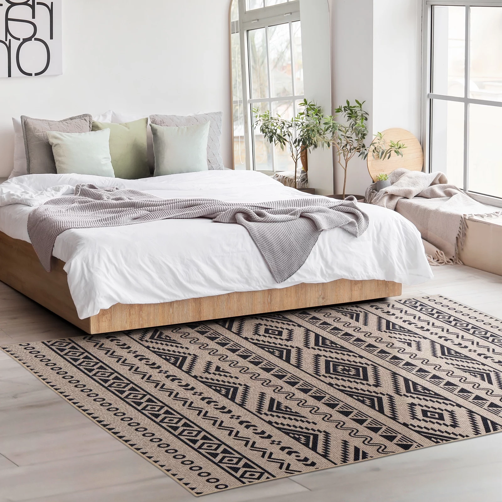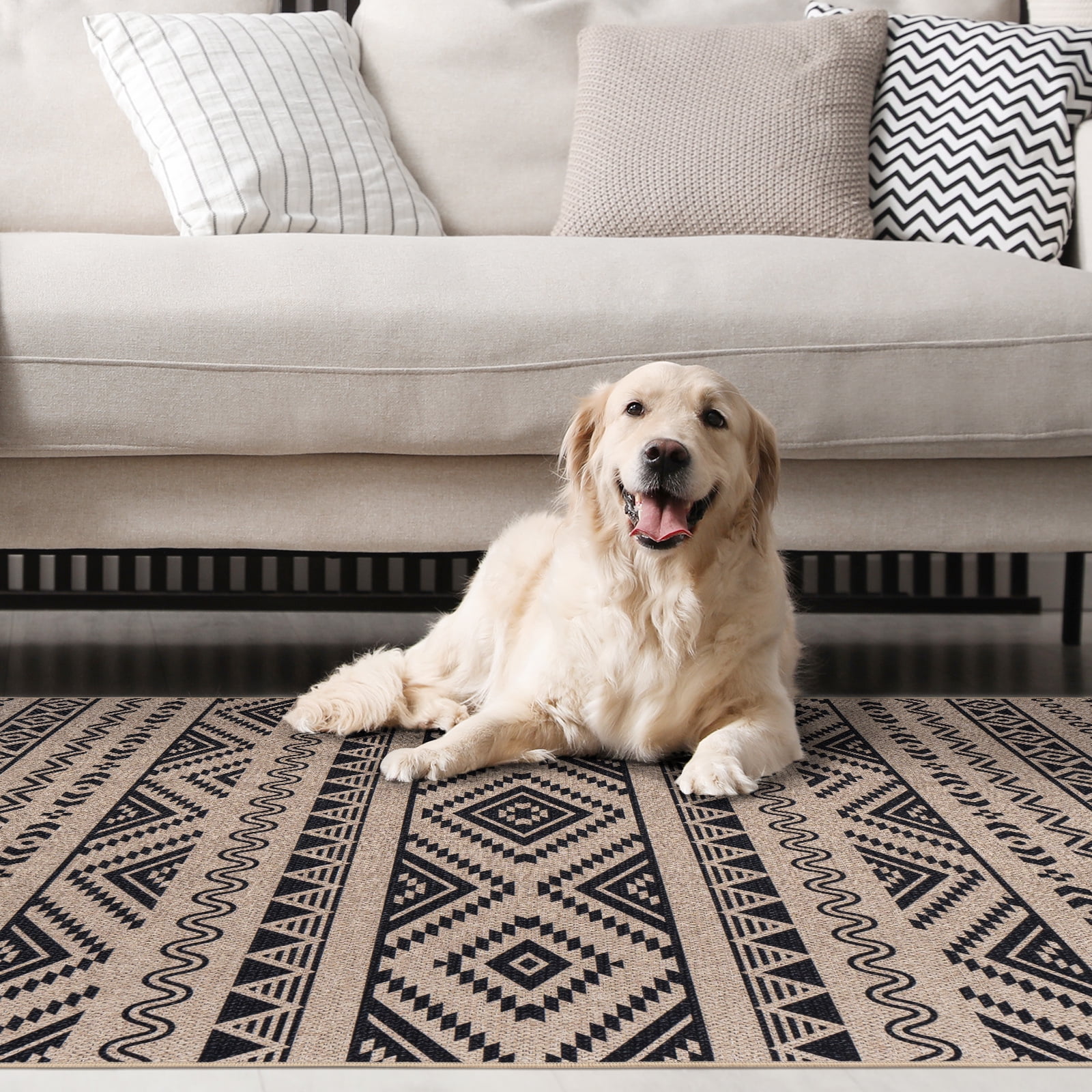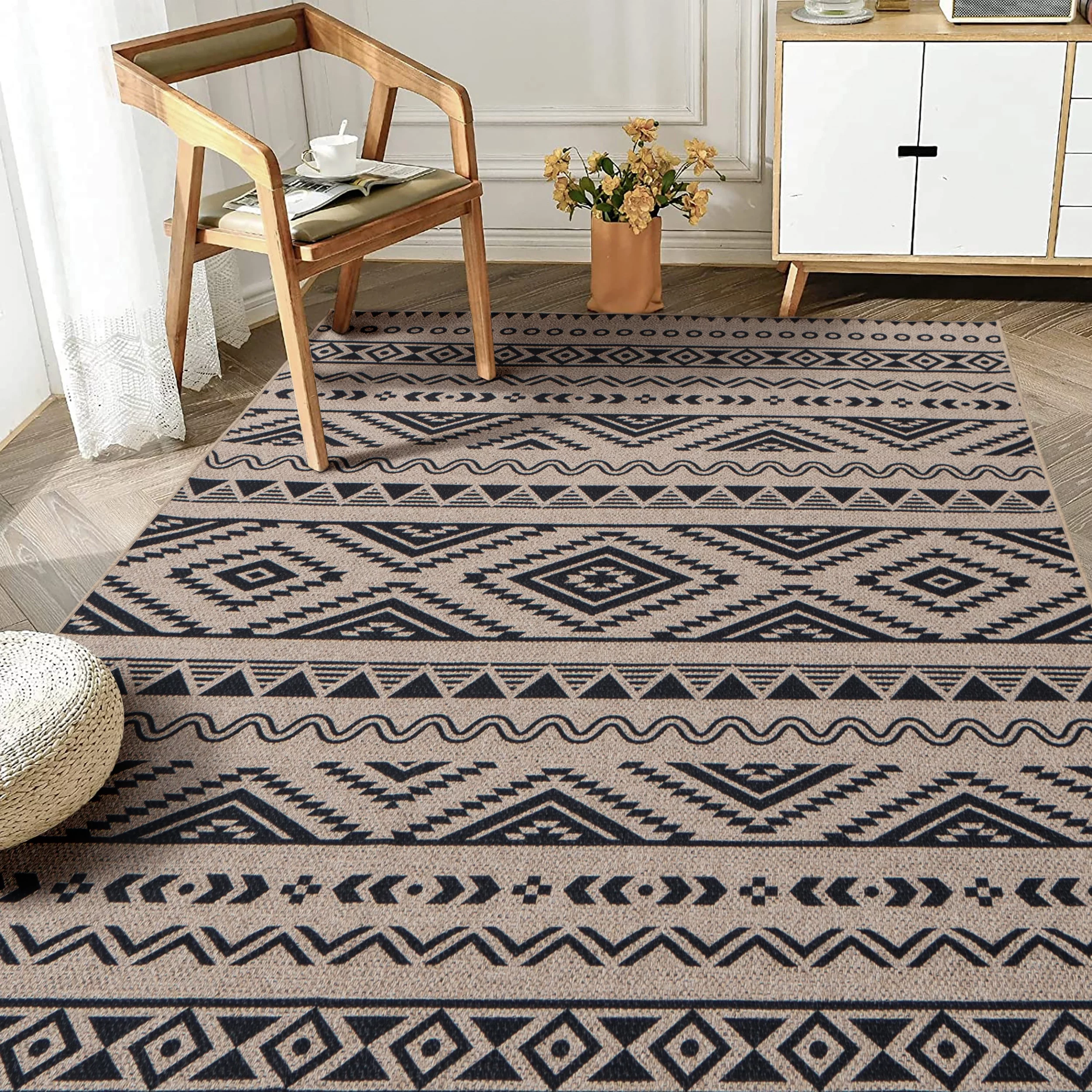 6x9 Washable Area Rugs for Bedroom Non-Slip Large Throw Rugs Soft Geometric Dinning Room Rug Tribal Distressed Carpet for Living Room Entryway Kitchen Office