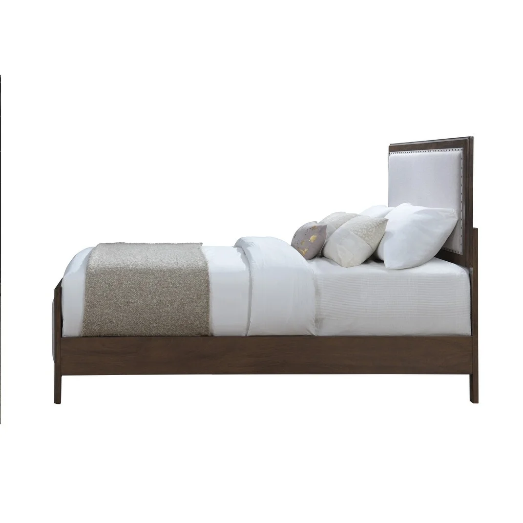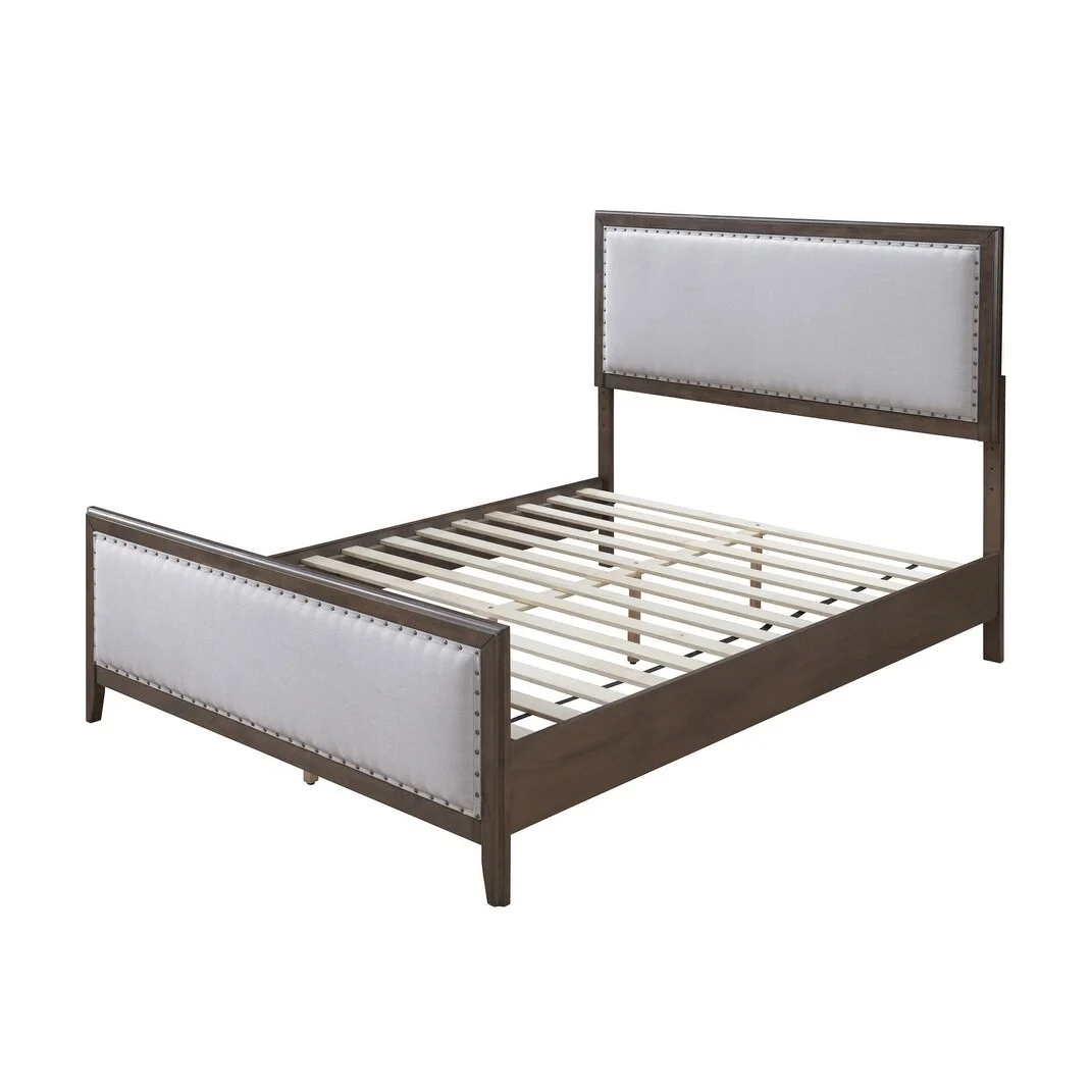 DG Casa Jessese Natural Solid Wood Upholstered Nailhead Trim Adjustable Platform Bed Queen