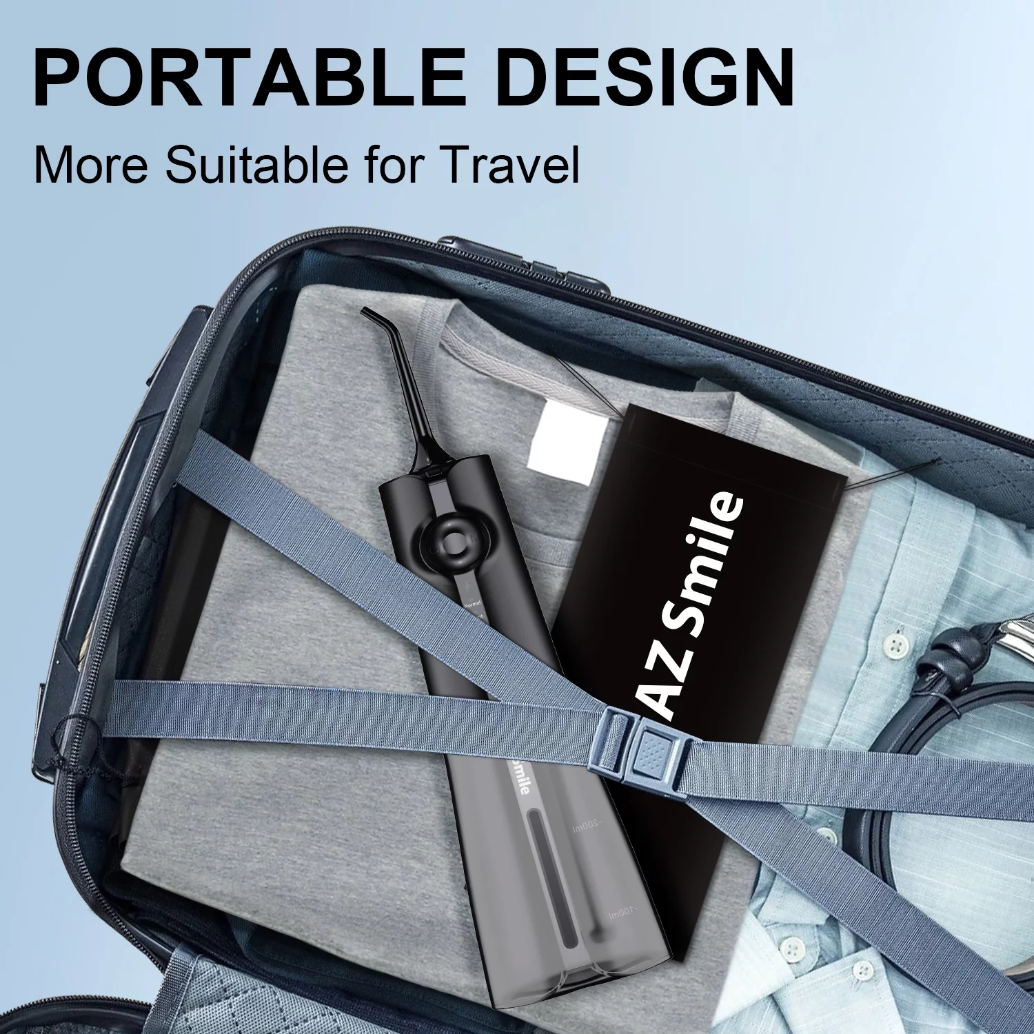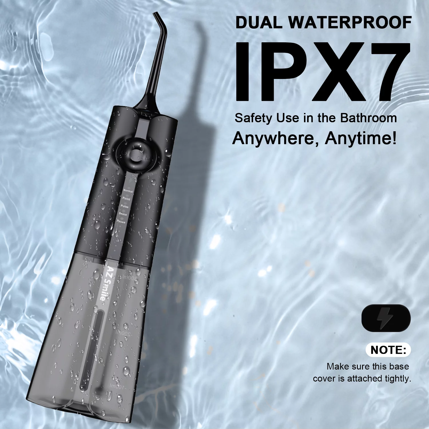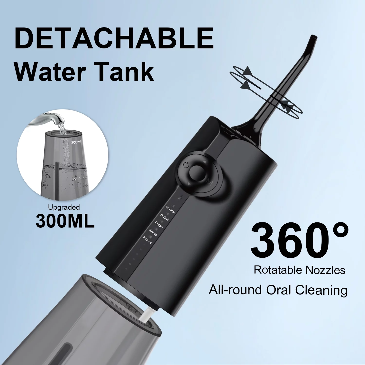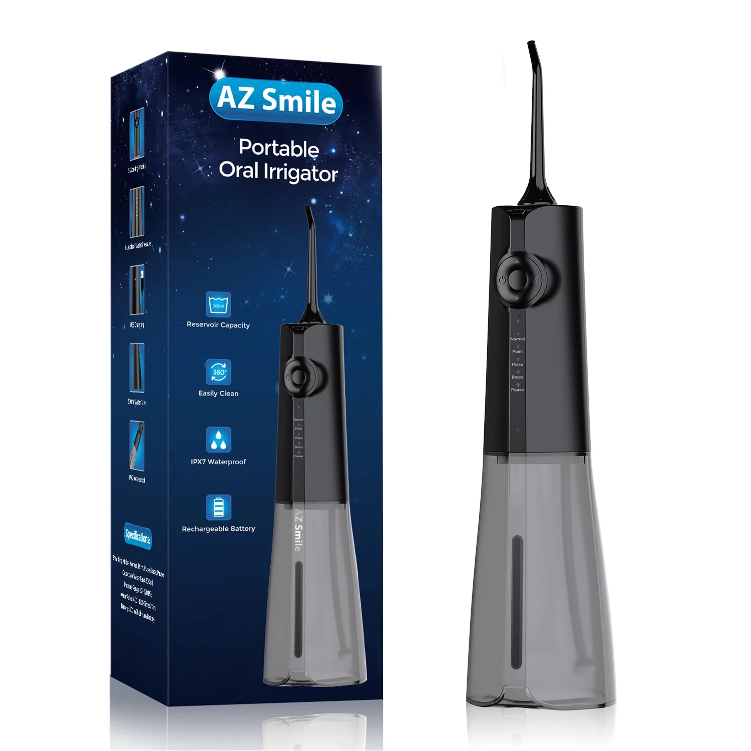AZSmile Cordless Water Flosser for Teeth Cleaning, 5 Modes Portable Oral Irrigator for Teeth, Dental Care with 8 Tips, 300 ML Detachable Water Tank, Rechargeable Water Pick for Home Travel Black