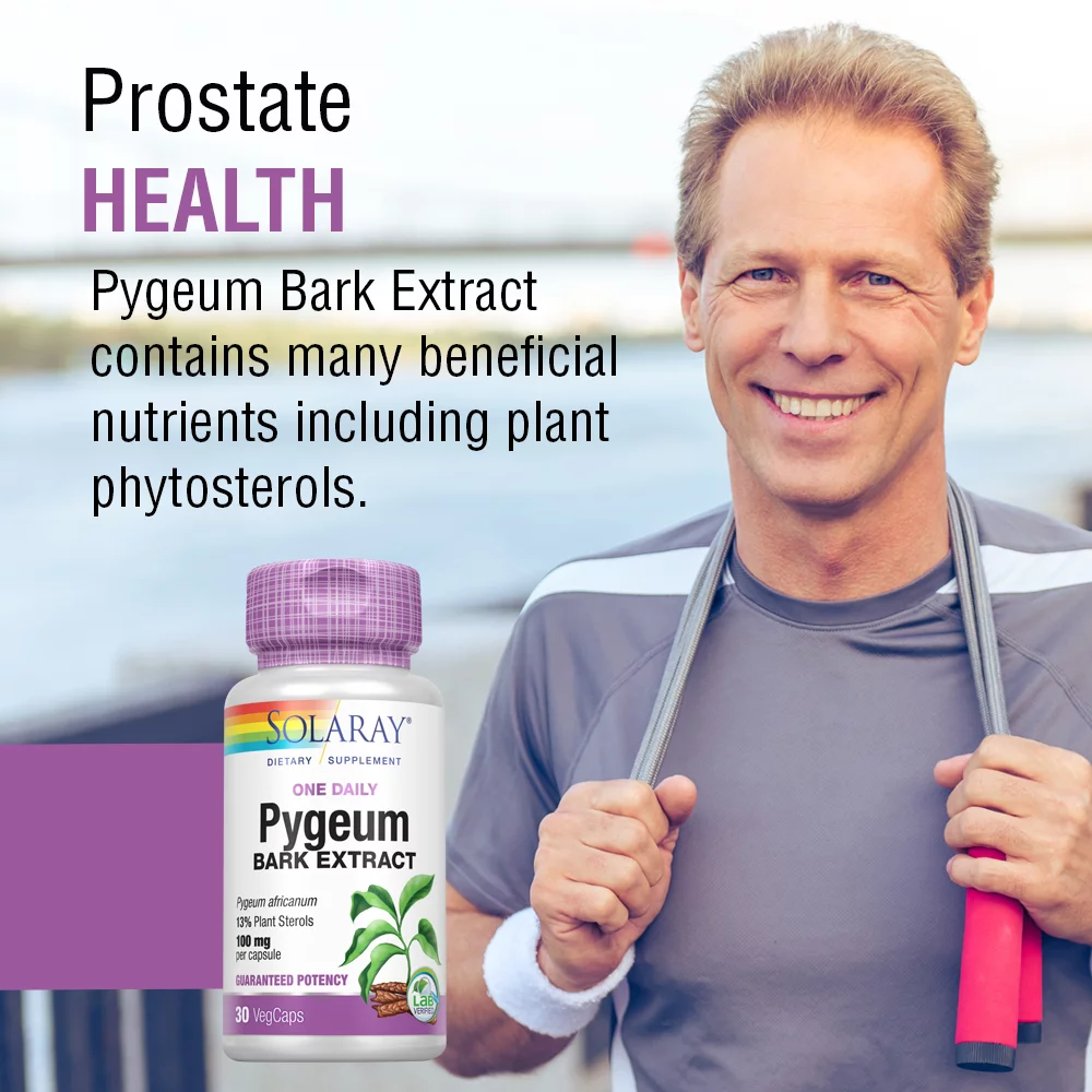 Solaray Pygeum Bark Extract, One Daily 100mg | Healthy Prostate Support | Guaranteed to Contain 13 mg Total Plant Sterols | 30 VegCaps
