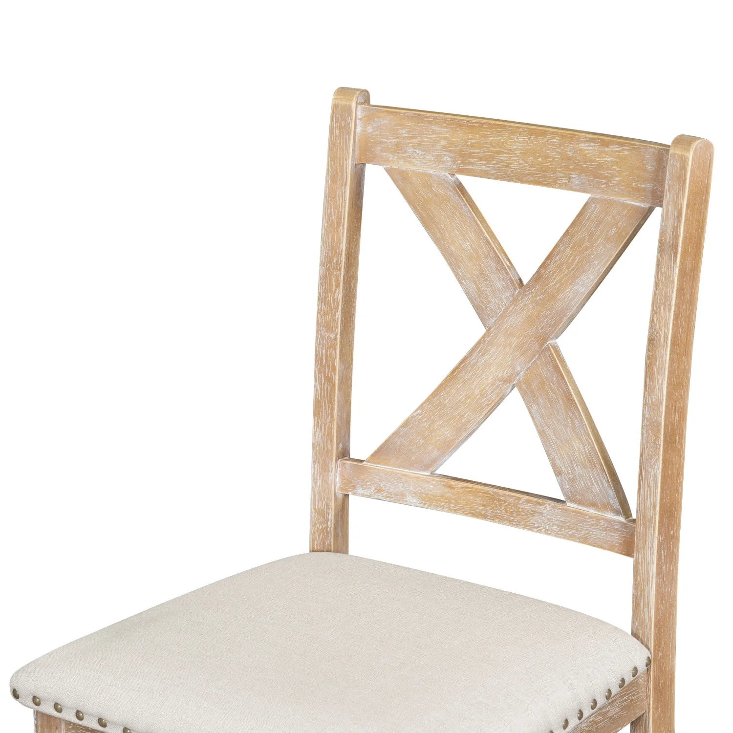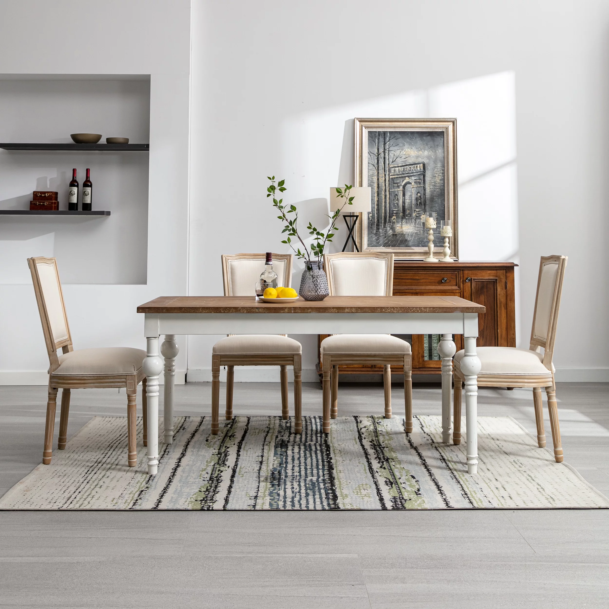 CoSoTower French Style Solid Wood Frame Antique Painting Linen Fabric Square Rattan Back Dining Chair, Set Of 2, Cream
