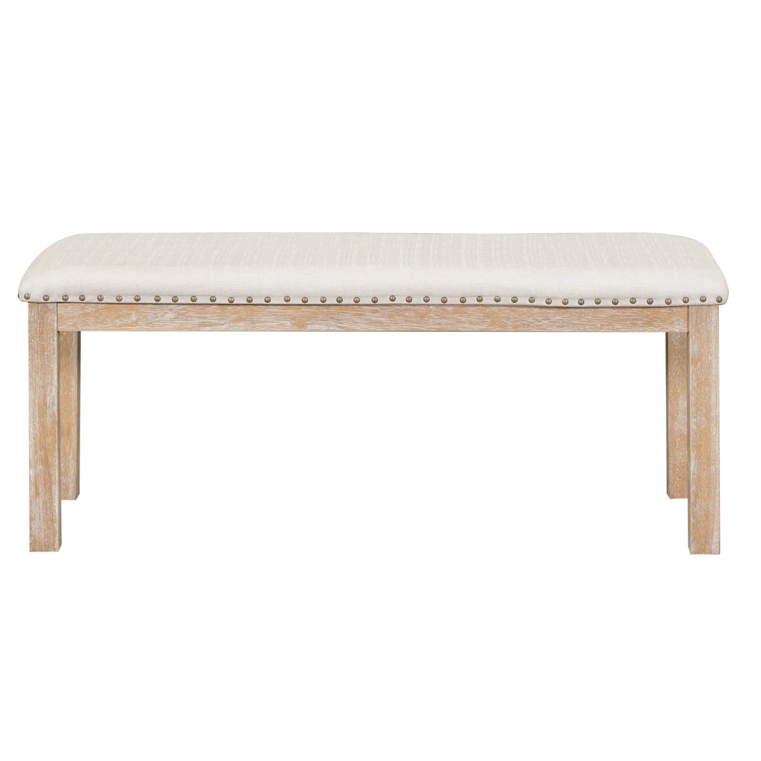 Churanty Farmhouse Extendable Dining Table Set for 6, Solid Wood Rectangular Kitchen Table Set with Removable Leaf,4 Upholstered Chairs and Bench, Natural
