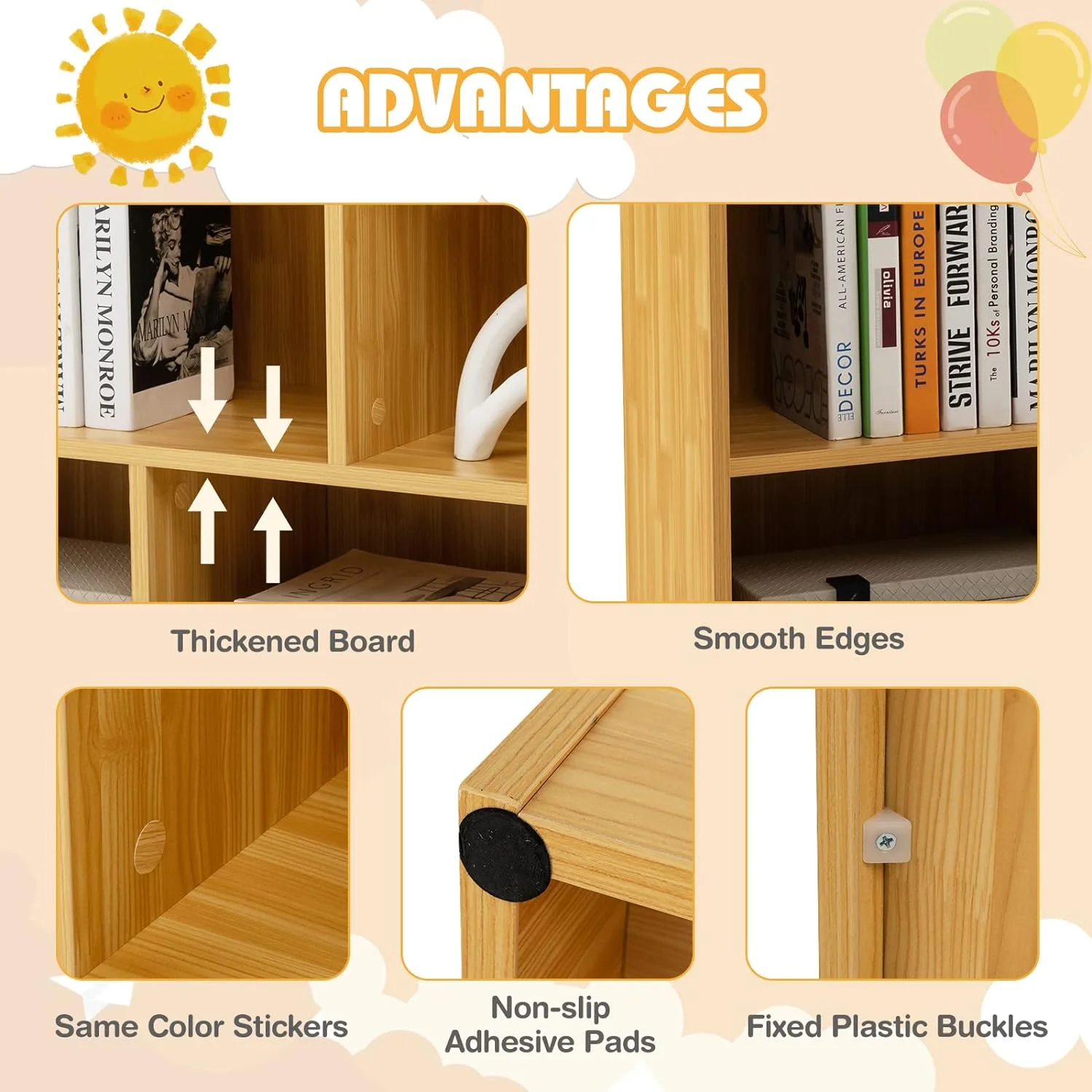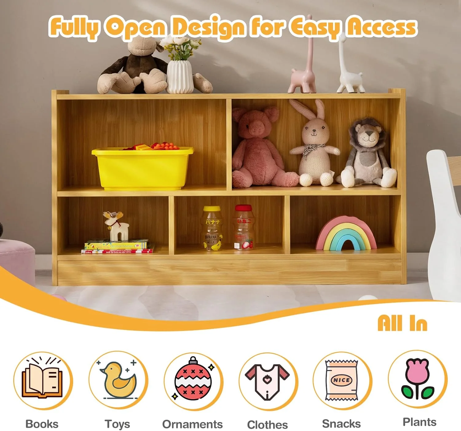 Kids Toy Storage Organizer, 5-Section Storage Daycare Shelf for Preschool, Children 2-Tier Open Wooden Display Book Shelf Organizer for Classroom, Playroom & Nursery, Kindergarten(Wood)