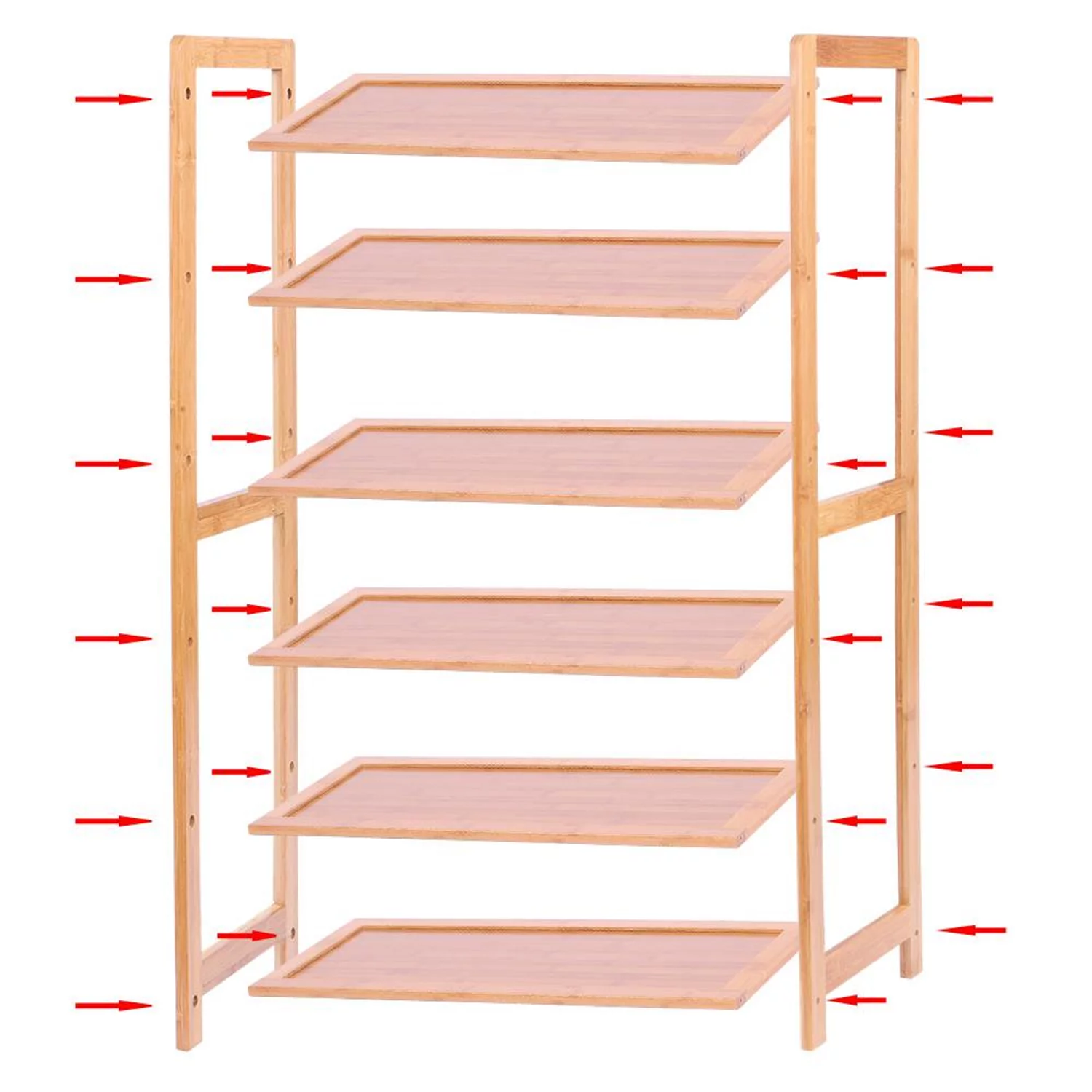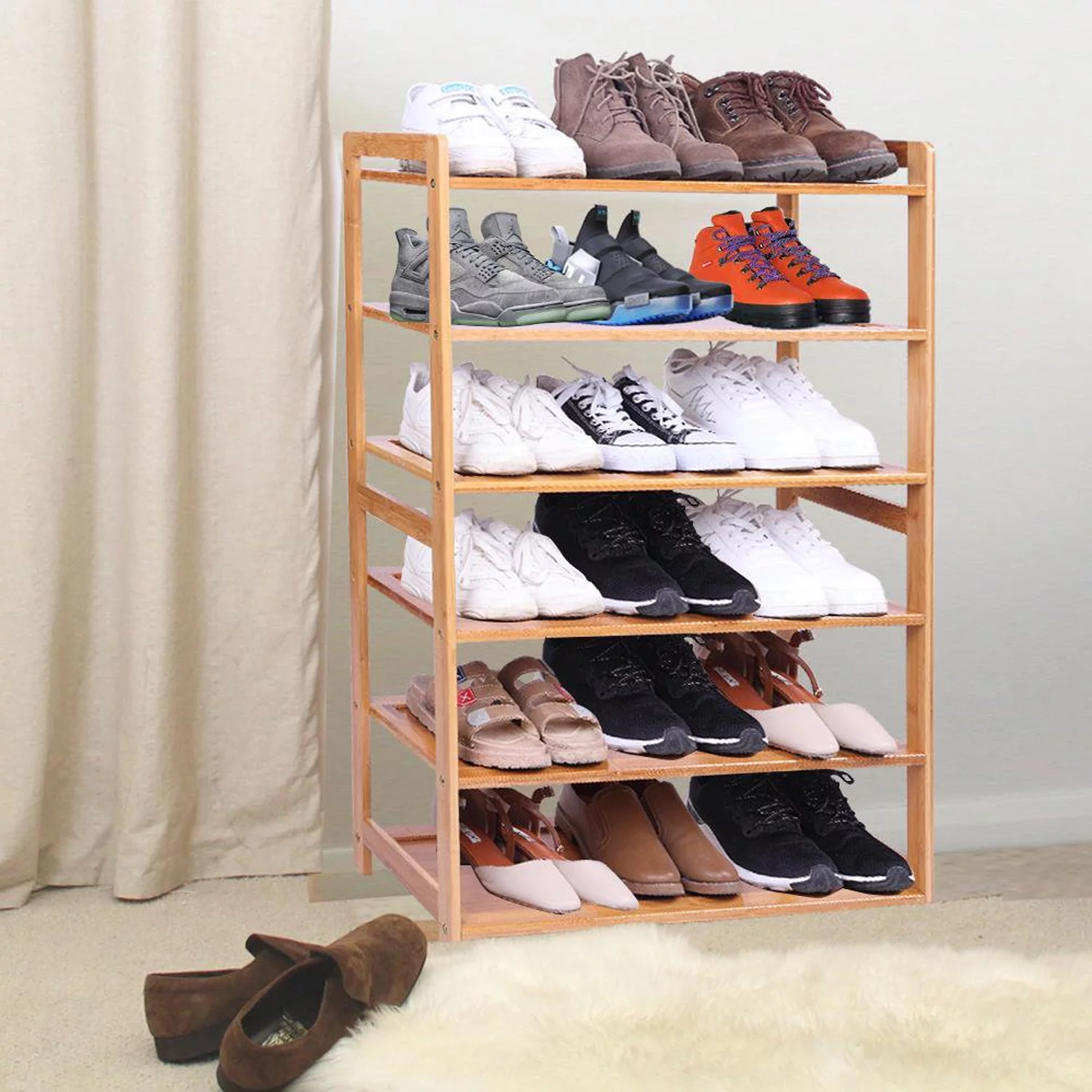Wobythan Natural Bamboo 6 Tiers Shoe Rack Shoe Storage Organizer Free Standing Shoe Tower Shoe Shelf Shoe Cabinet for Entryway Hallway Living Room Closet, Wood Color