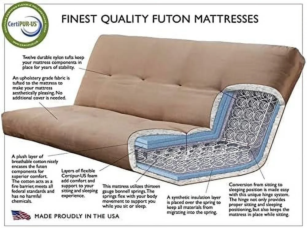 Full Size Spring Futon Mattress Replacement, Linen Sleeper Sofa Bed Mattress, Cocoa Brown
