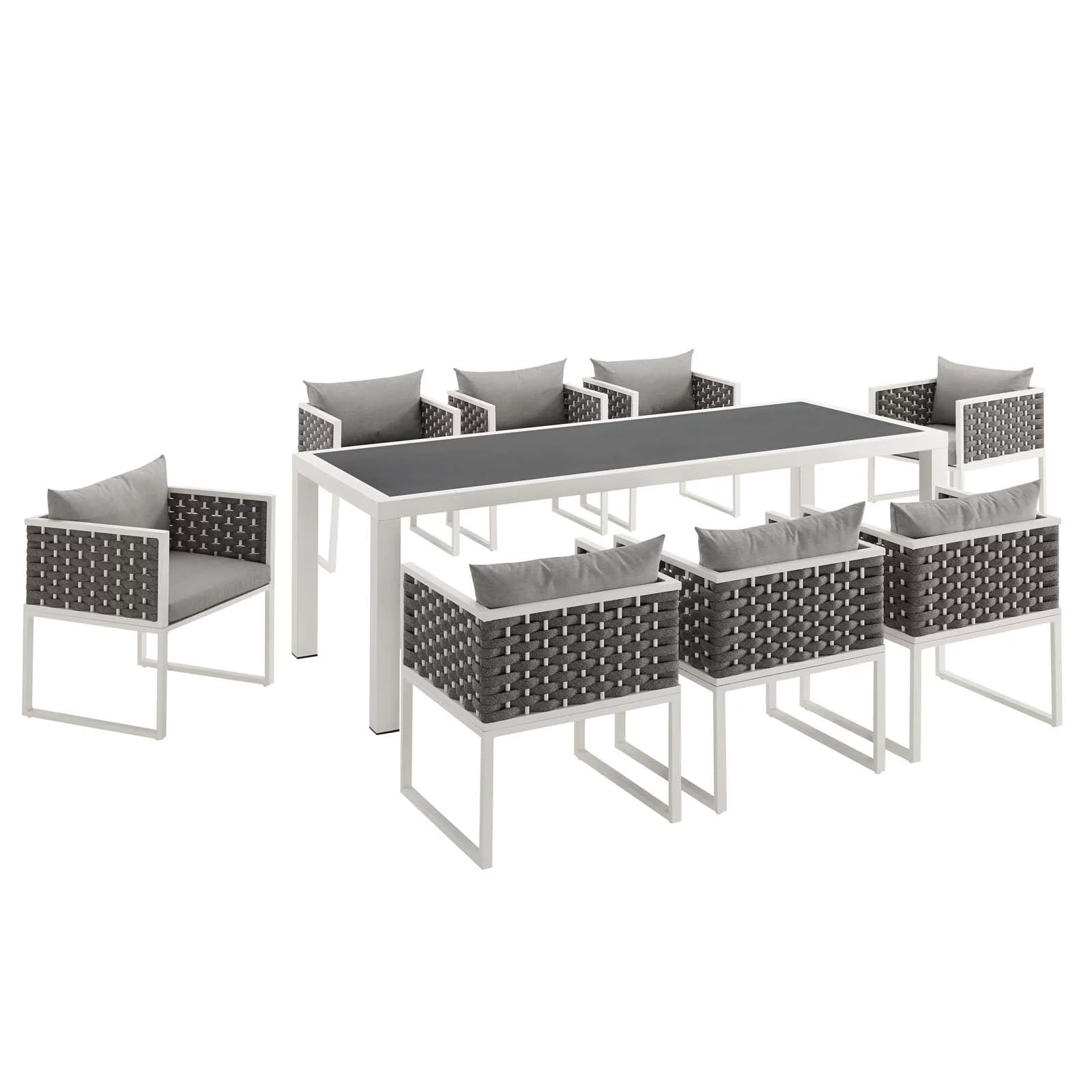 Modway Stance 9 Piece Outdoor Patio Aluminum Dining Set in White Gray