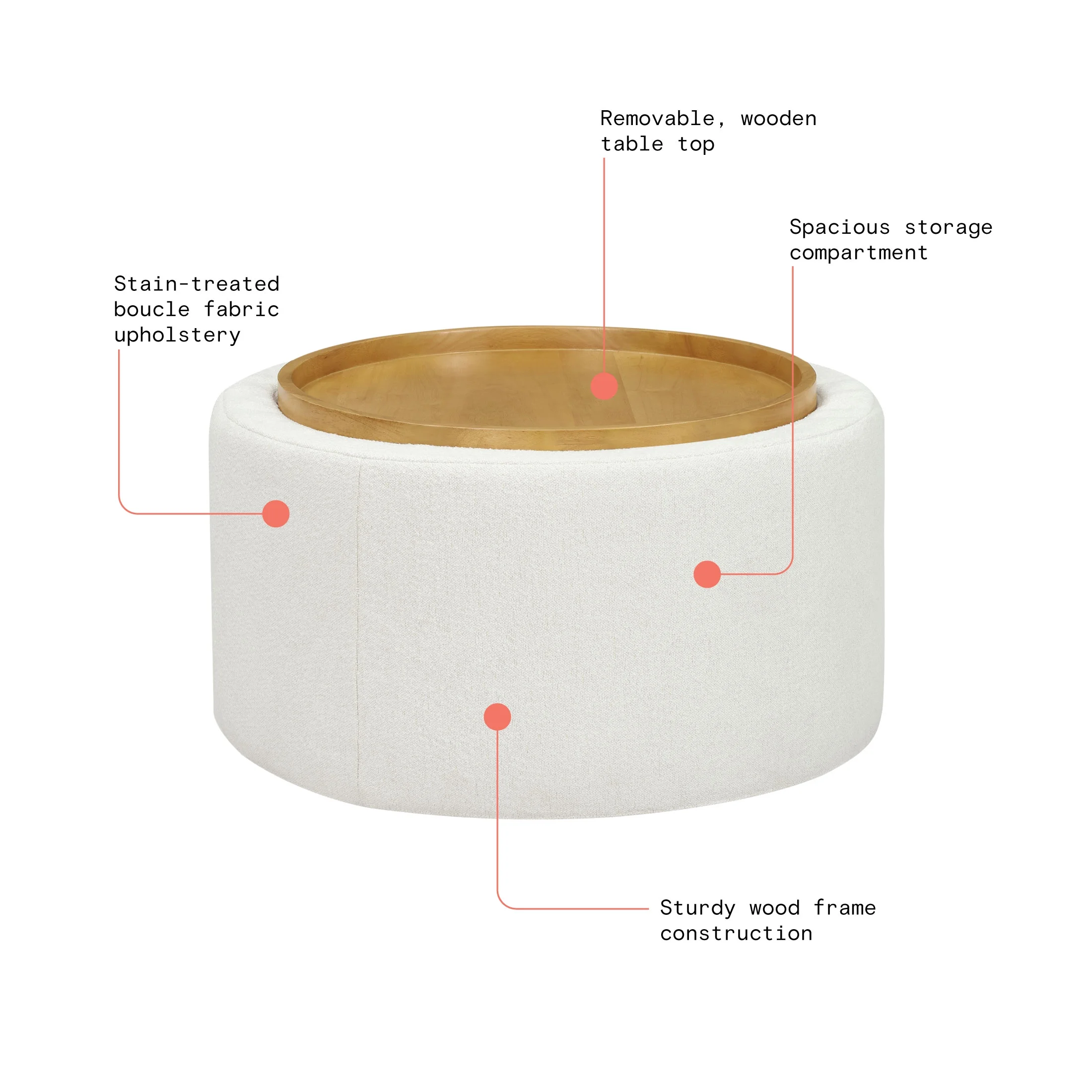 Beautiful Drew Stowaway Coffee Table with Storage by Drew Barrymore, Cream