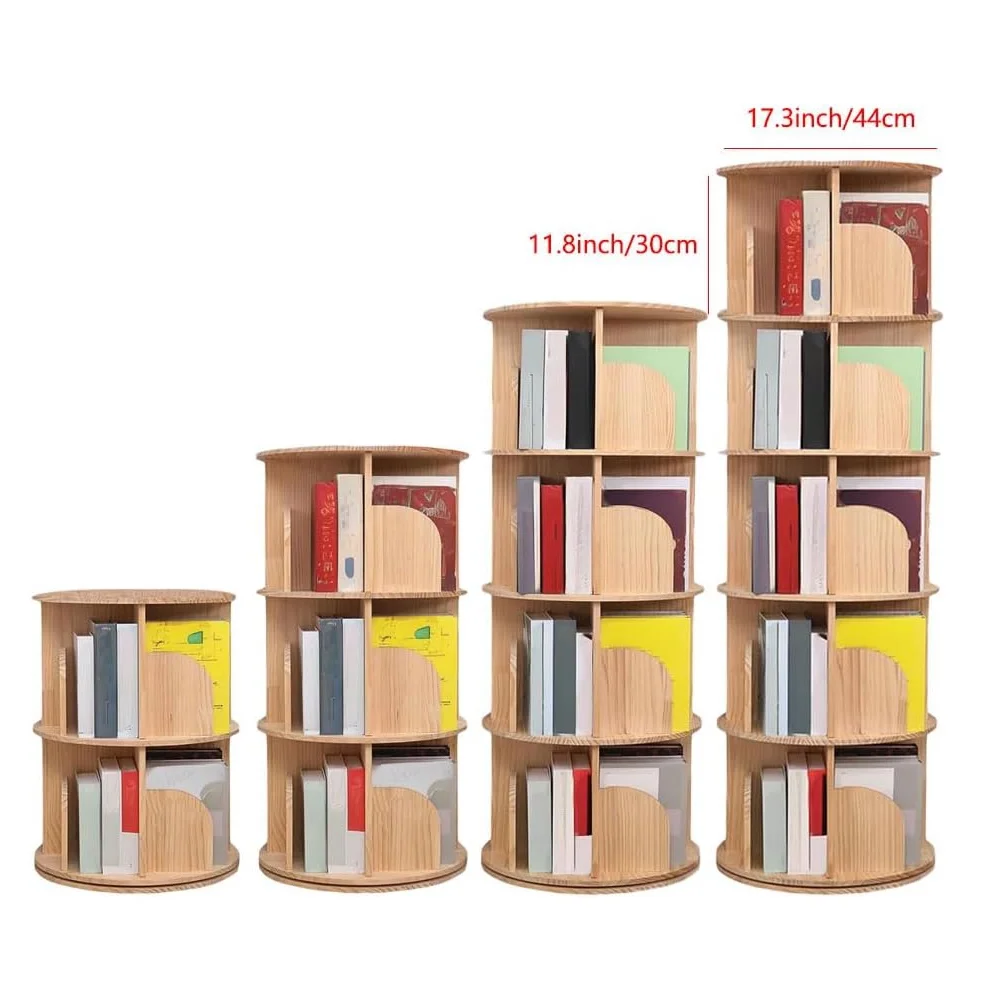 Rotating Bookshelf 3 Tier 360 Display Floor Standing Wood Bookcase Corner Storage Rack for Adults Kids Multi-Functional Bookshelf Organizer