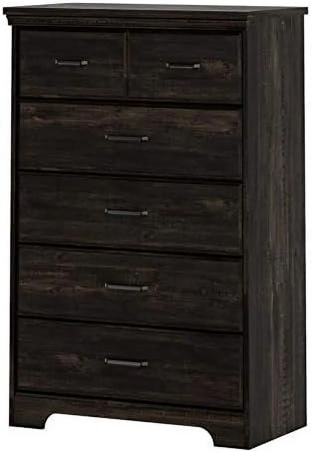 5 Drawers Dresser, Small Wood Organizer Chest For Bedroom, Modern Storage Tower For Closet, Dark Grey