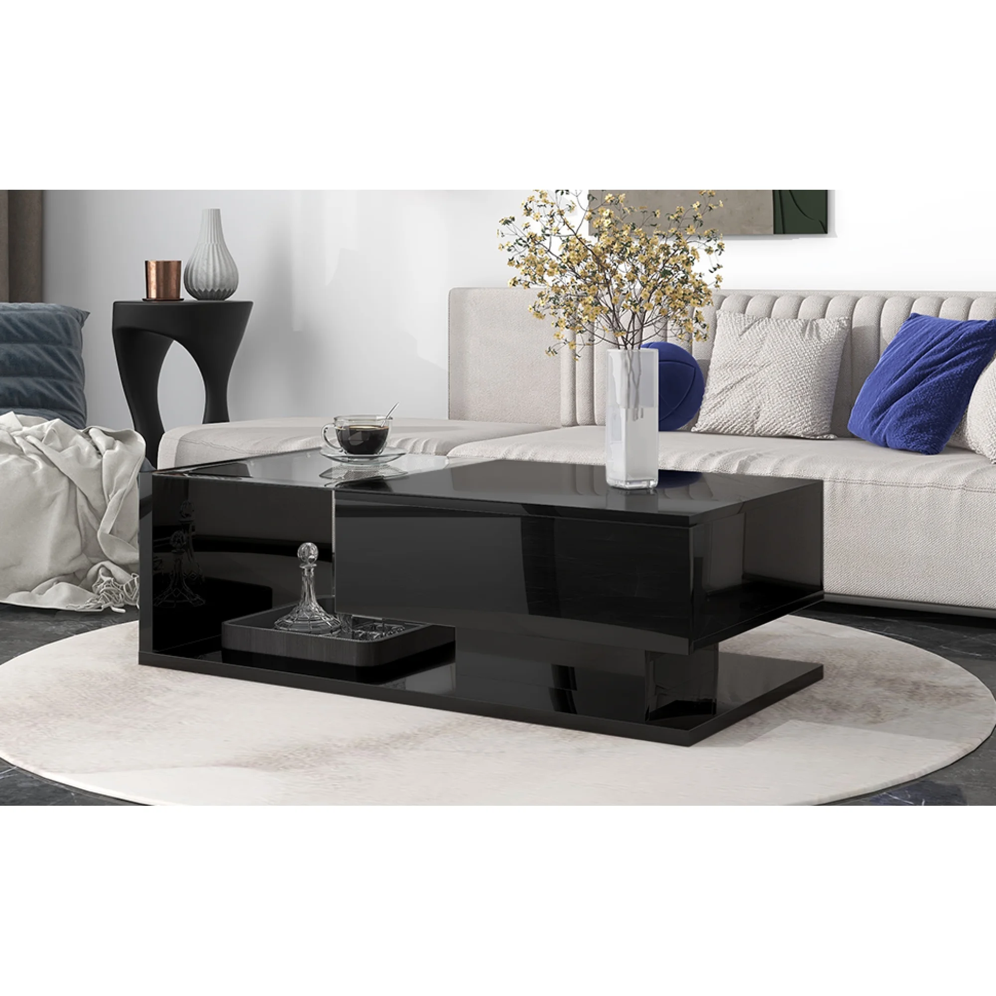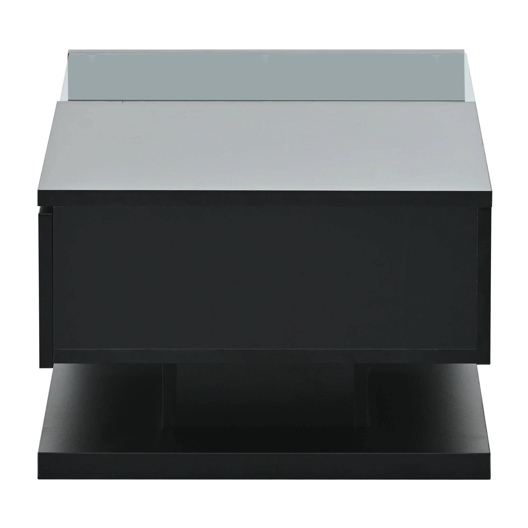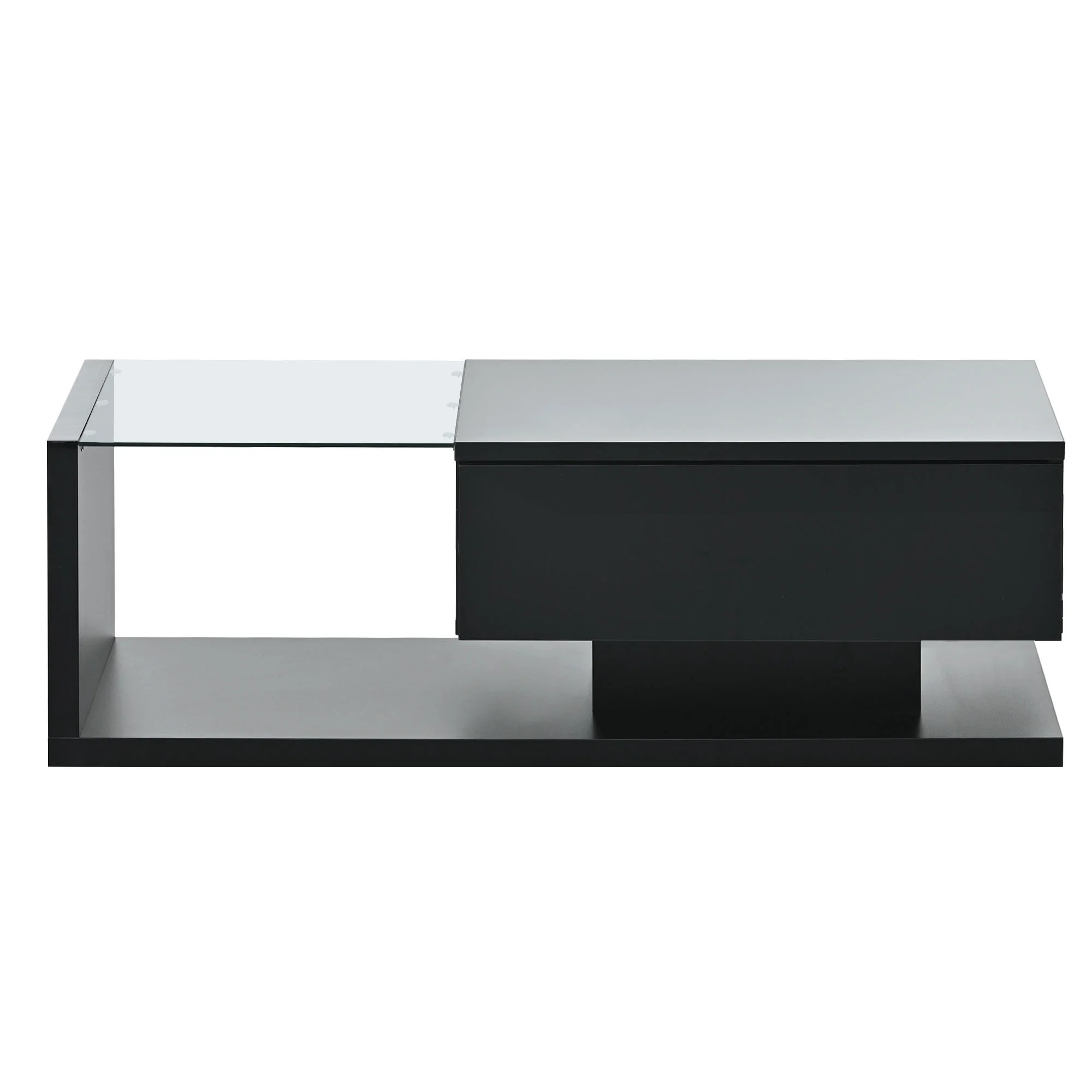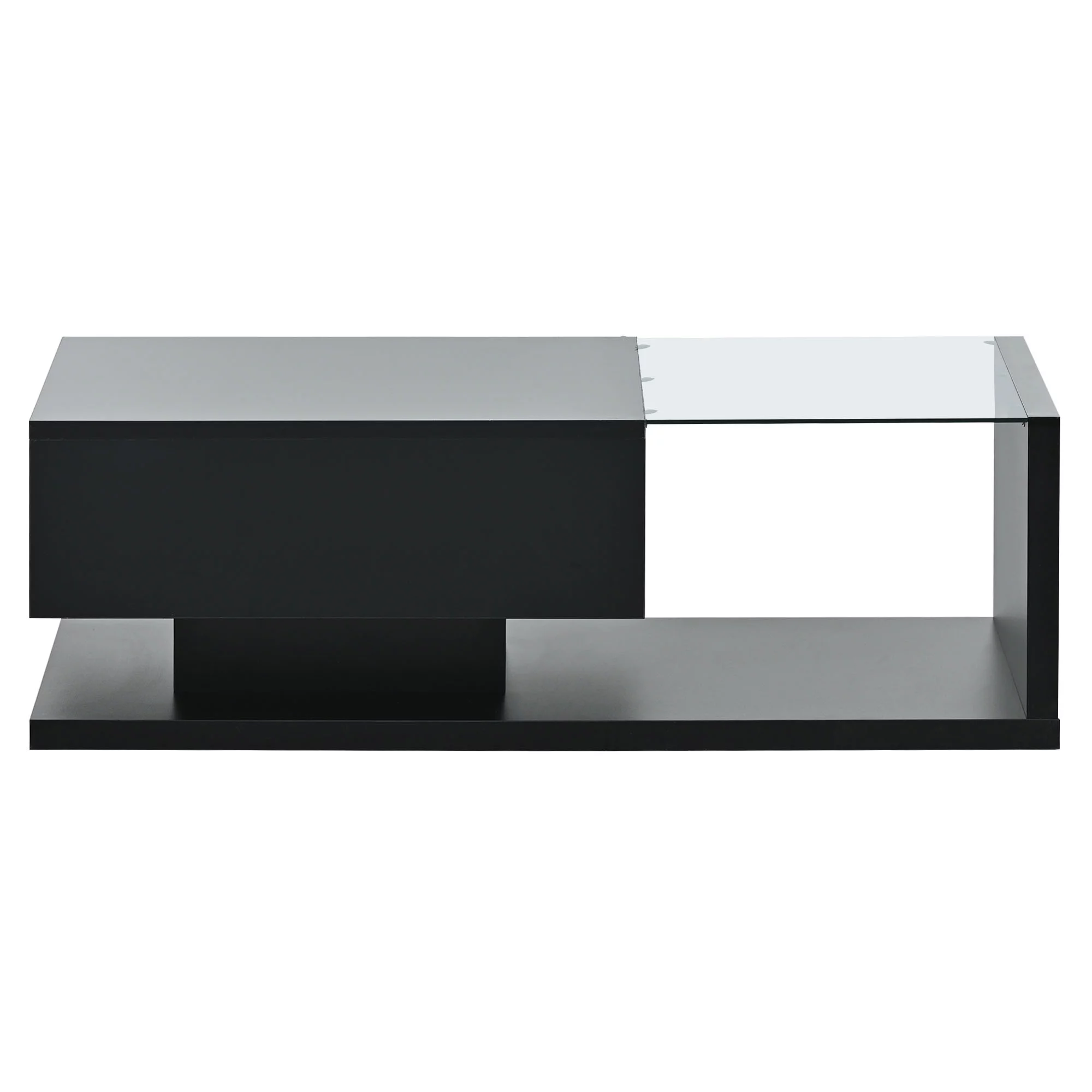 ON-TREND Modern Coffee Table with Tempered Glass, Wooden Cocktail Table with High-gloss UV Surface, Modernist 2-Tier Rectangle Center Table for Living Room, Black