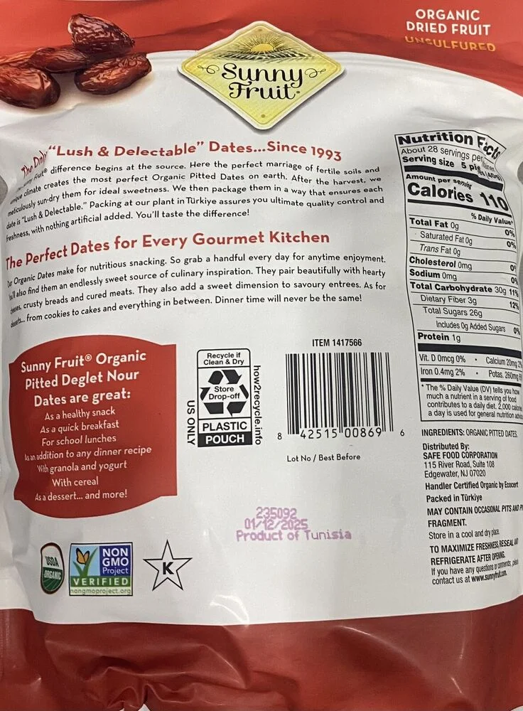 Organic Sun-Dried Pitted Deglet Nour Dates 40 oz Bag 5 Lbs - 2 PACK