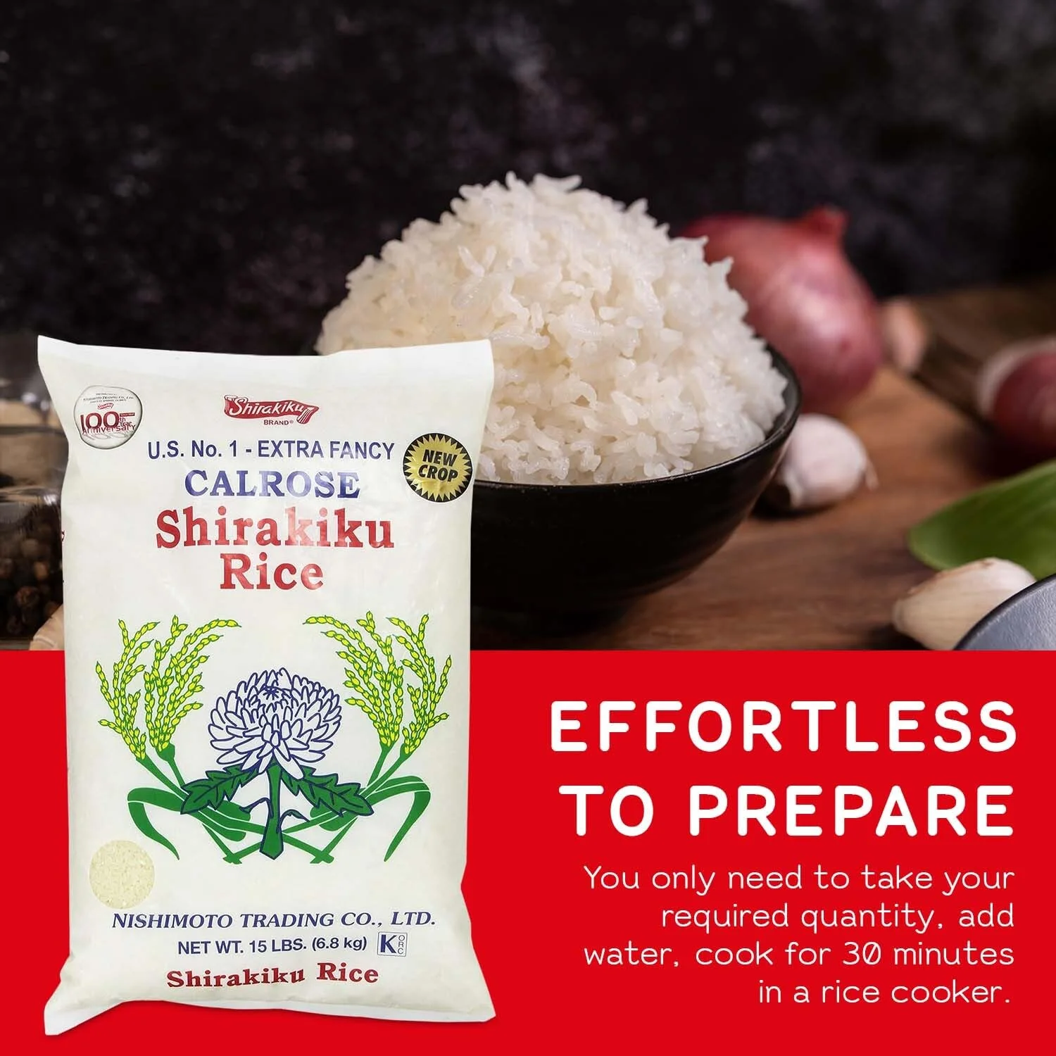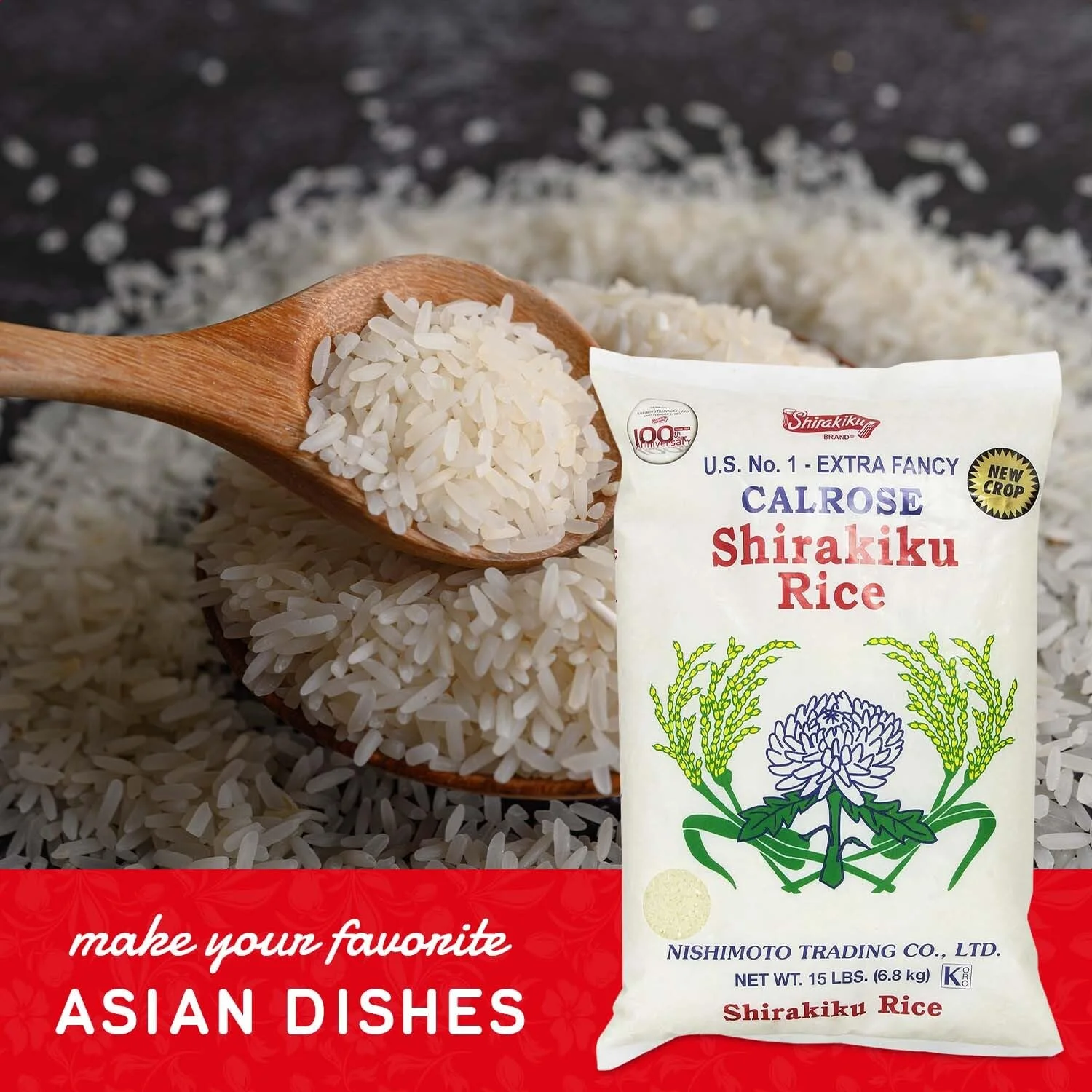 Calrose Rice Medium Grain White Rice - Japanese Unoked Milled Rice | Low Calories Perfect For Authentic Asian Cuisine 15 Pound, (Pack Of 1)
