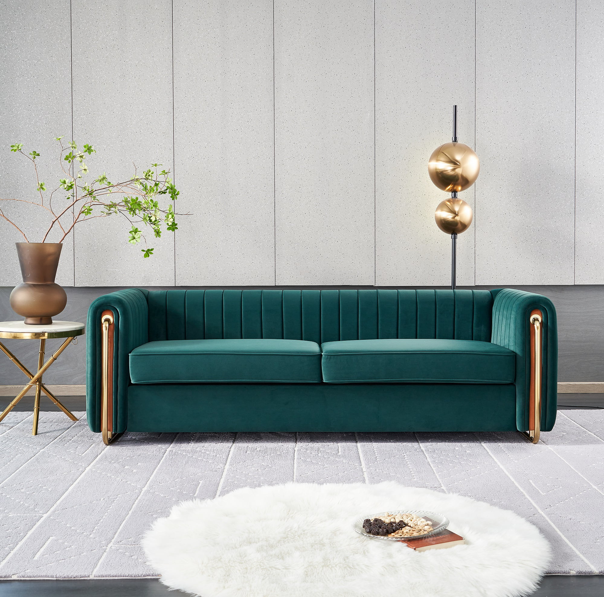 Sofa Couch for Living Room Comfy Couches Tufted Luxury Velvet Furniture, 2 Big Seating, 84 inches, Green