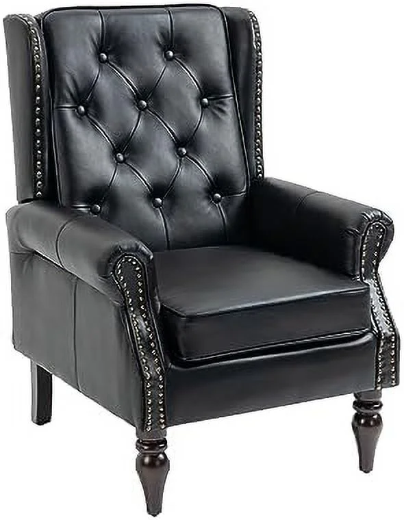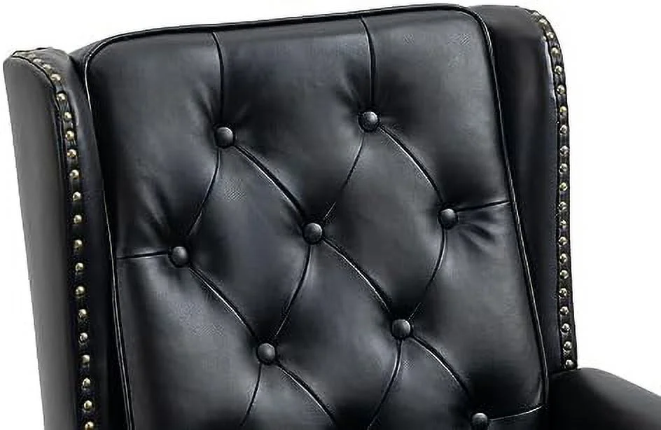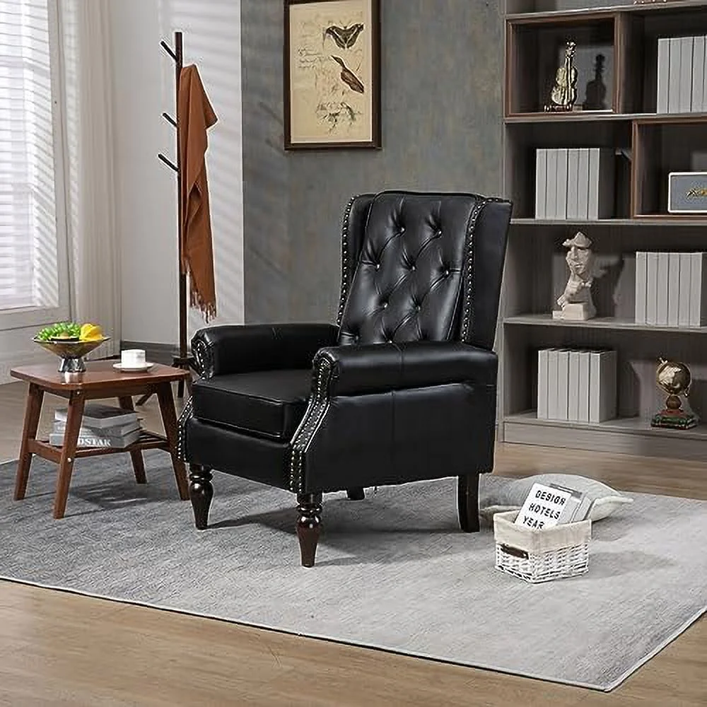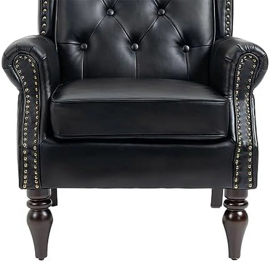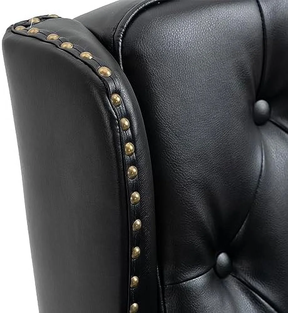 TJUNBOLIFE Wing Back Accent Chair PU Leather Button Tufted Armchair with Trim and Rubber Wood Legs Upholstered Single Sofa Chair Reading Chair for Living Room Bedroom Office Camel PU