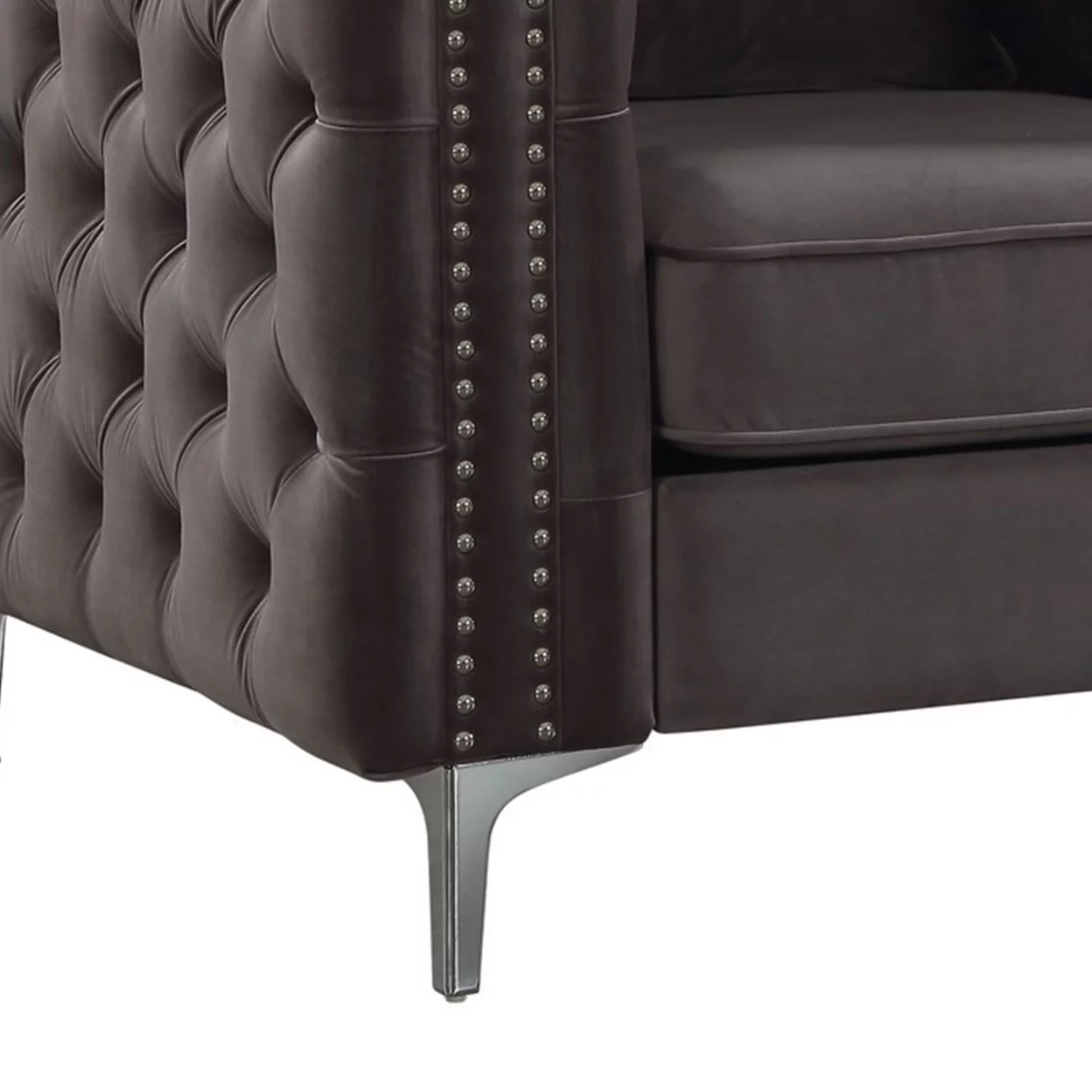 Fabric Upholstered Wooden Sofa Chair with Throw Pillow, Gray- Saltoro Sherpi