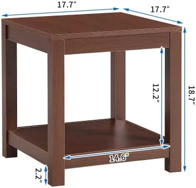 Side Table Modern Night Stand with 2-Tier Storage Shelf, Living Room Small Coffee Table, Rustic Wood Side End Table for Living Room Bedroom (Brown)
