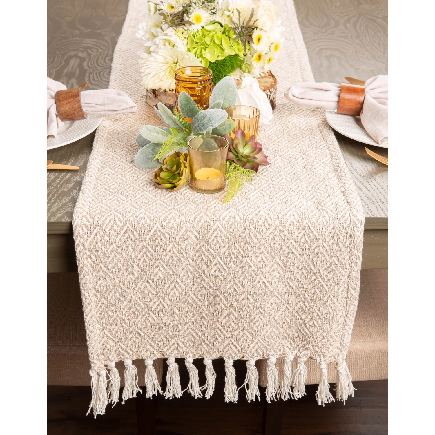 DII 15x72" Modern Cotton Fabric Diamond Table Runner in Stone