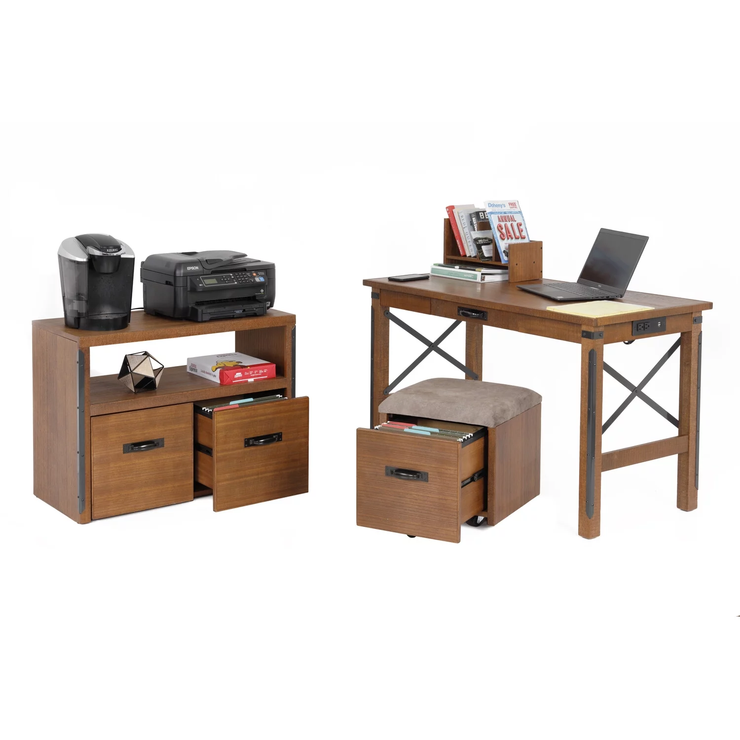 American Furniture Classics 33244K 30 x 47.5 x 47.5 in. OS Home & Office Furniture Industrial Combination of 24 by 48 Desk with USB Ports, Roll About File Cabinet with Cushioned Seat & Machine Stand