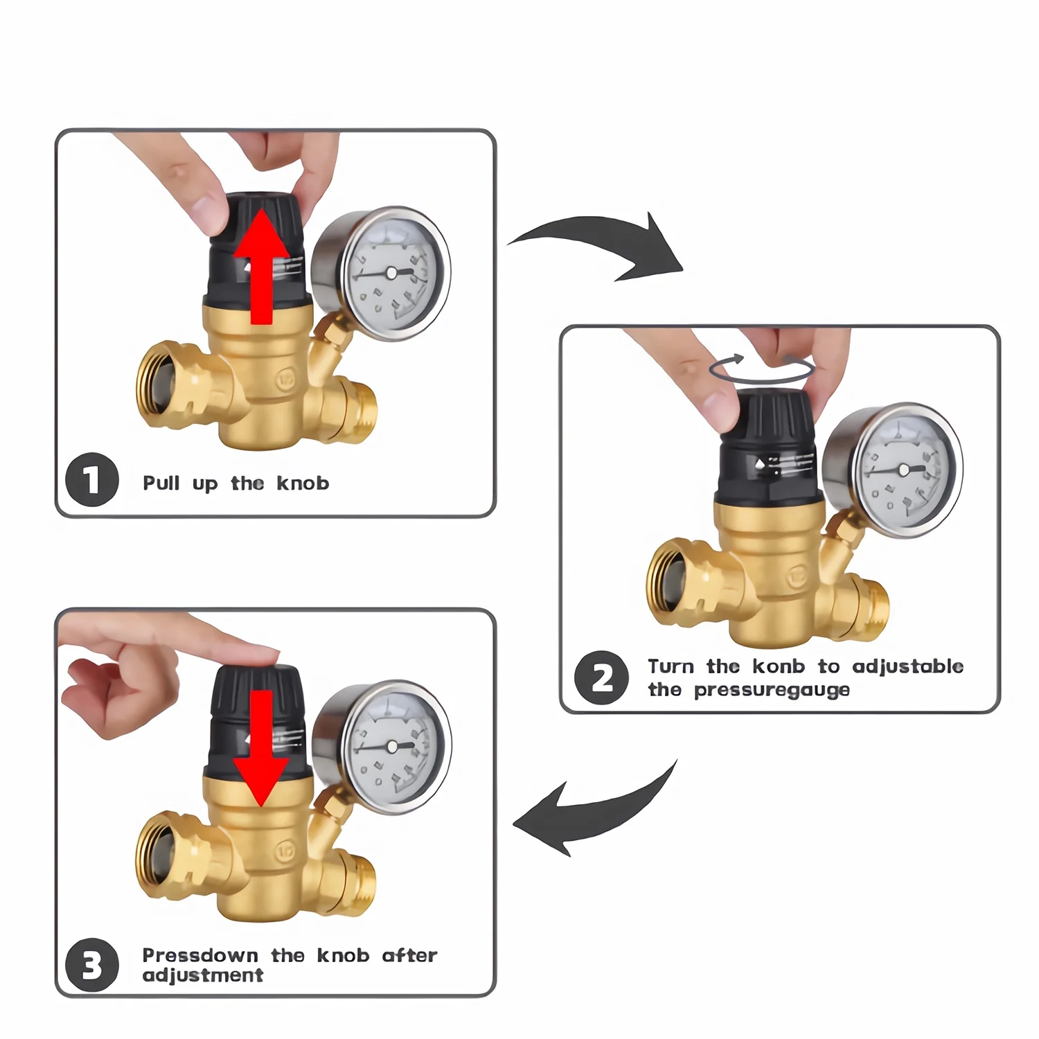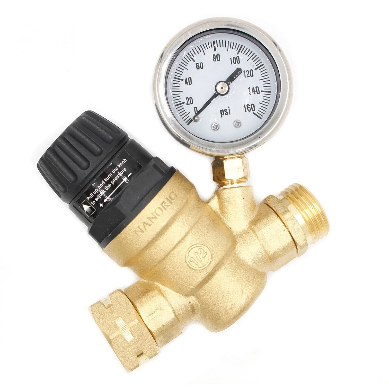 LIMICAR RV Water Pressure Regulator for RV Camper,Brass Lead-Free Adjustable RV Water Pressure Regulator with Gauge