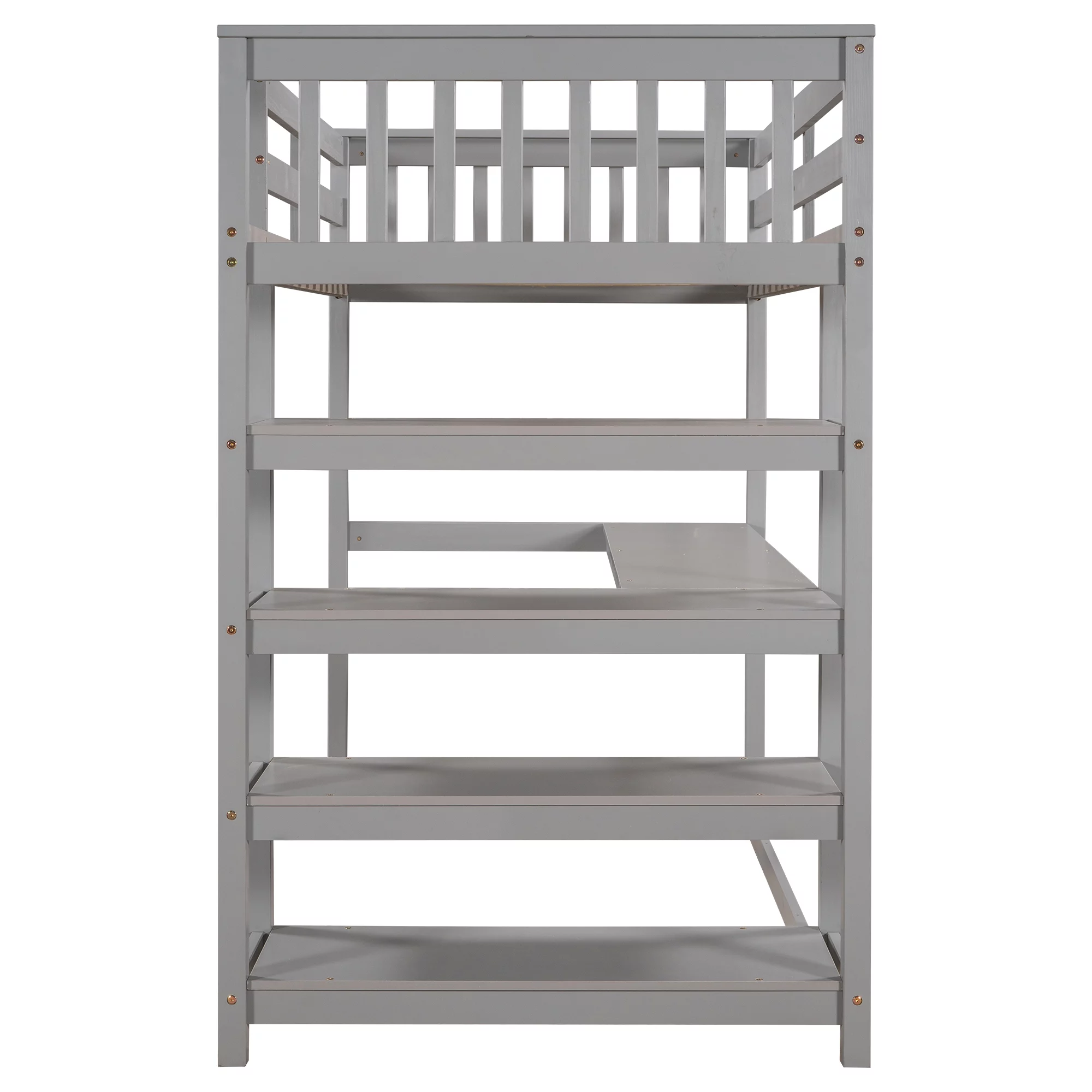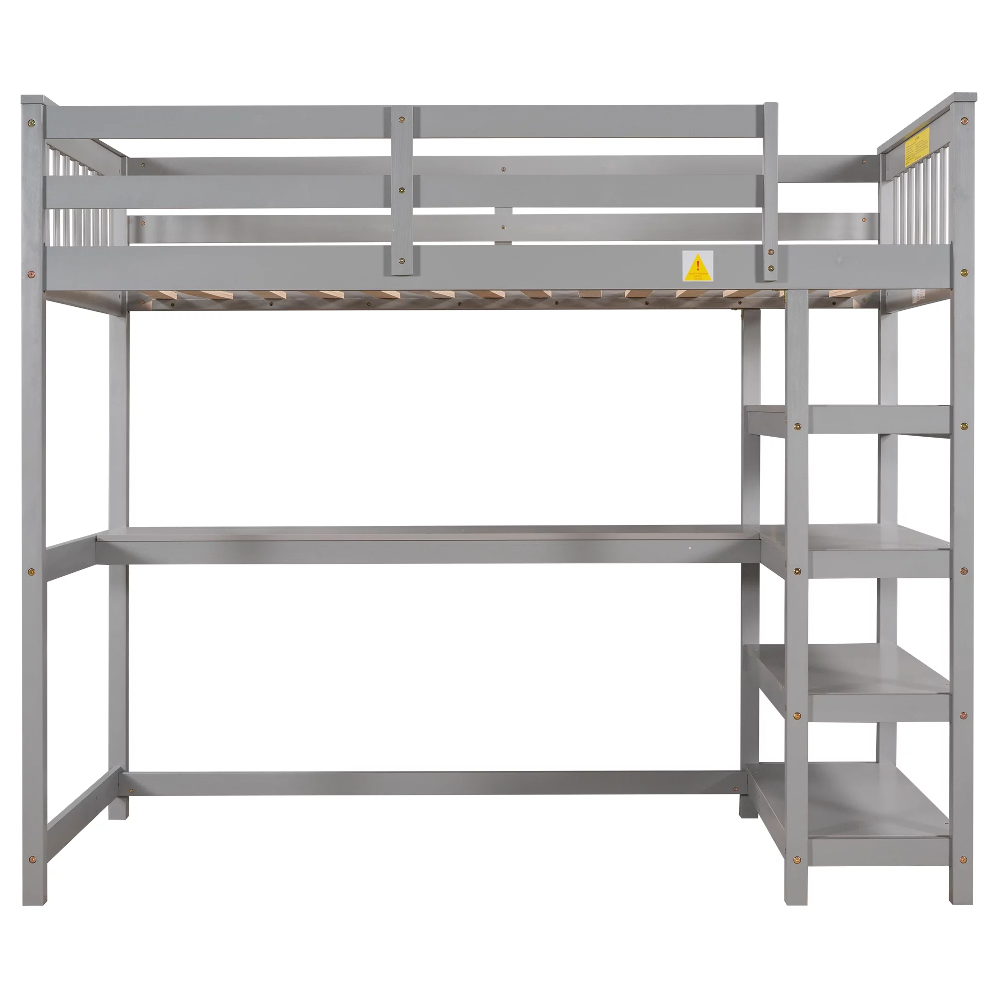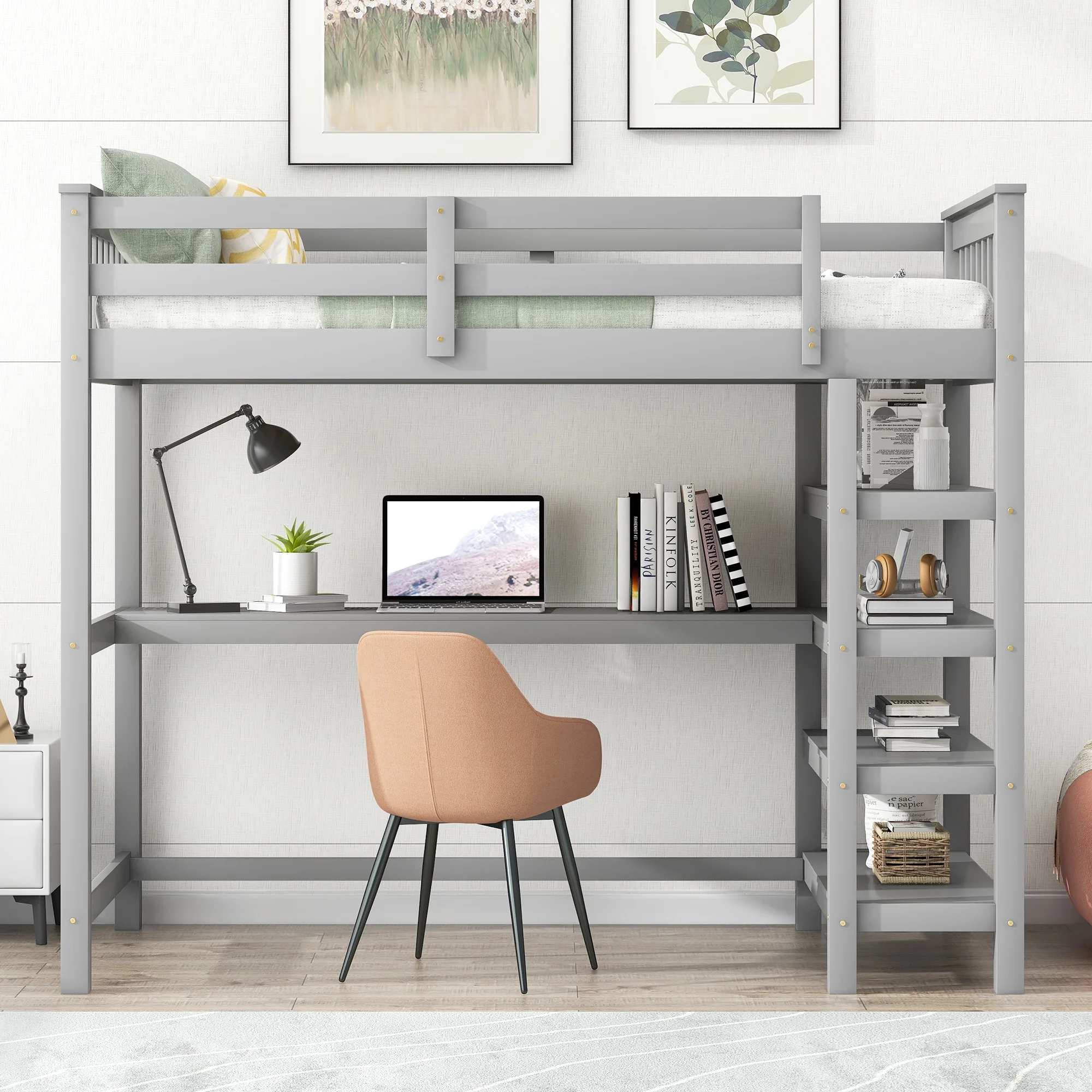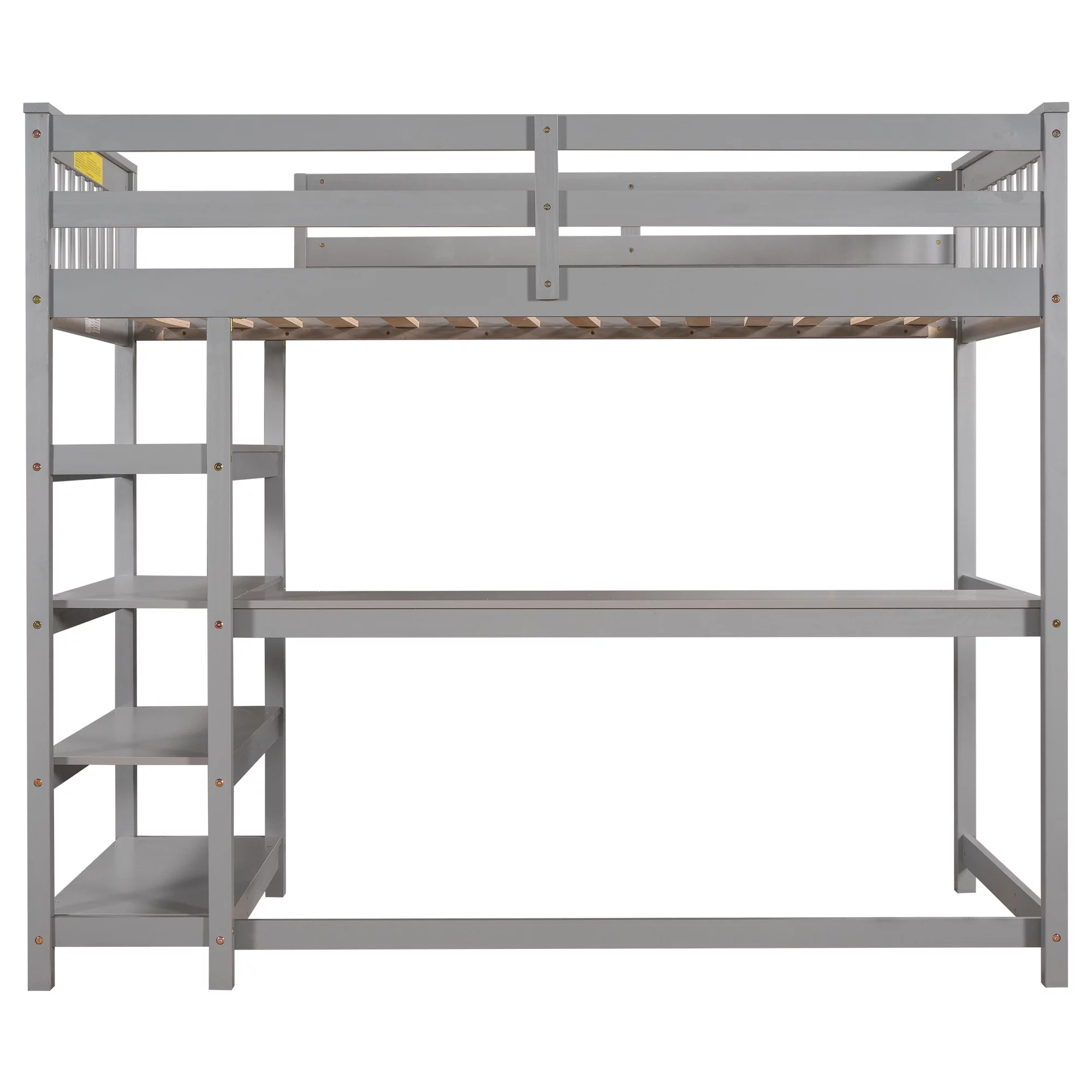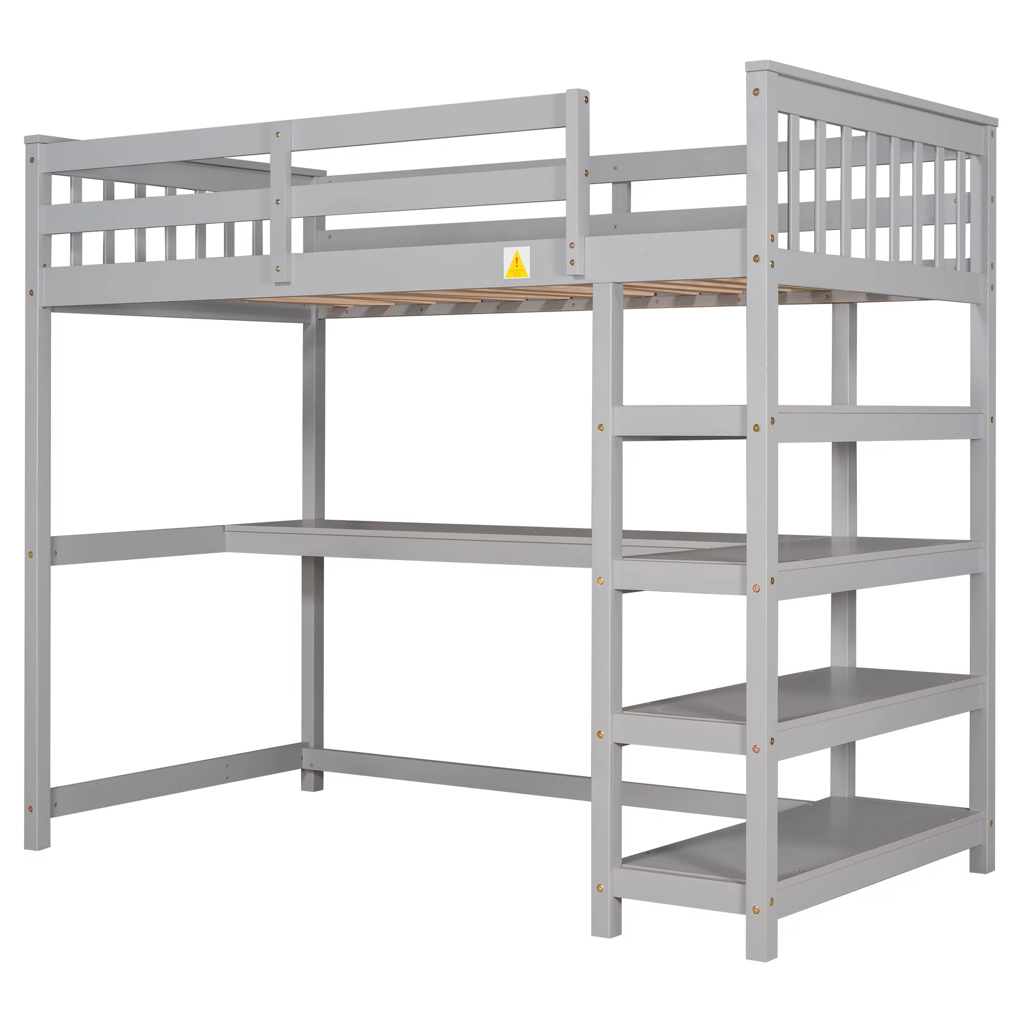 Euroco Twin Size Loft Bed with Built-in Desk and Shelves for Kids Teens Adults, Gray