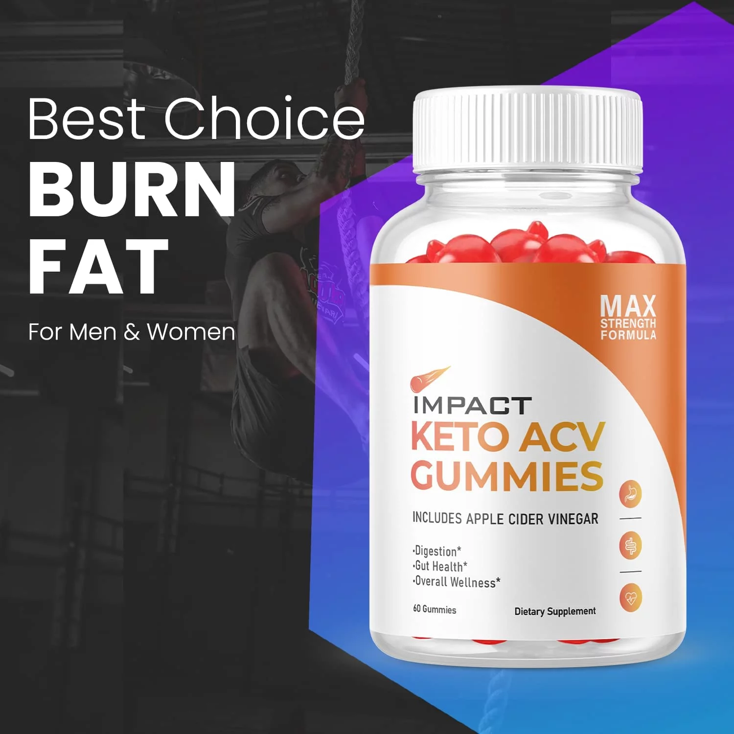 (1 Pack) Impact Keto ACV Gummies - Supplement for Weight Loss - Energy & Focus Boosting Dietary Supplements for Weight Management & Metabolism - Fat Burn - 60 Gummies