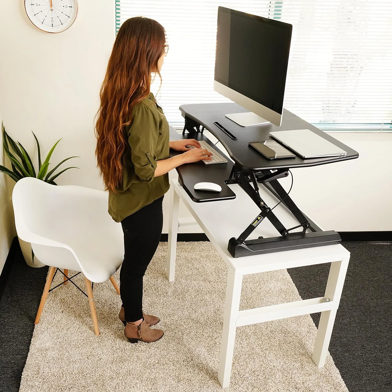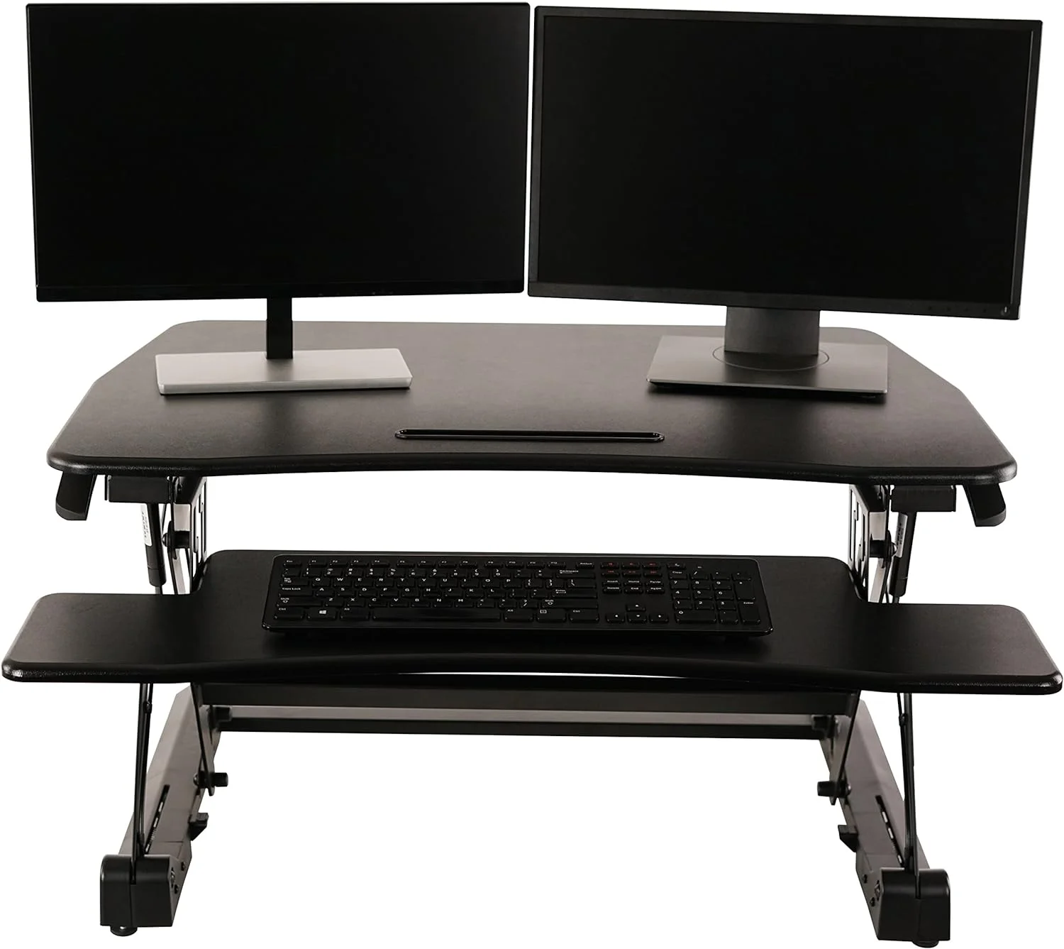Standing Desk Converter 35 Inches - Height Adjustable Sit Stand Up Desk Riser Fits Dual Monitors, Laptop Stand, Desktop Computer Station For Home Office With Pneumatic Spring - Black