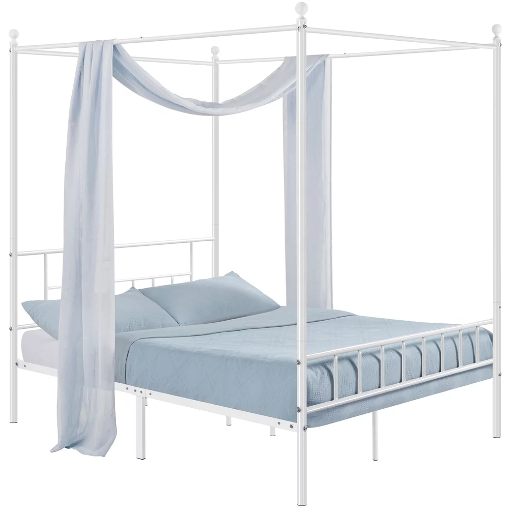 Yaheetech Metal Canopy Bed Frame, Four-poster Canopied Platform Bed with Headboard and Footboard, Full, White