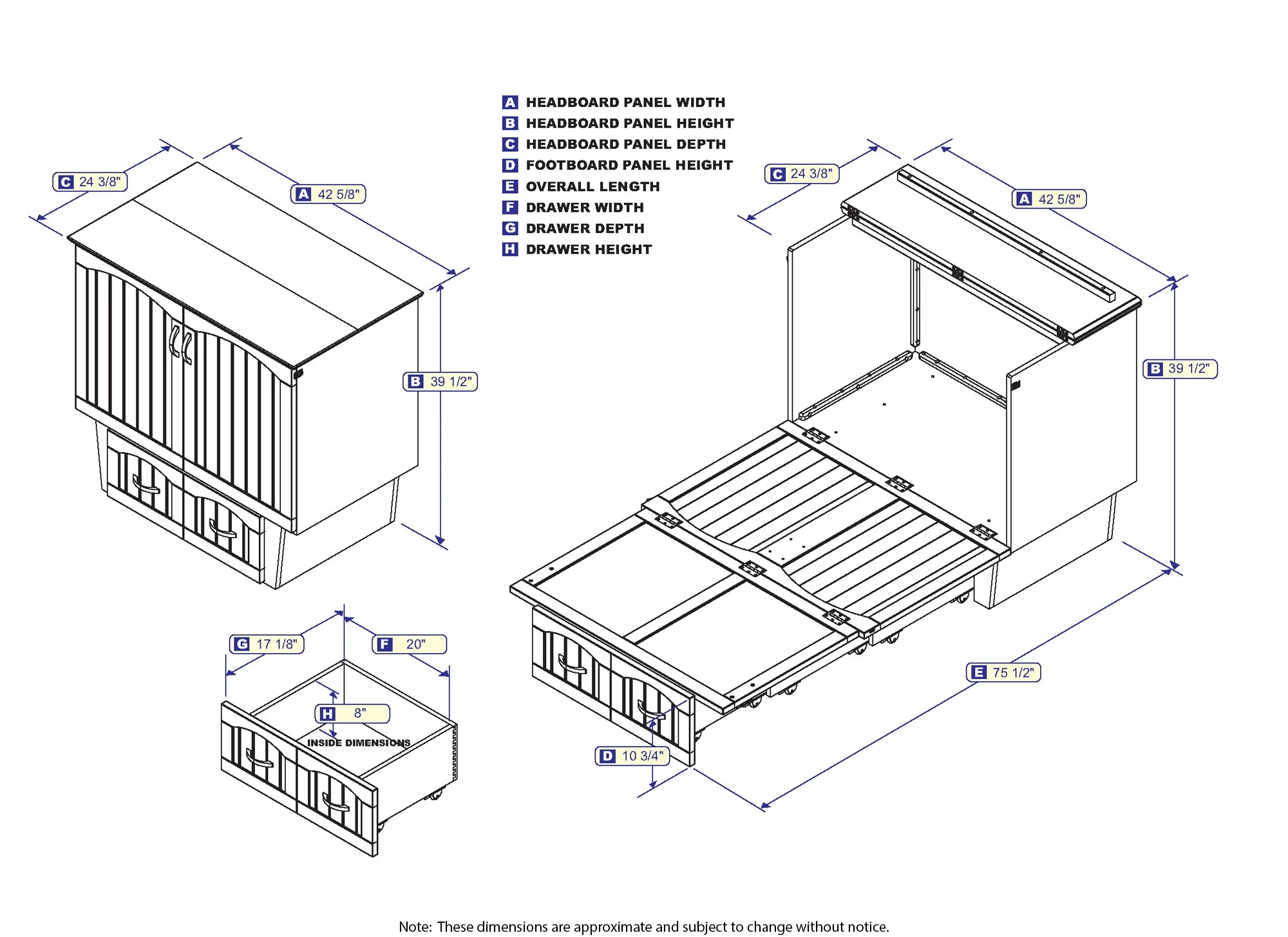AFI Sydney Twin Solid Wood Murphy Bed Chest with Mattress, Drawer & Charger, Walnut