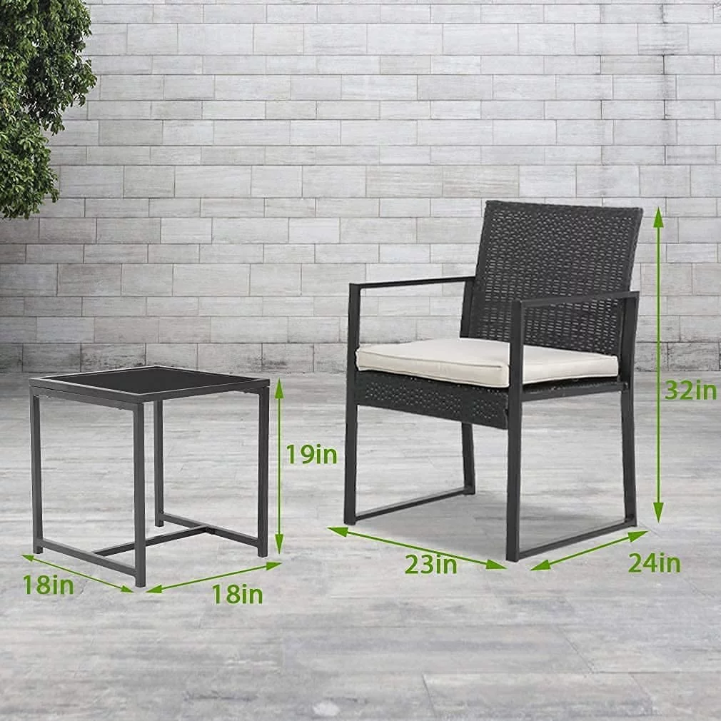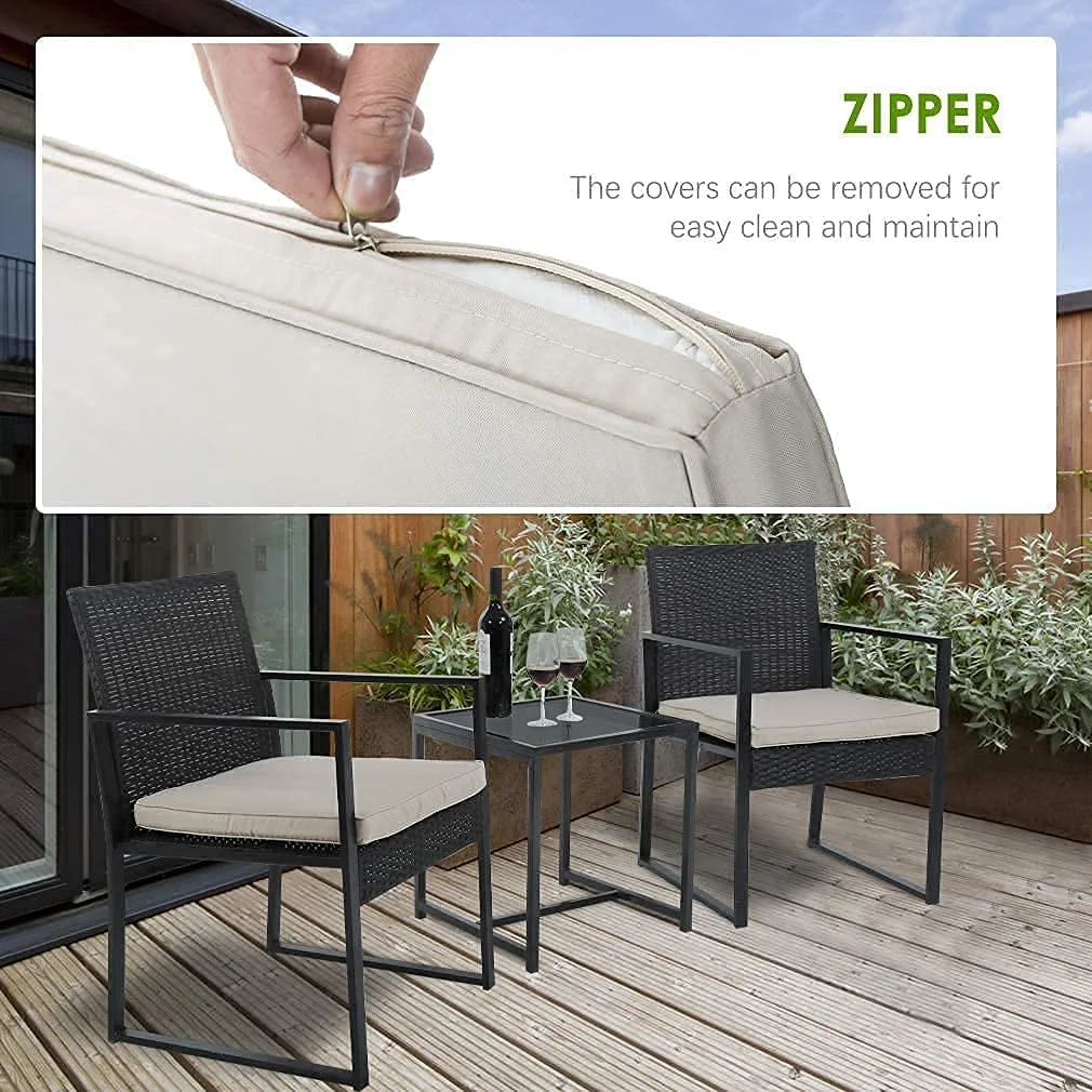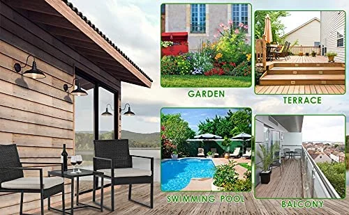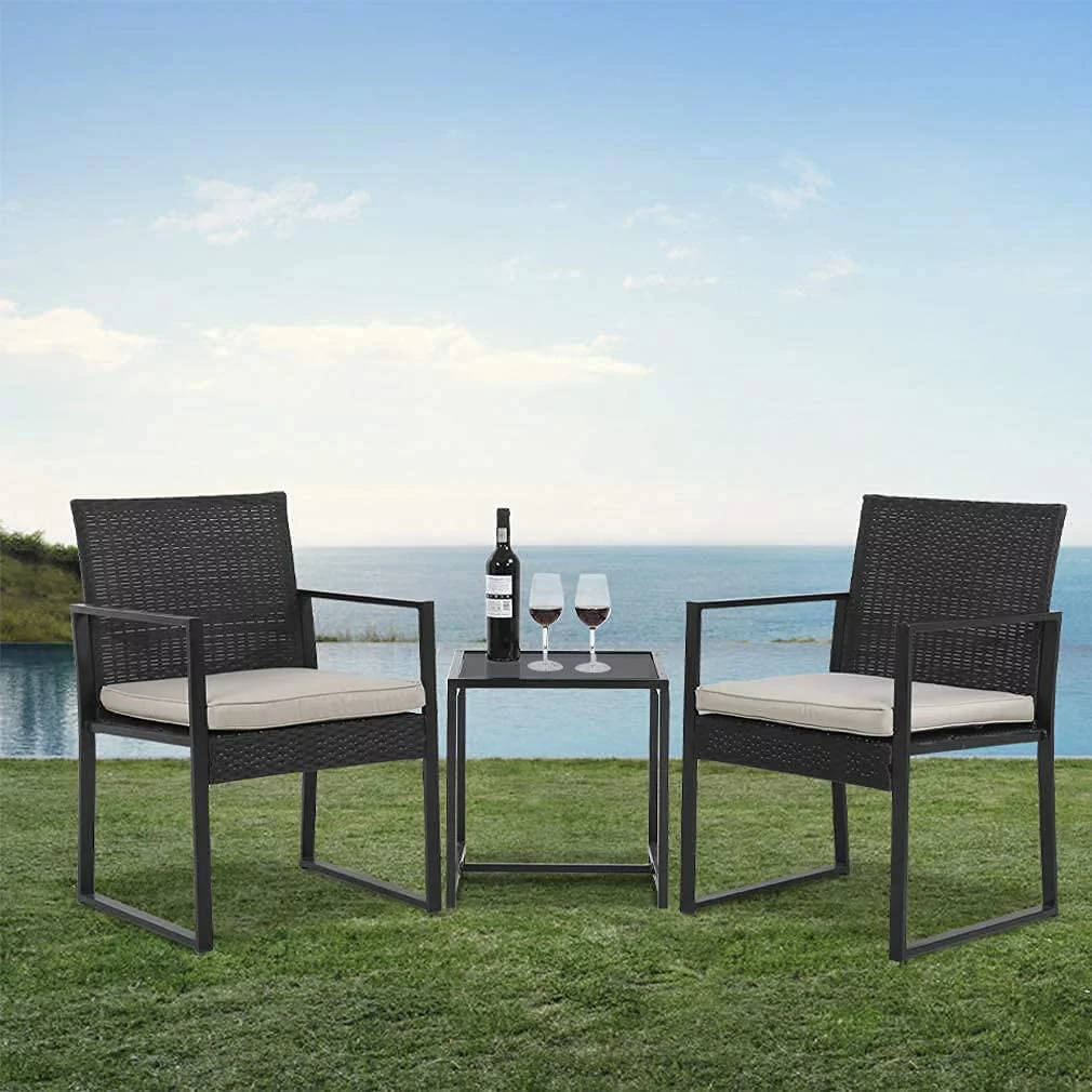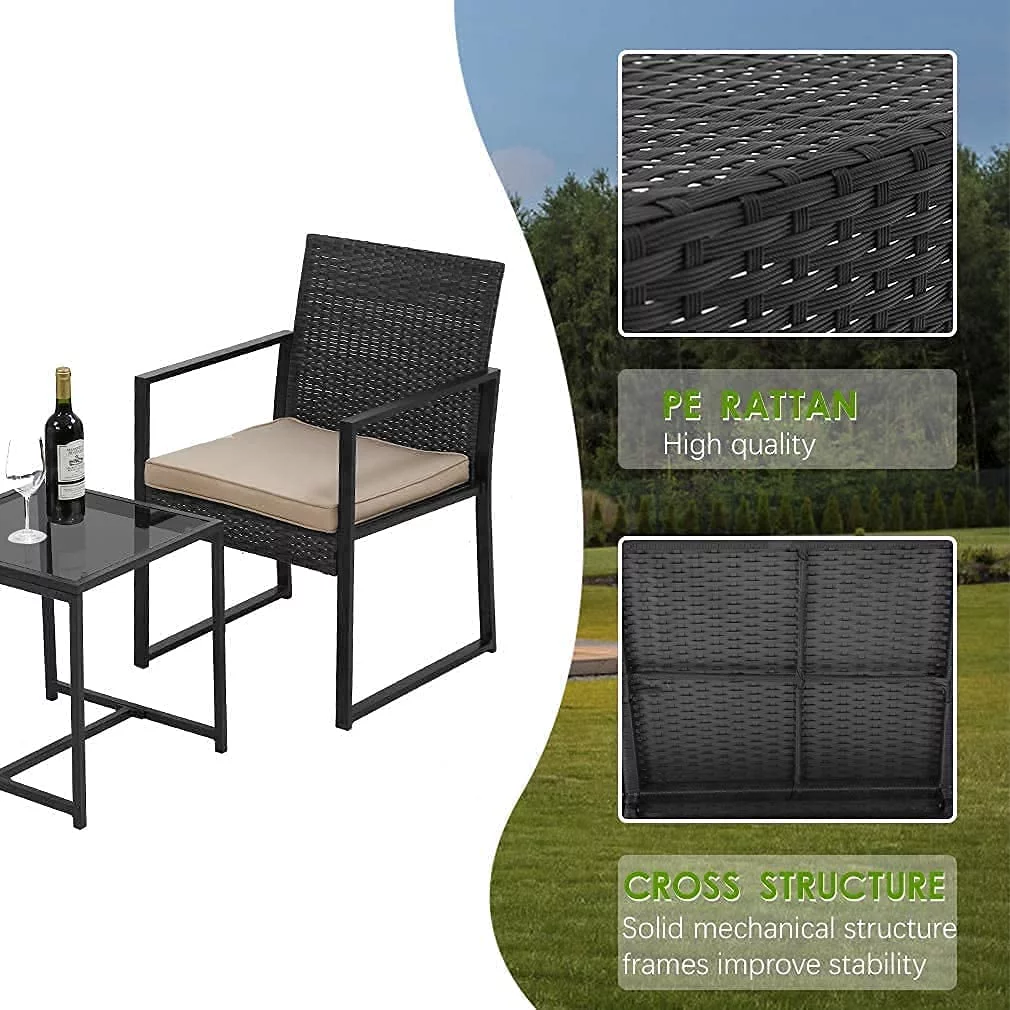 FDW Patio Bistro Set 3 Pieces Outdoor Wicker Chair Patio Rattan Furniture Wicker Conversation Sets Backyard Garden Balcony Poolside,Beige