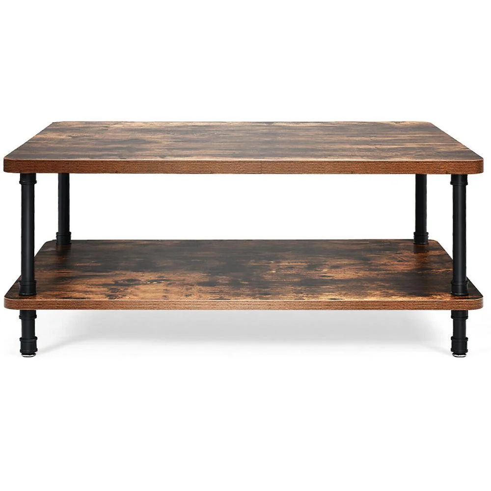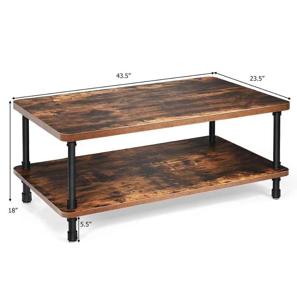 Industrial Coffee Table Rustic Accent Table Storage Shelf Living Room Furniture