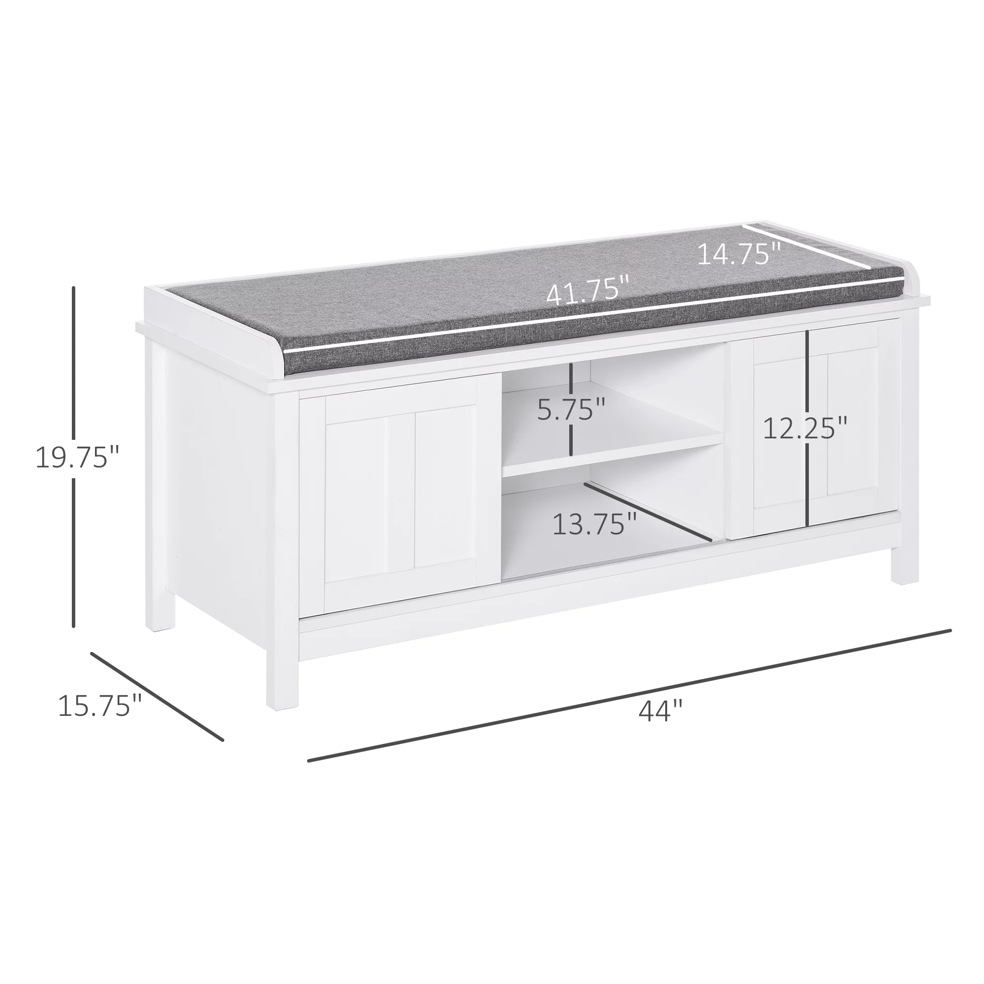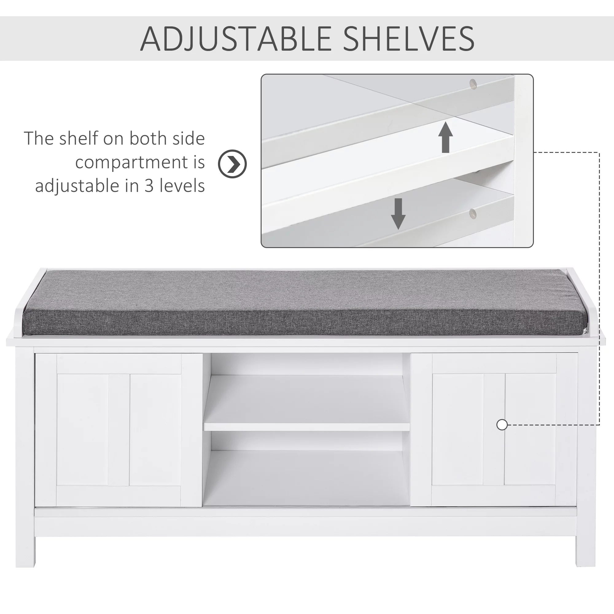 HOMCOM Entryway Shoe Bench Storage Ottoman with Sliding Doors, Adjustable Shelving, 6 Compartments, and Padded Seat, Holds 10 Pairs, White/Gray