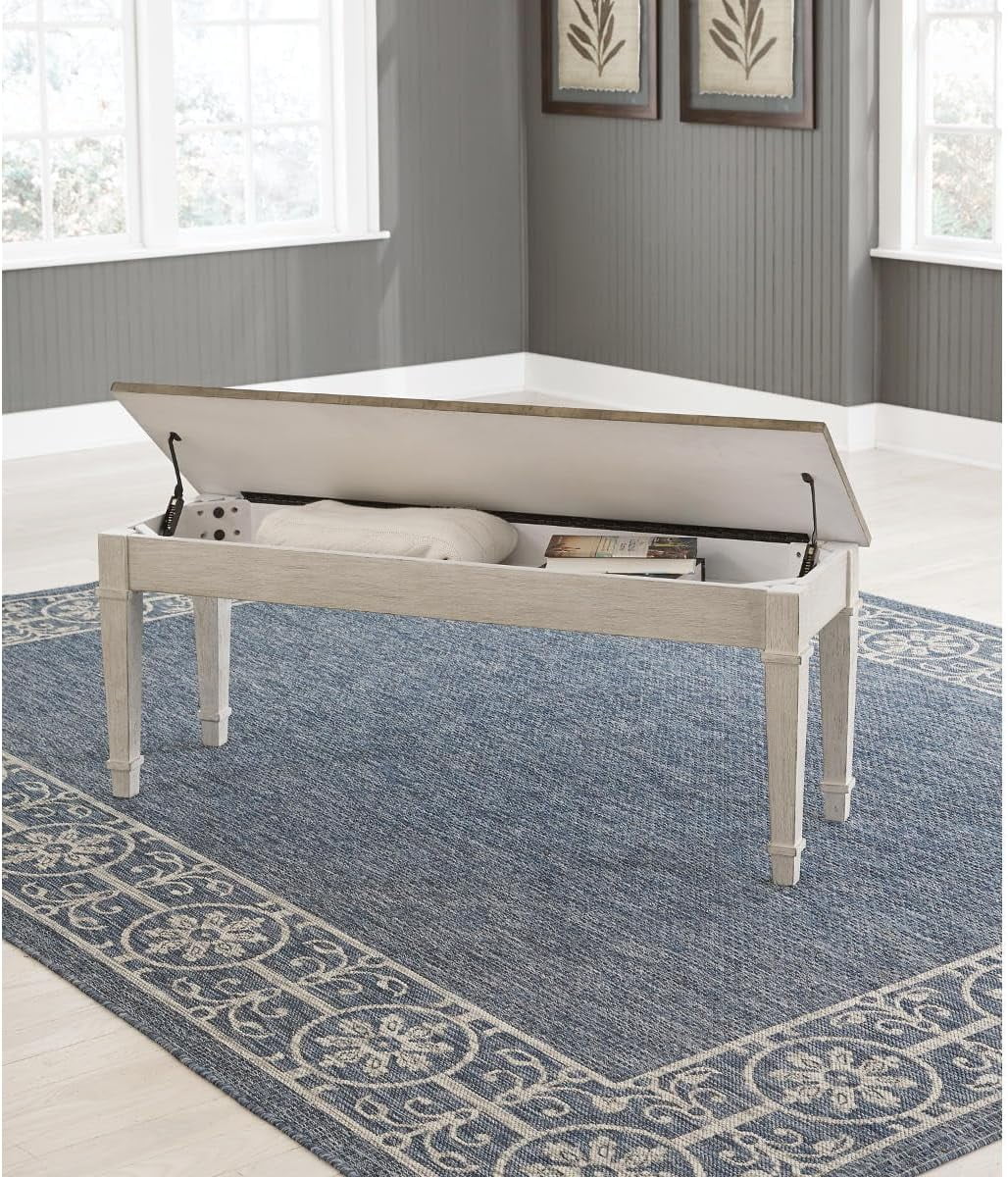 LIHONG Skempton Farmhouse Storage Bench, White & Light Brown