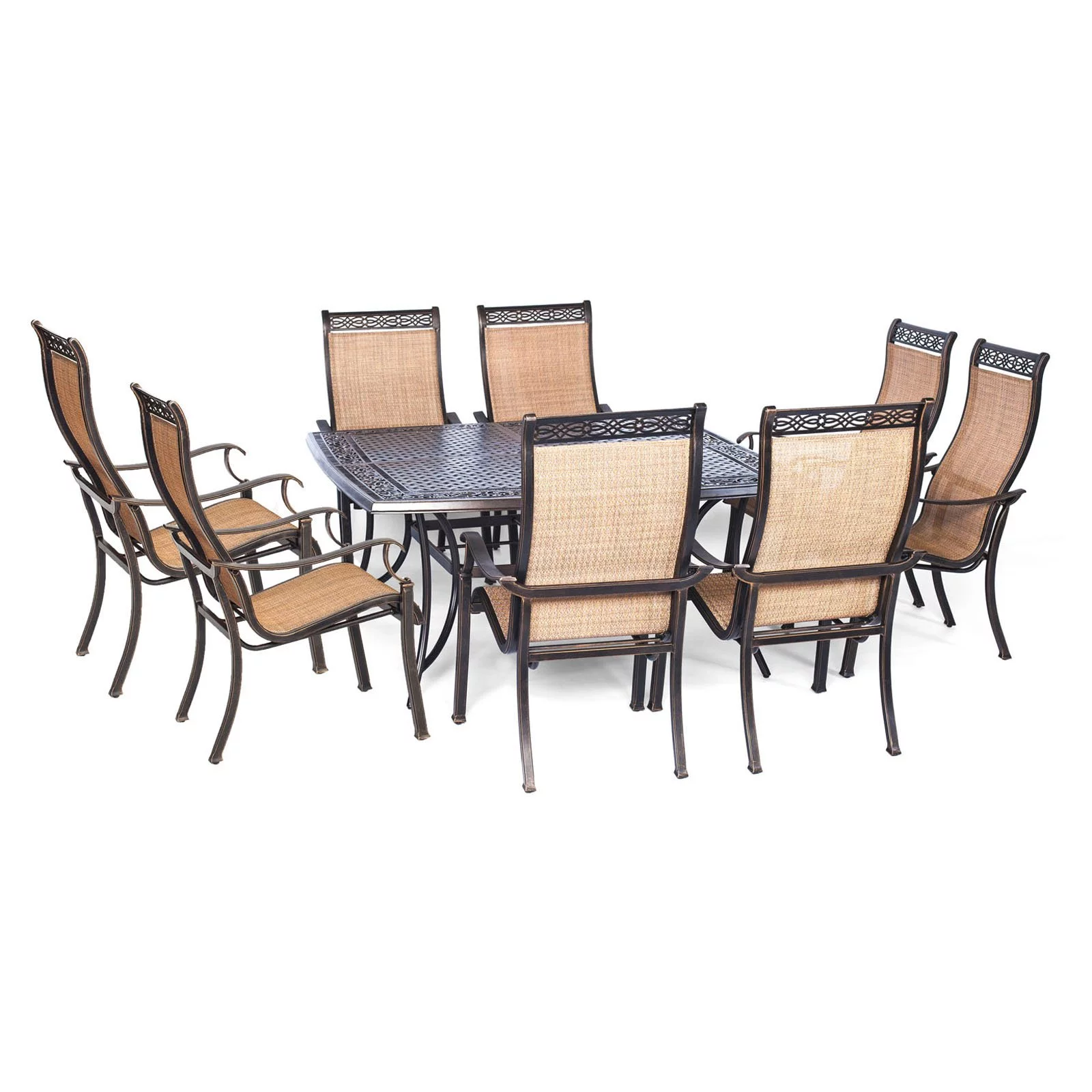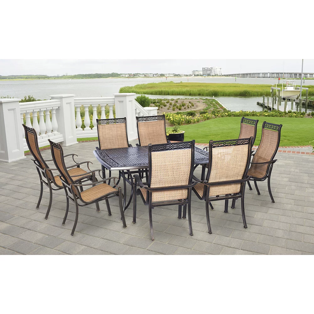 Hanover Manor 9-Piece Aluminum Outdoor Dining Set with Large Square Table, Seats 8