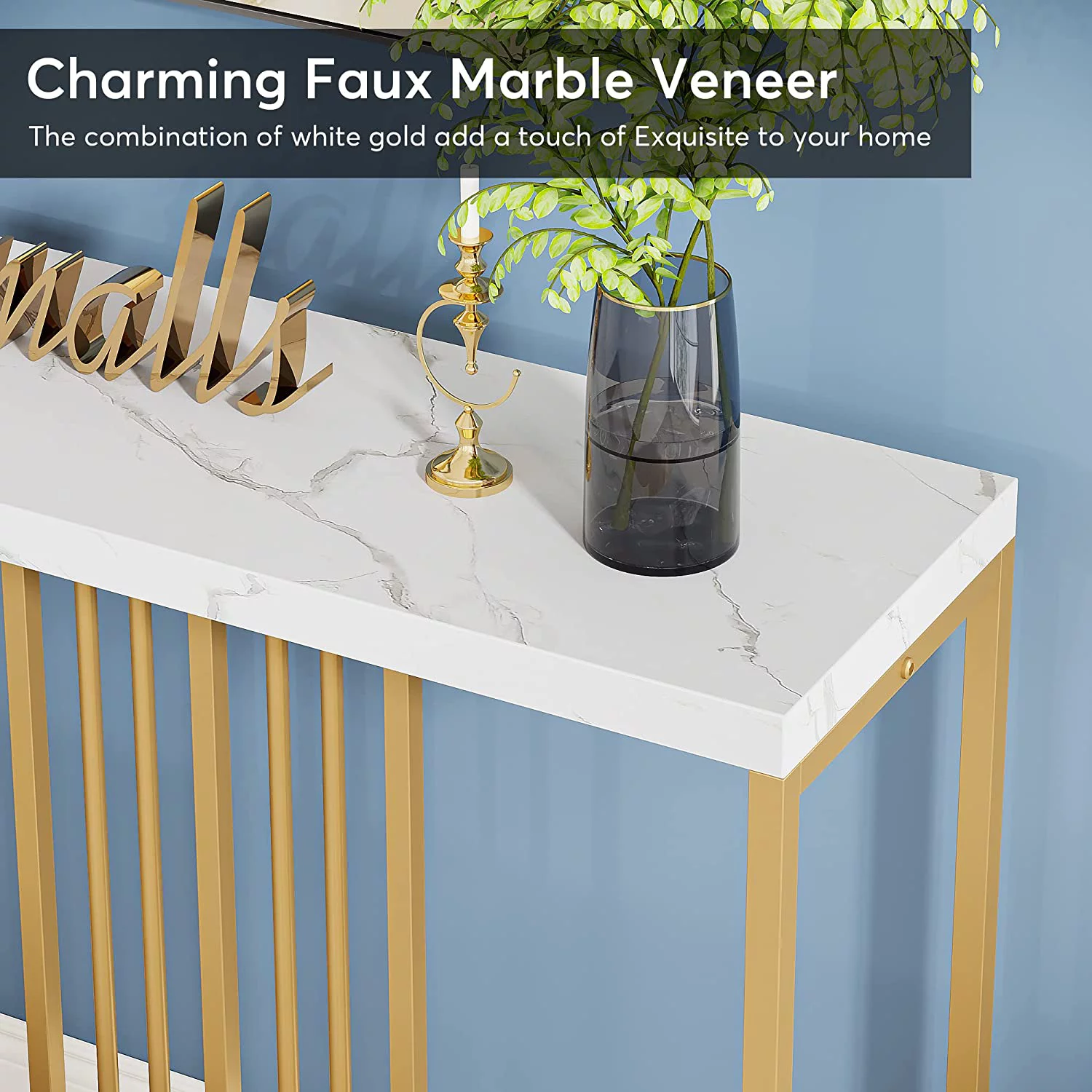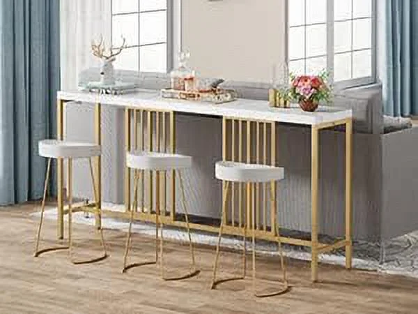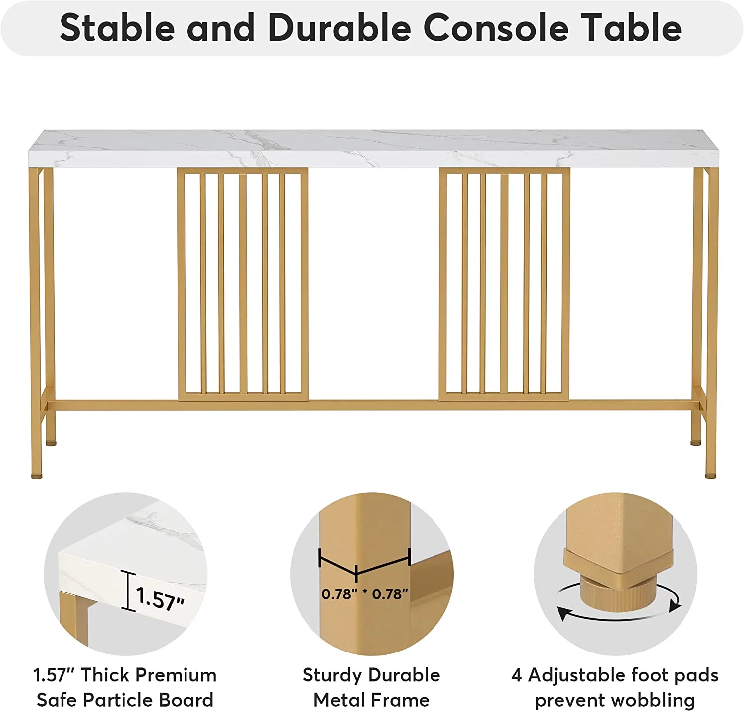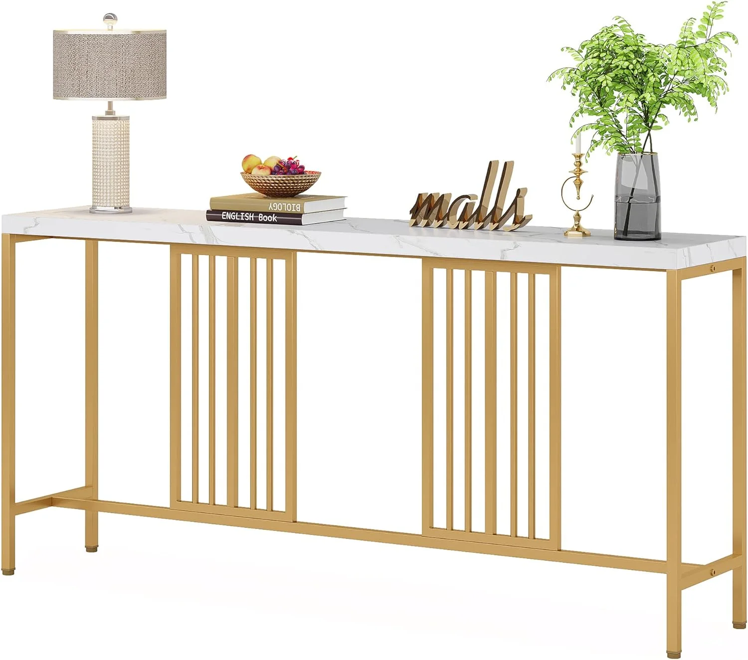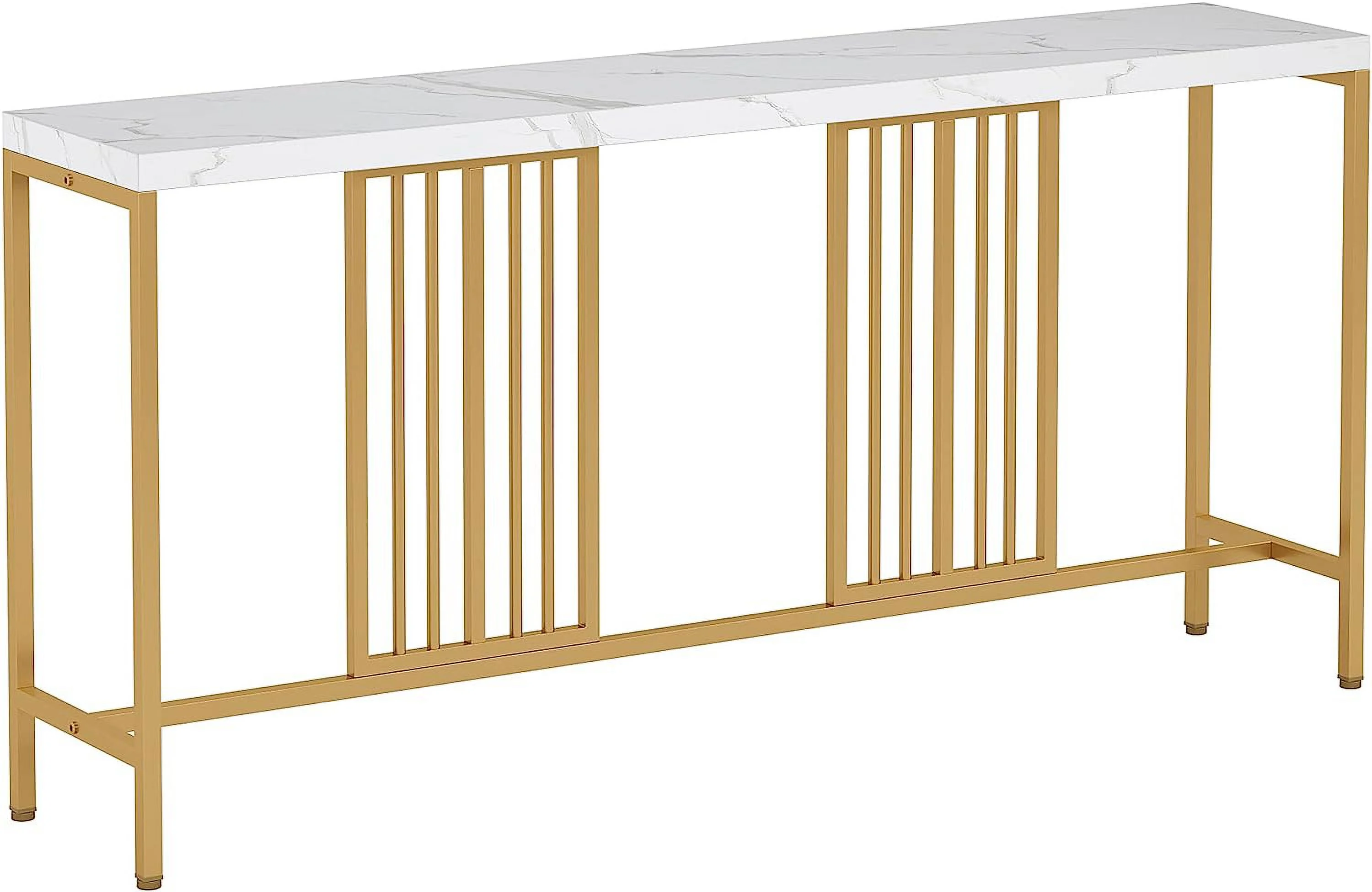 70.9 Inch Extra Long Console Table Sofa Table White and Gold Entryway Table Narrow Long Hallway Table for Living Room with Gold Metal Frame