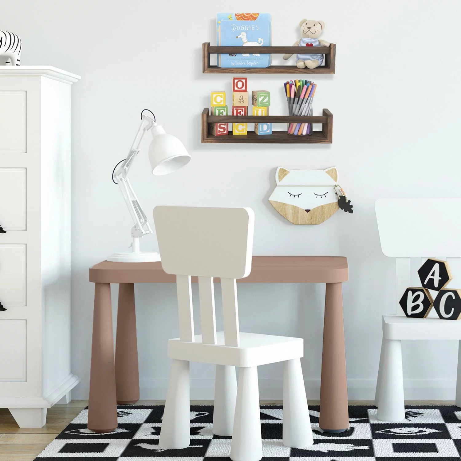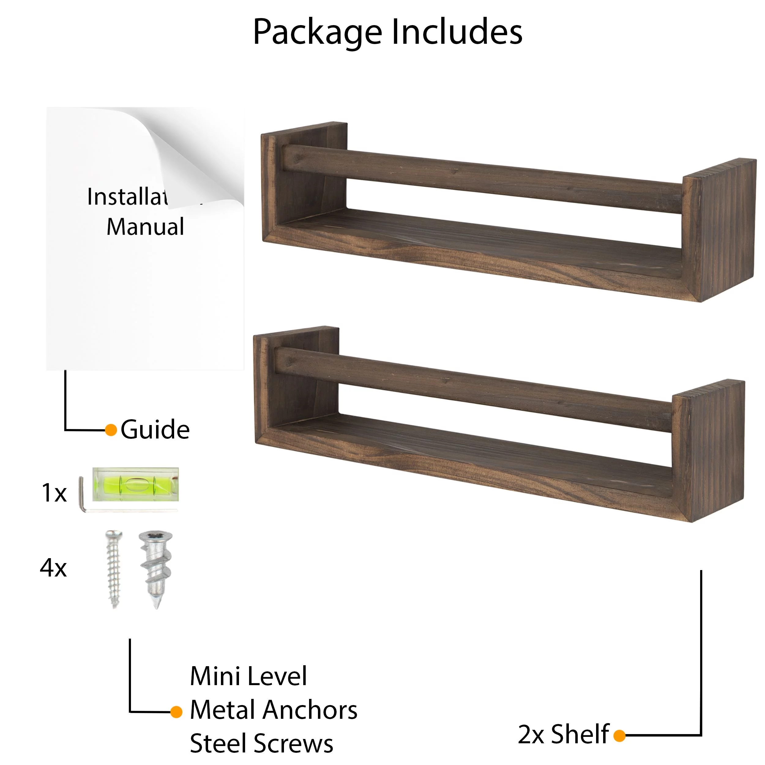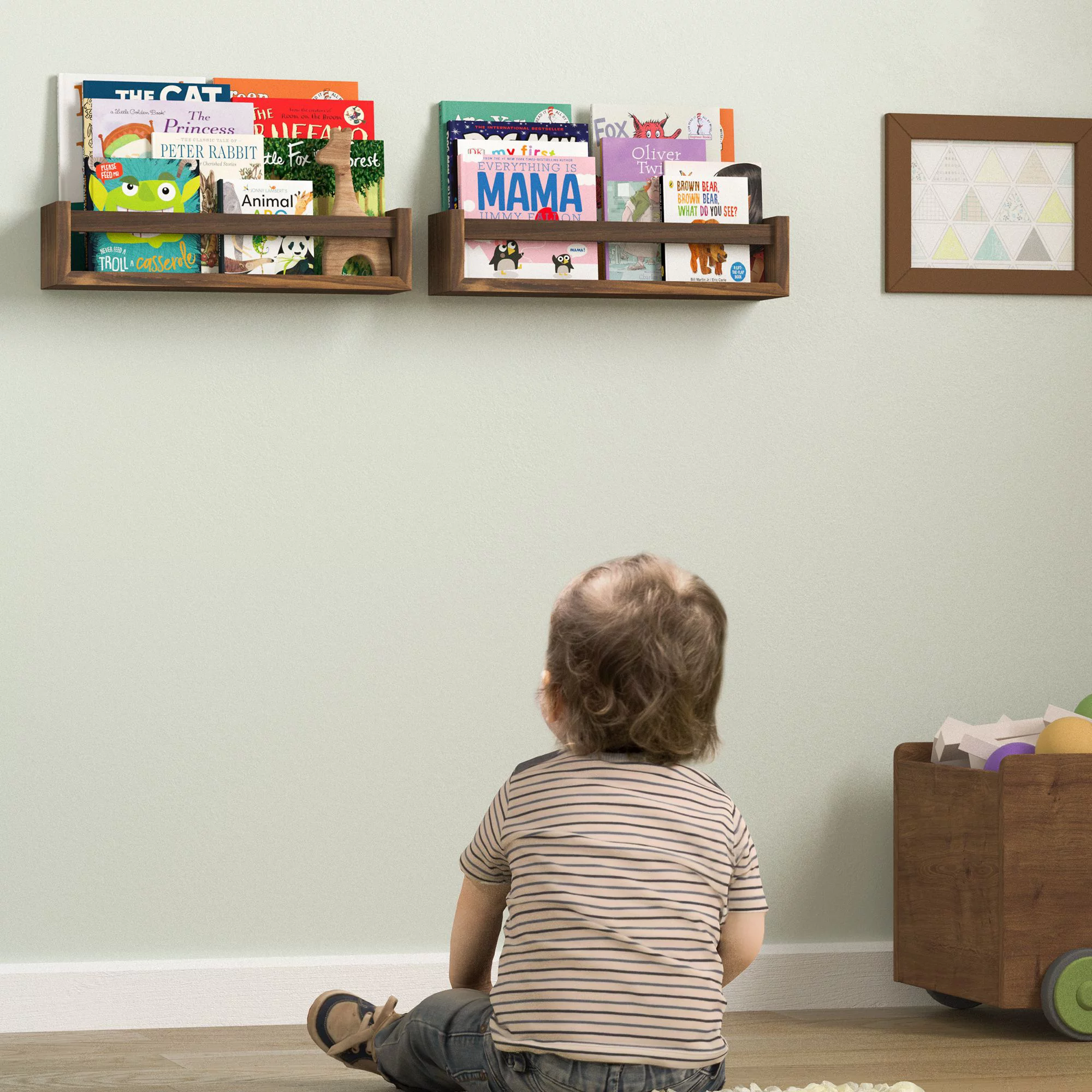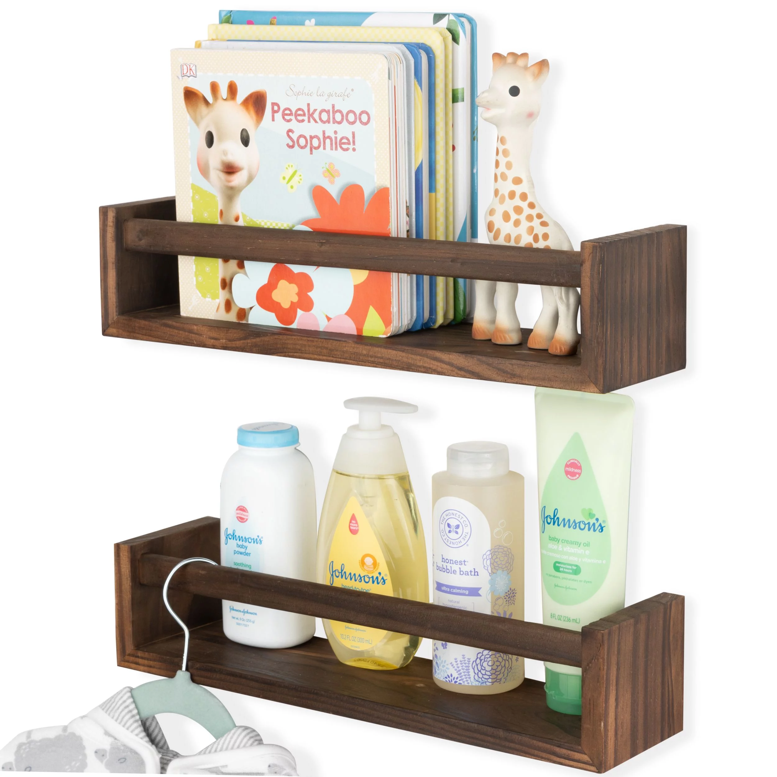 Wallniture Utah Nursery Organizer Shelf Kids Wall Bookcases Set of 2 Toy Storage Wood Shelves, Burnt Wash Brown