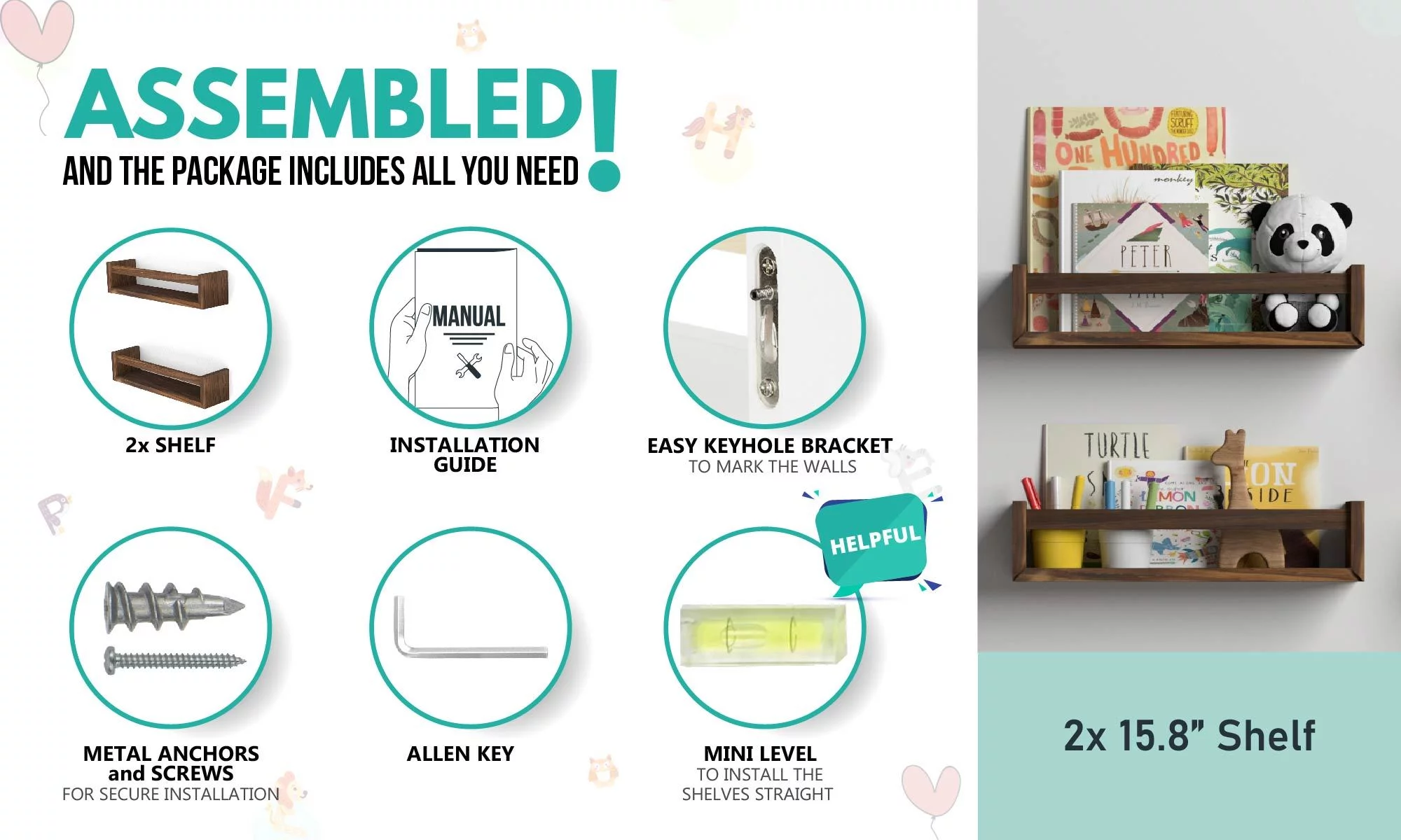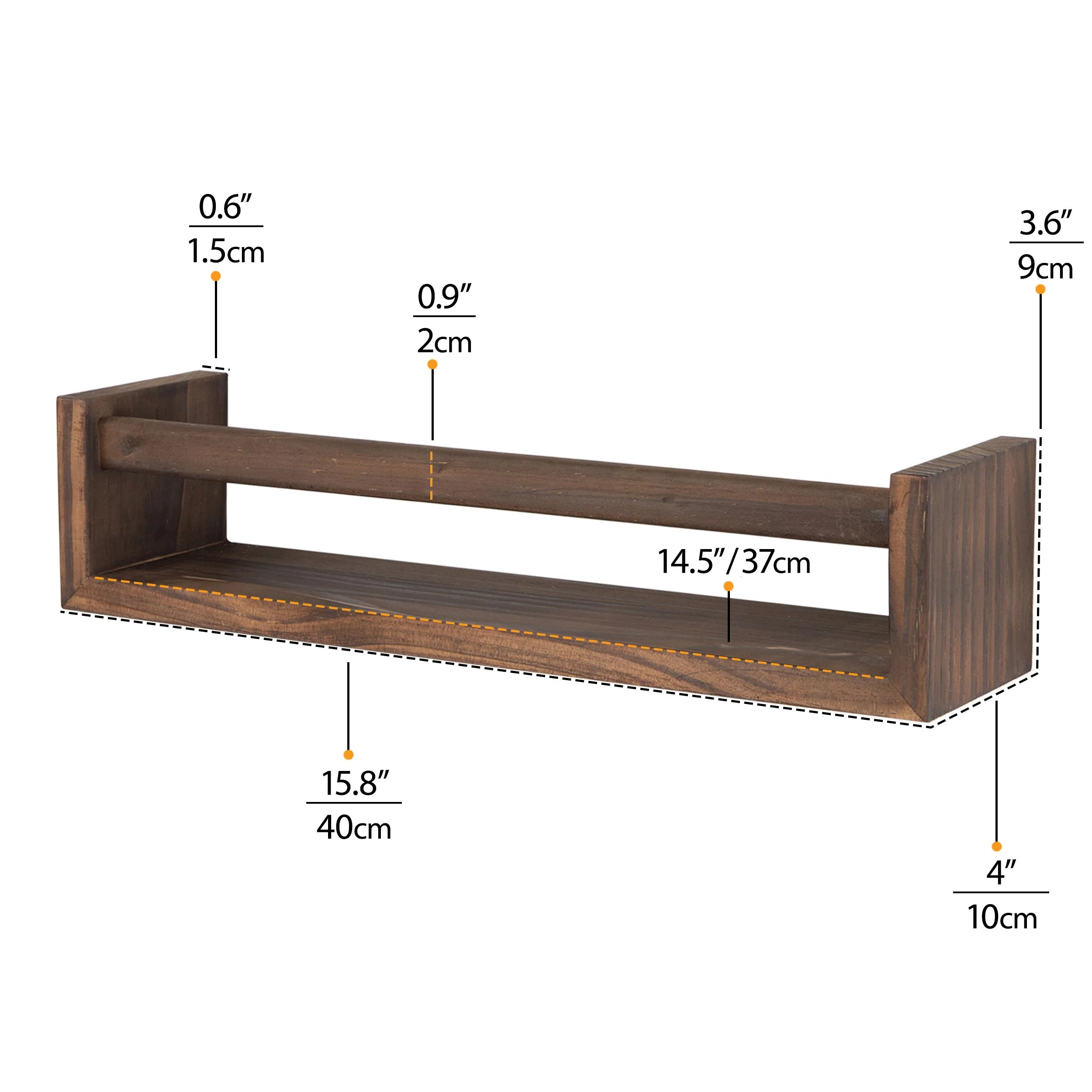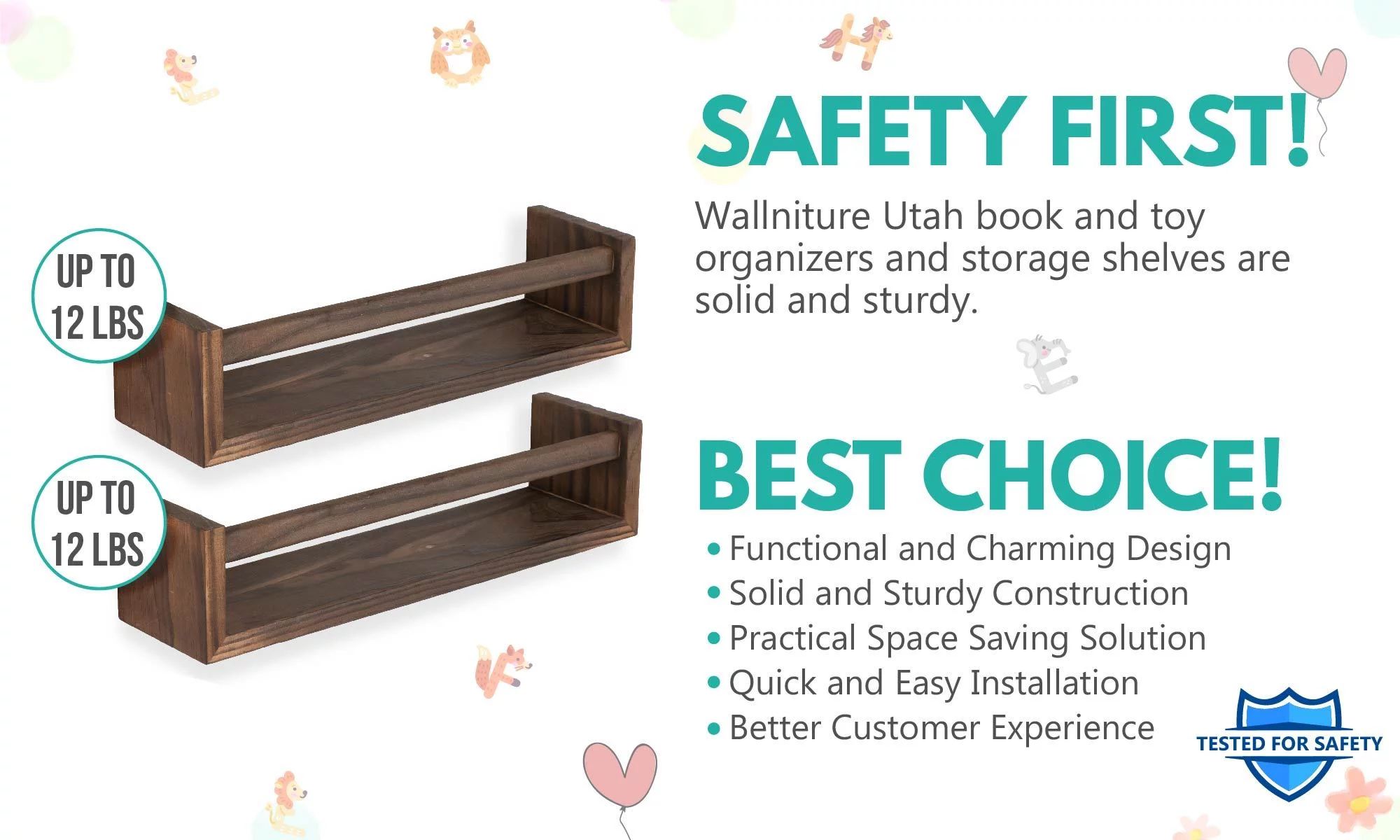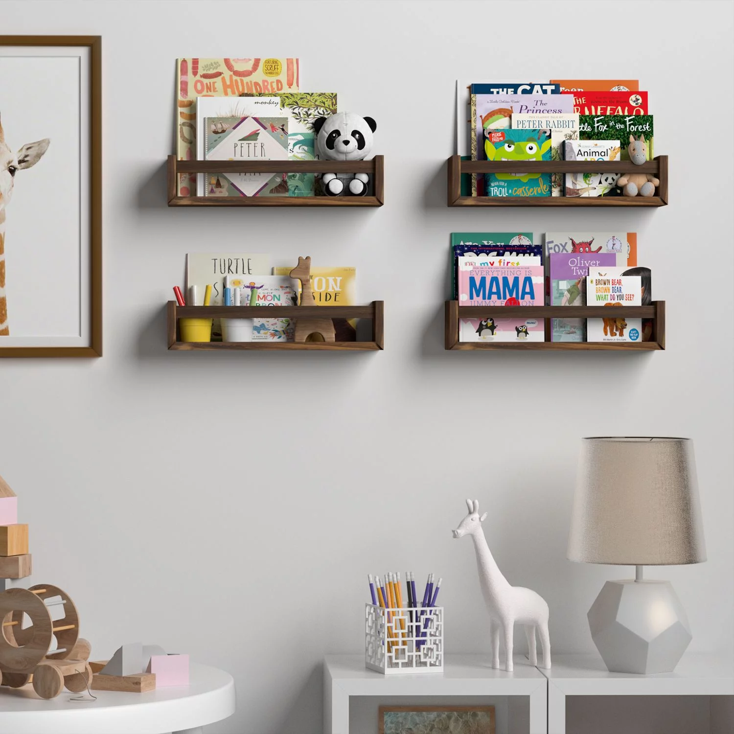 Wallniture Utah Nursery Organizer Shelf Kids Wall Bookcases Set of 2 Toy Storage Wood Shelves, Burnt Wash Brown