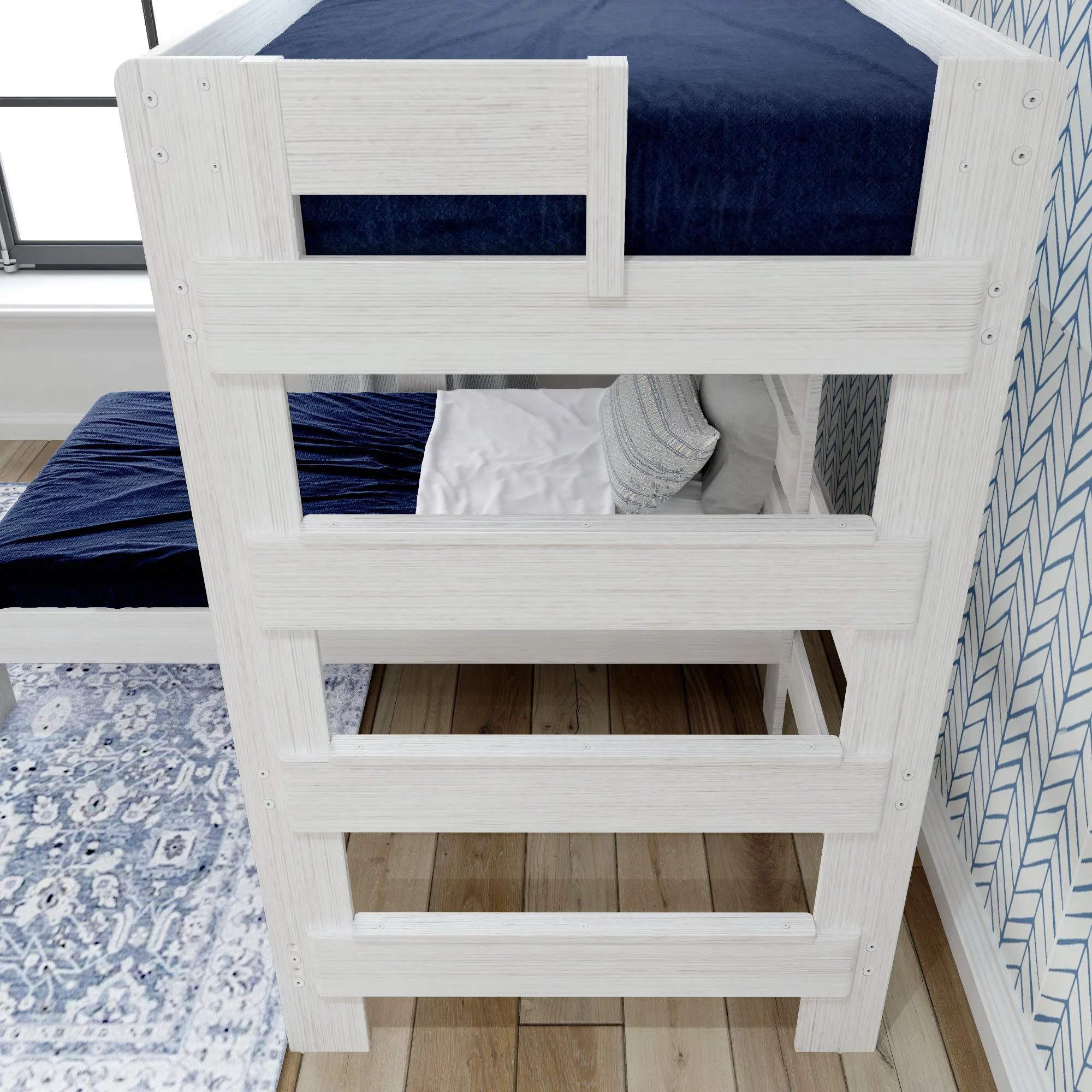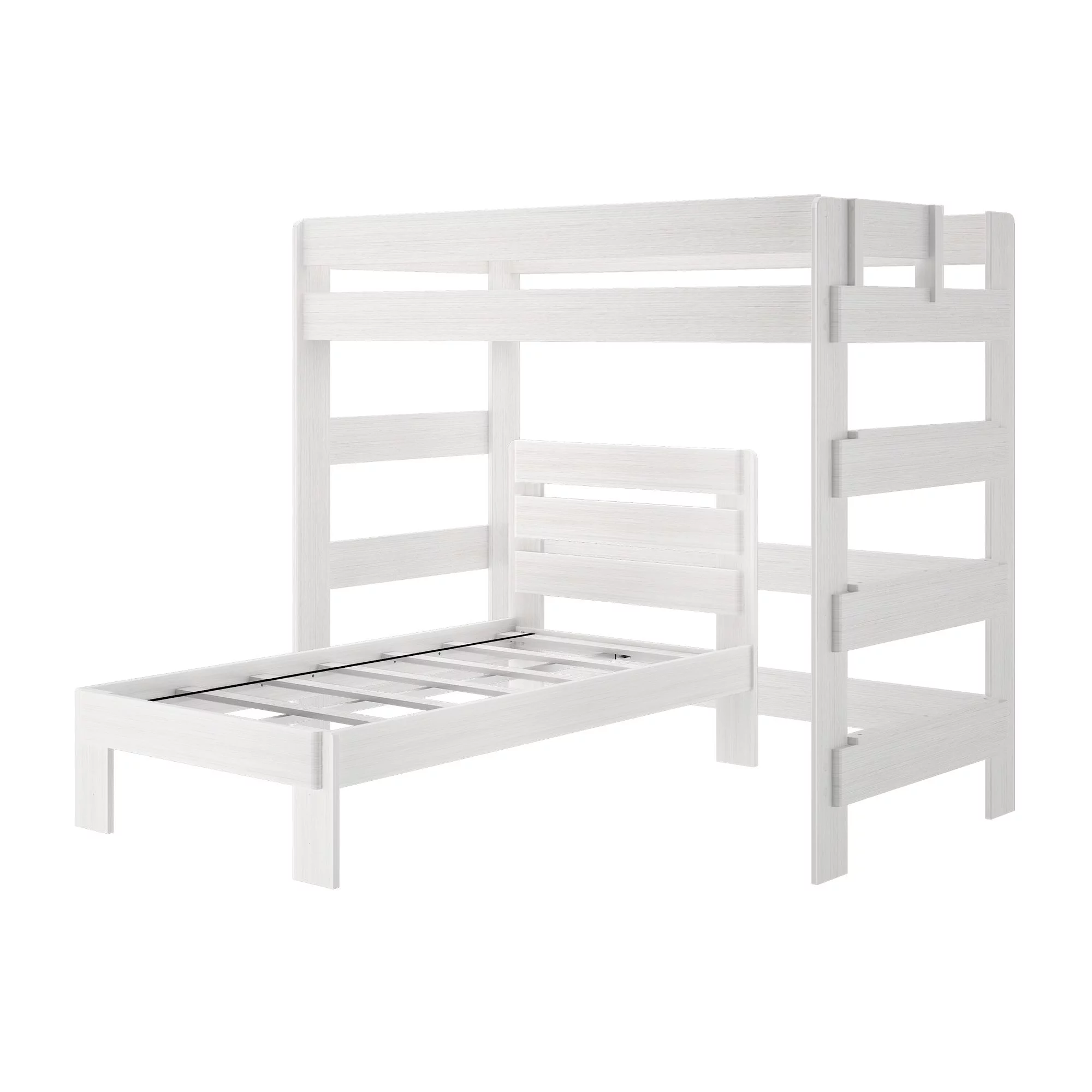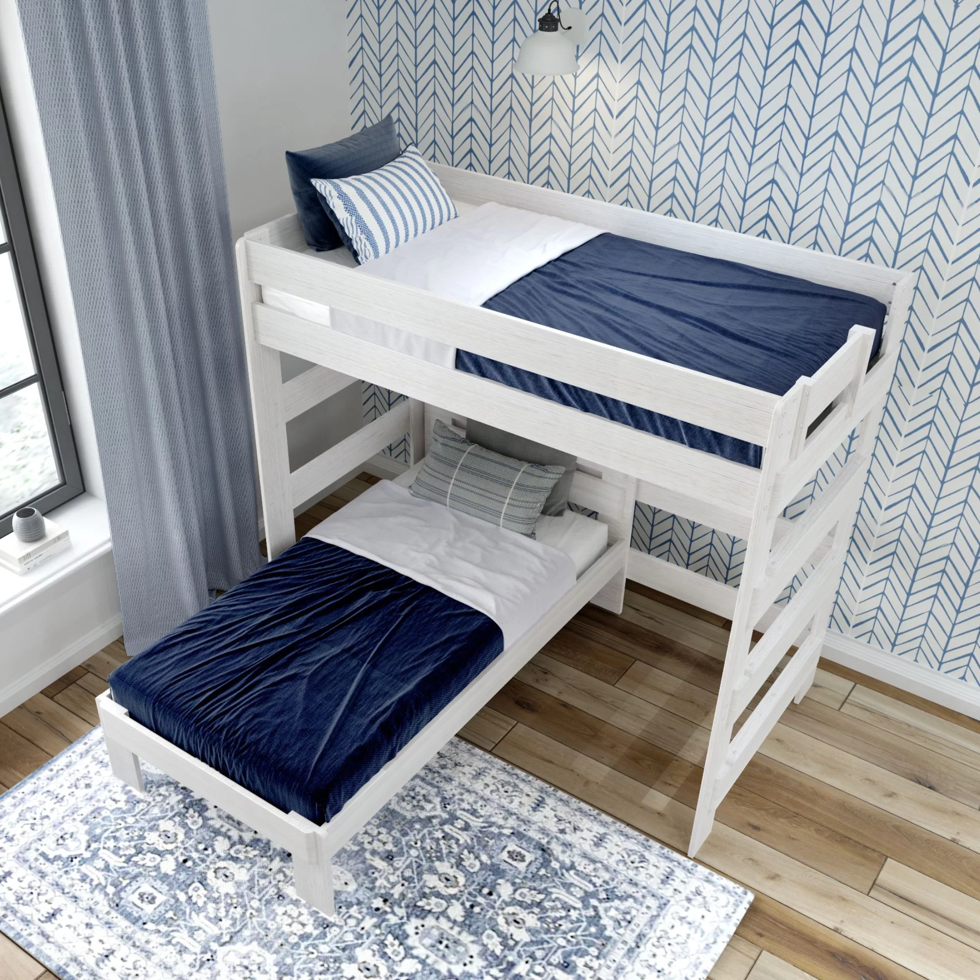 Plank+Beam Solid Wood Twin over Twin L-Shaped Bunk Bed for Adults, White Wash