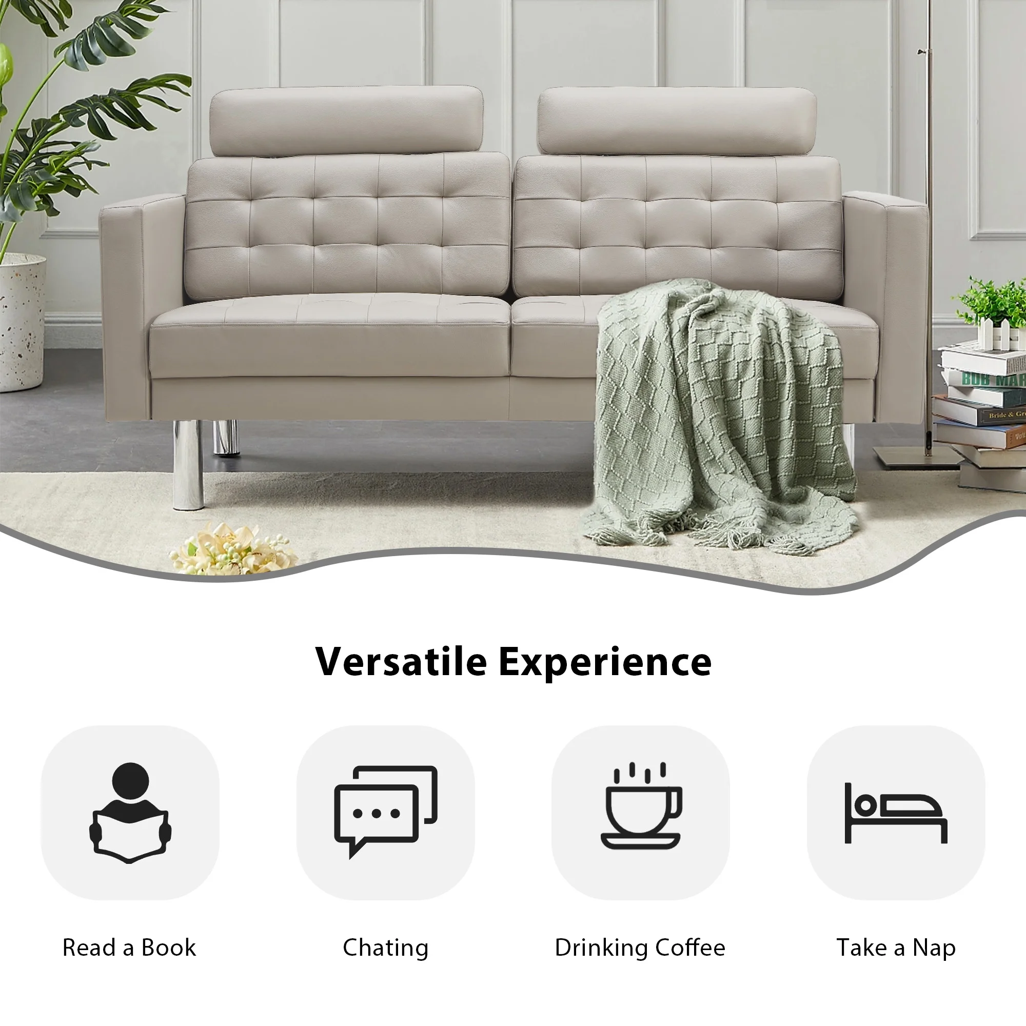 SZLIZCCC 72" Top-Grain Loveseat Leather Sofa Couches for Living Room, Upholstered Genuine Leather Couch Tufted Sofa with Metal Legs&Wide Backrest, Two Seater Couch for Bedroom,Apartment, Lounge Room