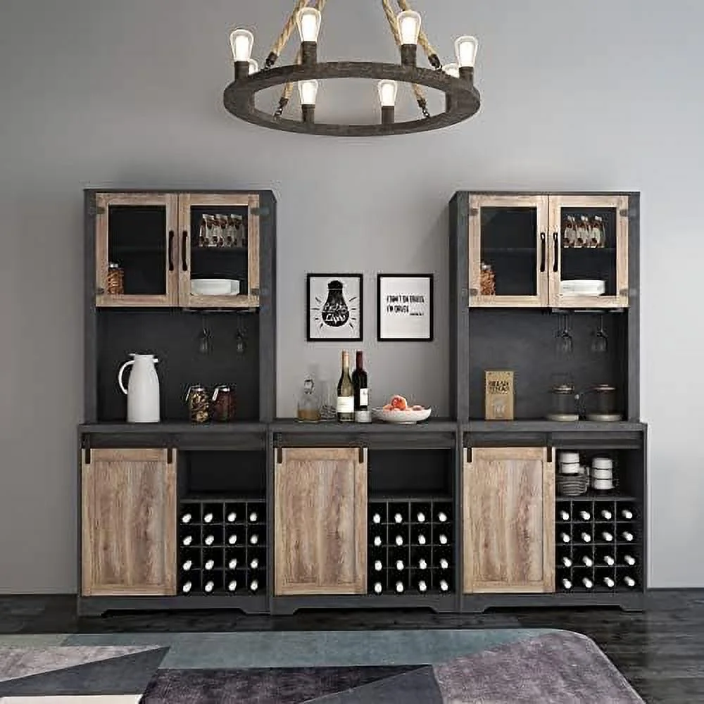 YPZBBOOM Farmhouse Cabinet Modern Kitchen Hutch Cabinet with Double Barn Door and Shelves Rustic Sideboard and Buffet Cabinet with Goblet Holder and Drawer for Living Kitchen(Bright Yel