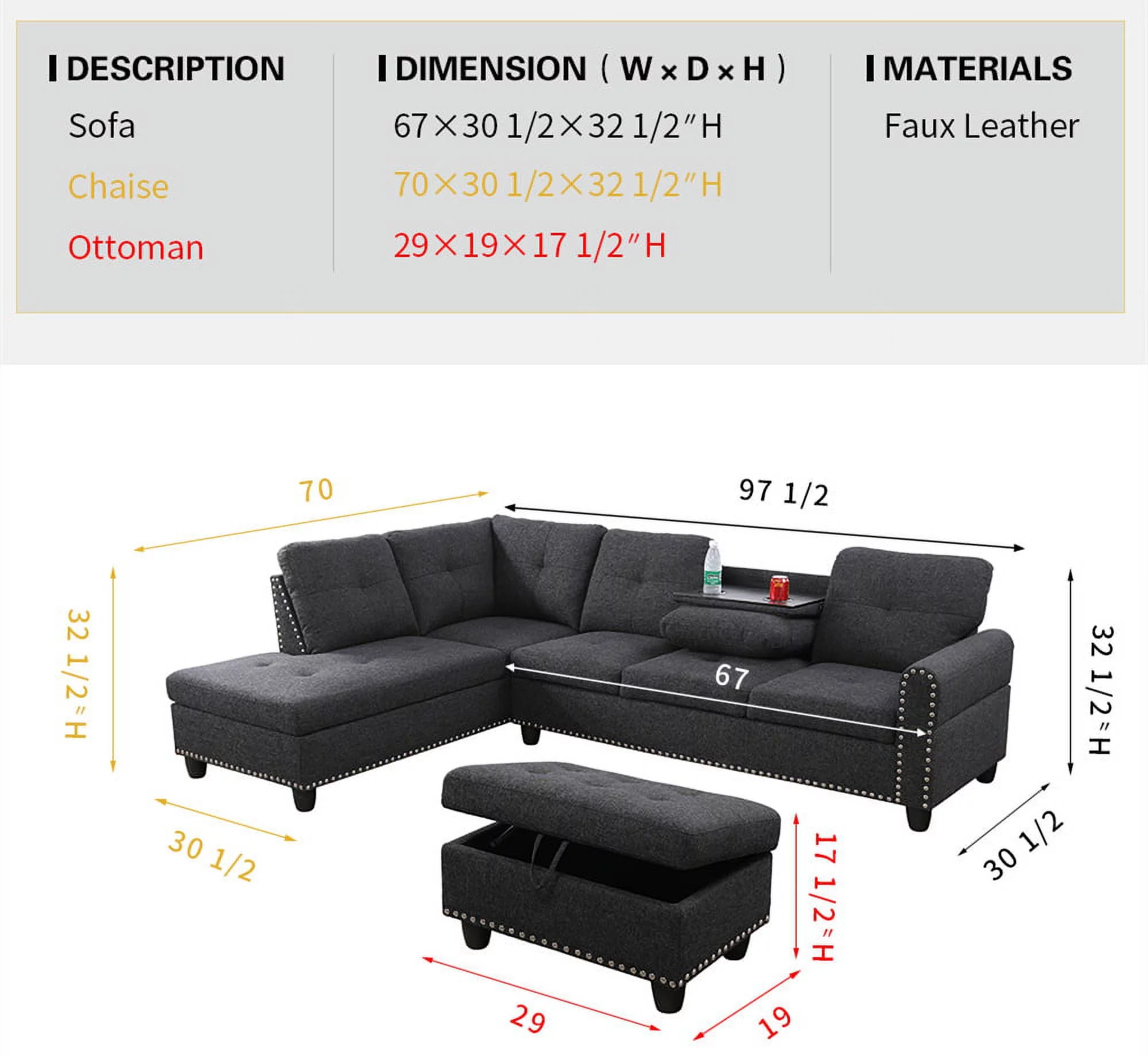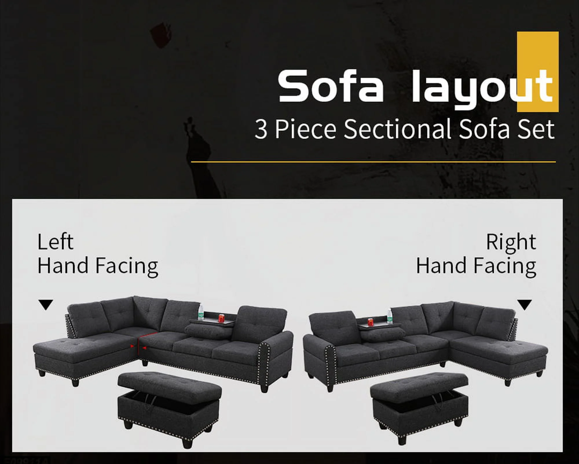 PonLiving Furniture Mulrey Sleeper Sectional with Storage Ottoman, Right & Left Hand Facing Mulrey Sleeper Sectional with Storage Ottoman, Right & Left Hand Facing