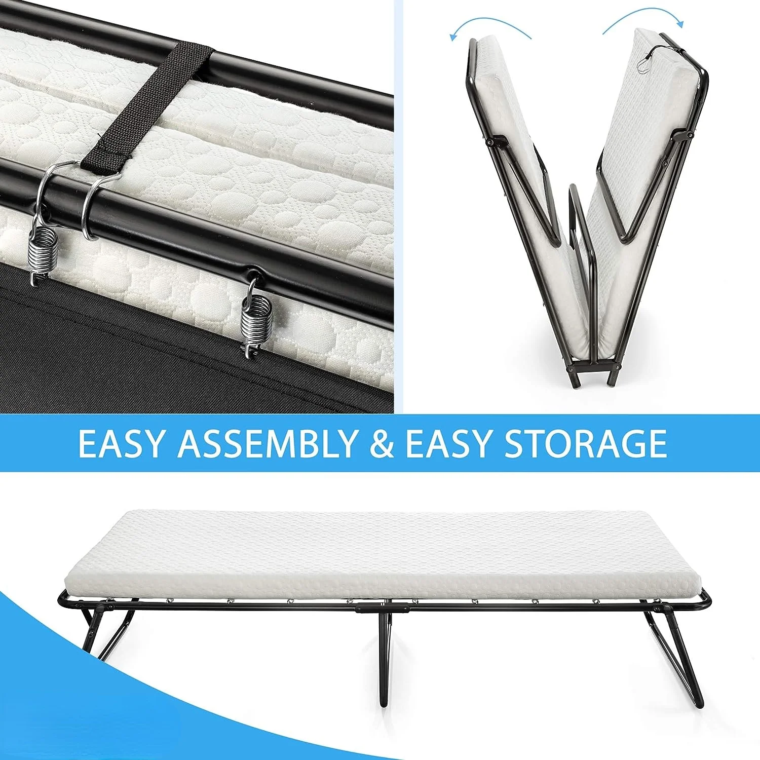 Guest Folding Bed Cot with Memory Foam Mattress, Compact, Portable & Lightweight, for Spare Bedroom & Office (31 inch)