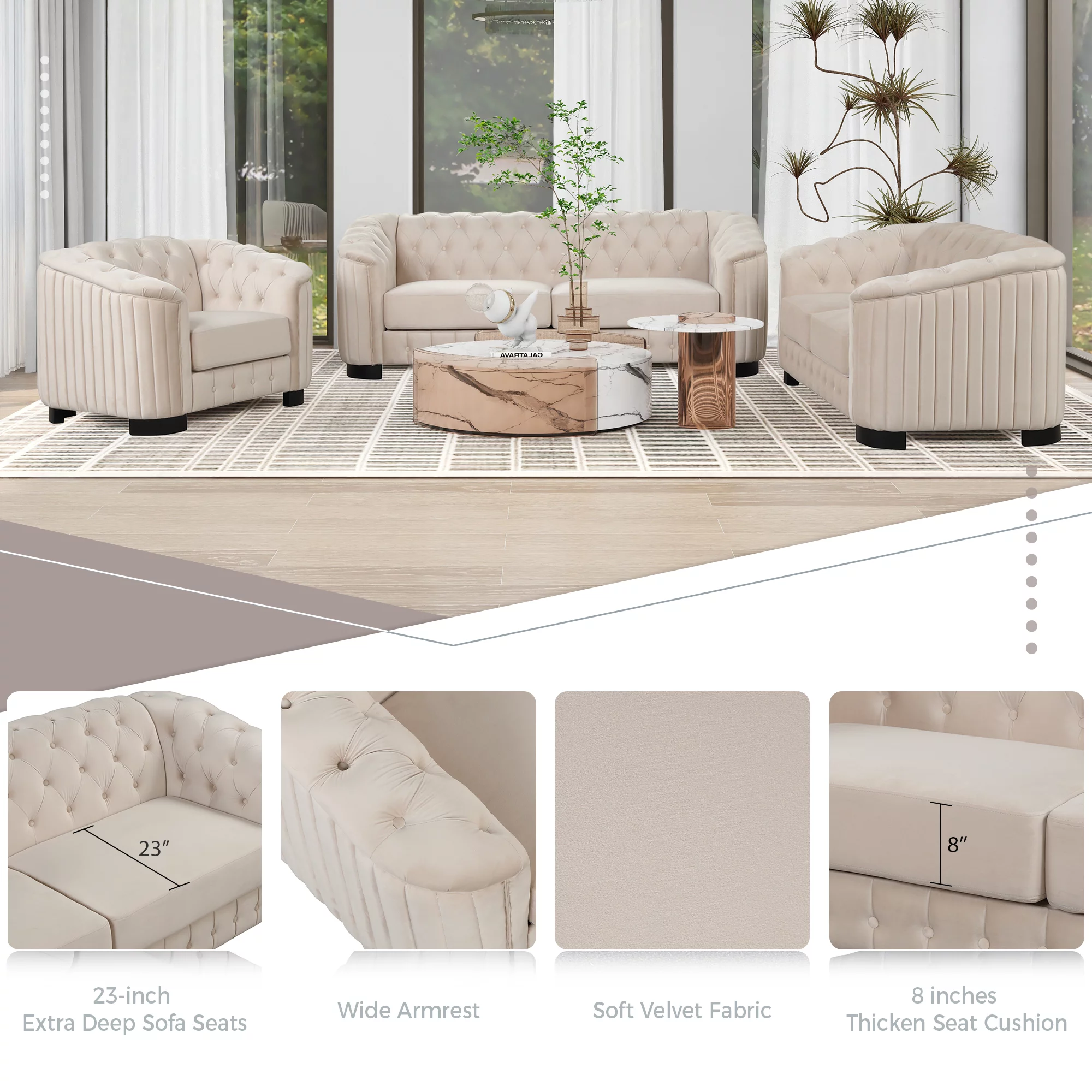 64" Velvet Upholstered Loveseat Sofa,Modern Loveseat Sofa with Thick Removable Seat Cushion,2-Person Loveseat Sofa Couch for Living Room,Bedroom,or Small Space,Beige