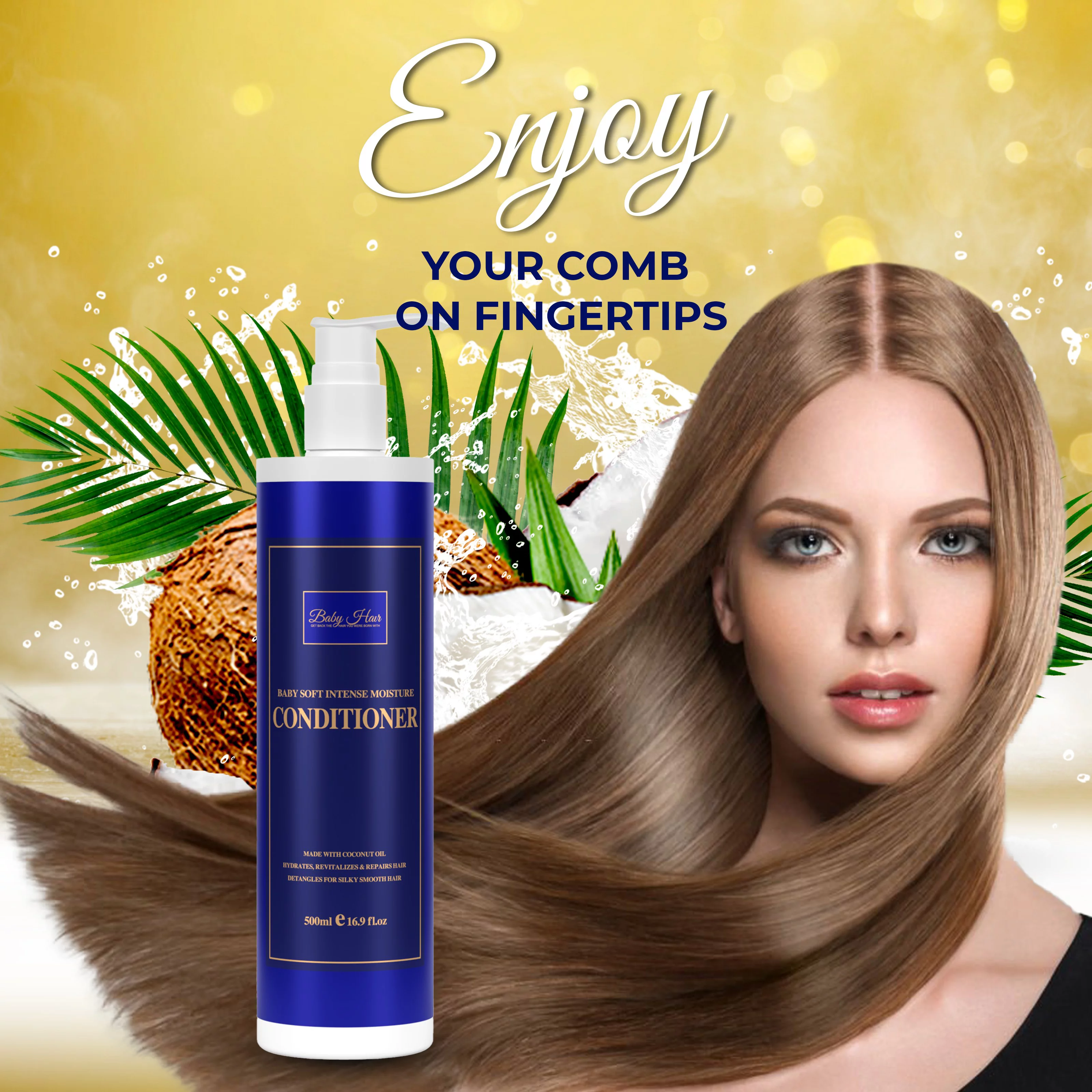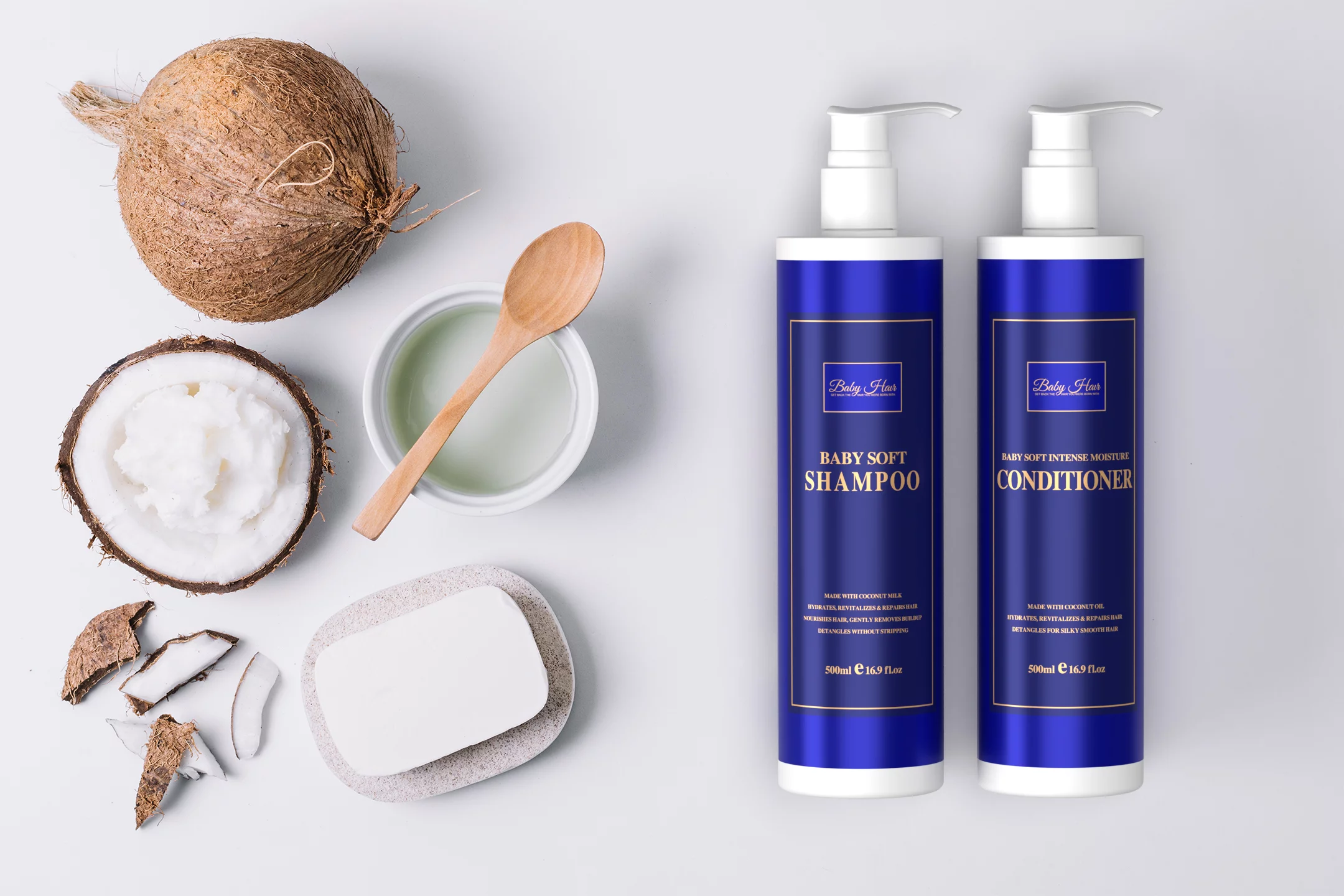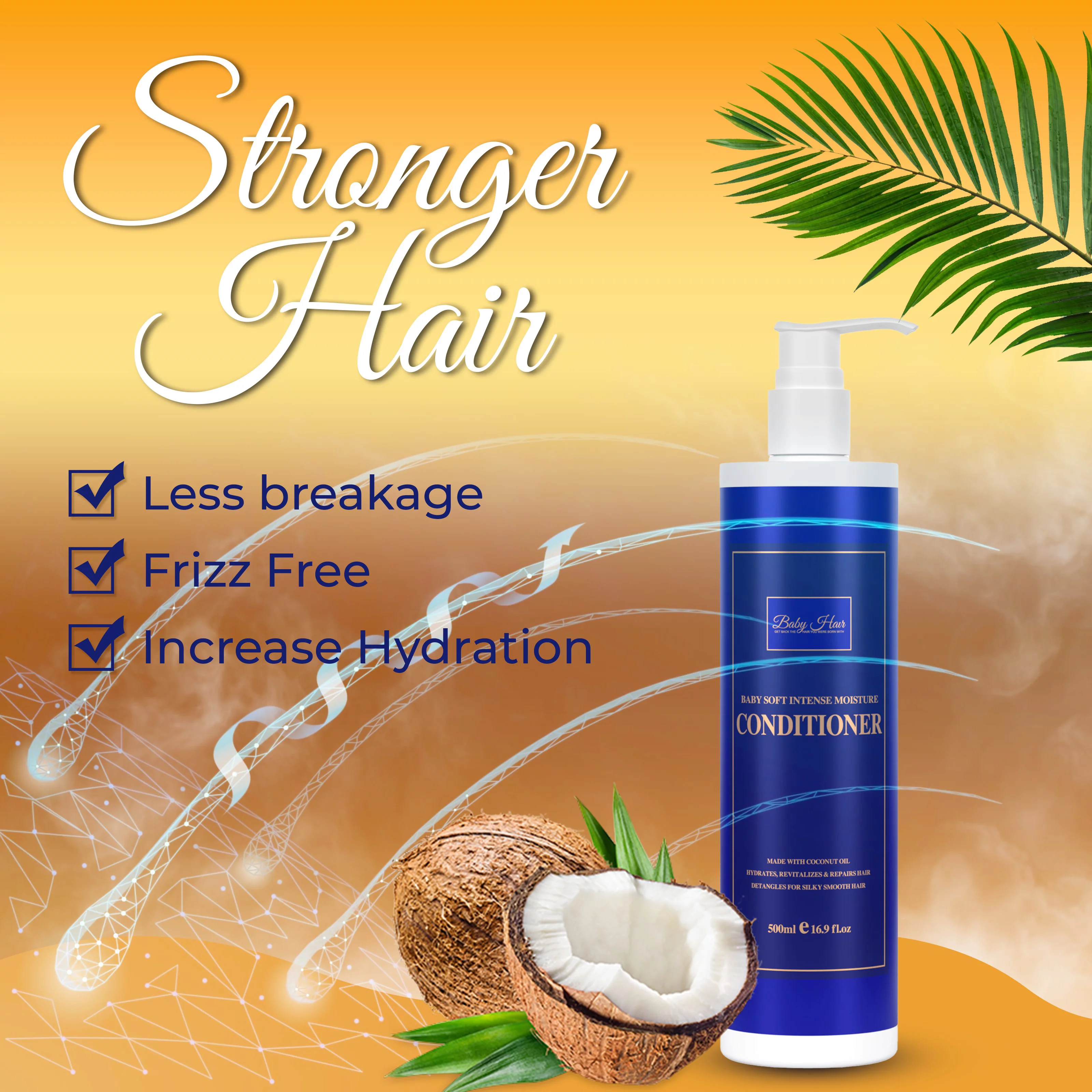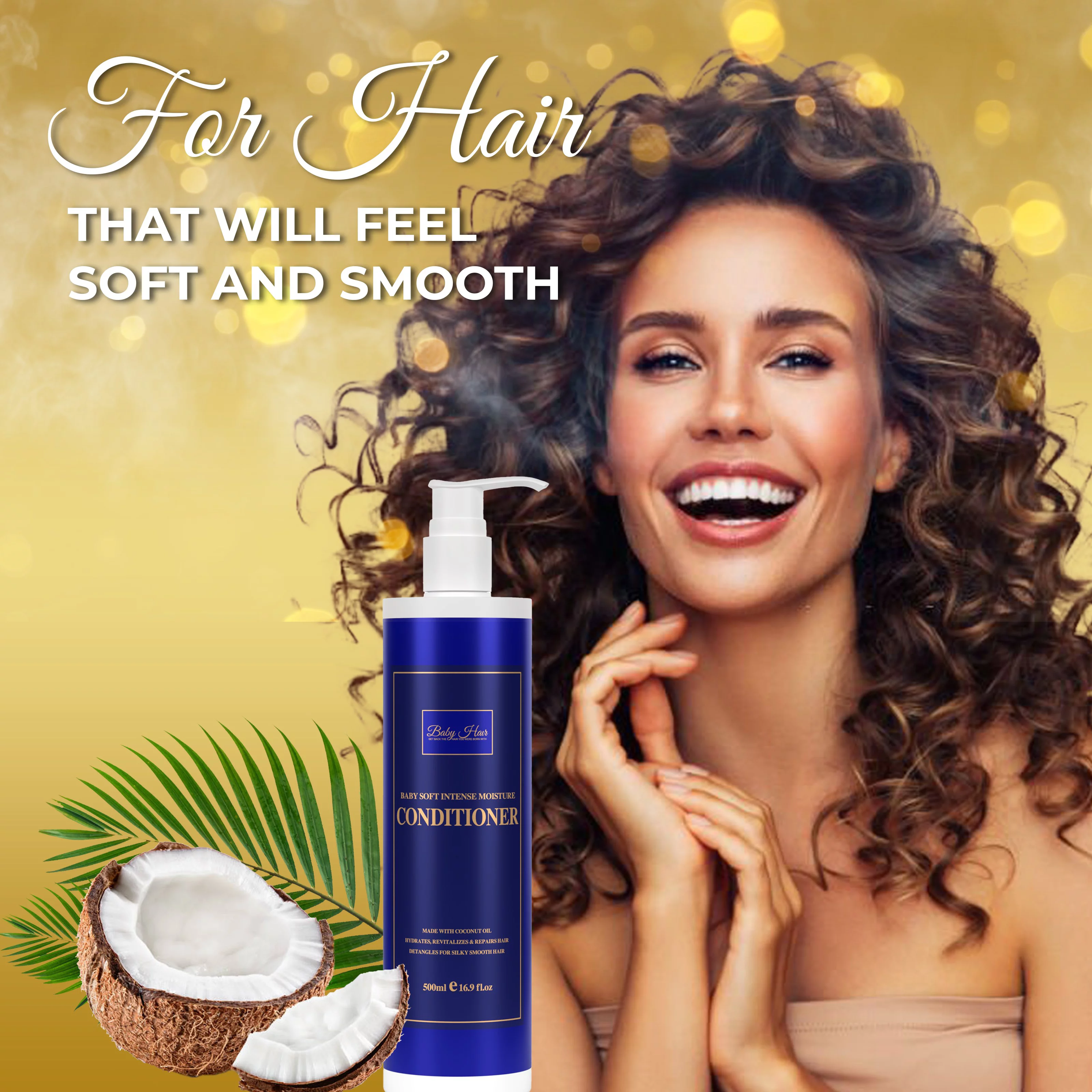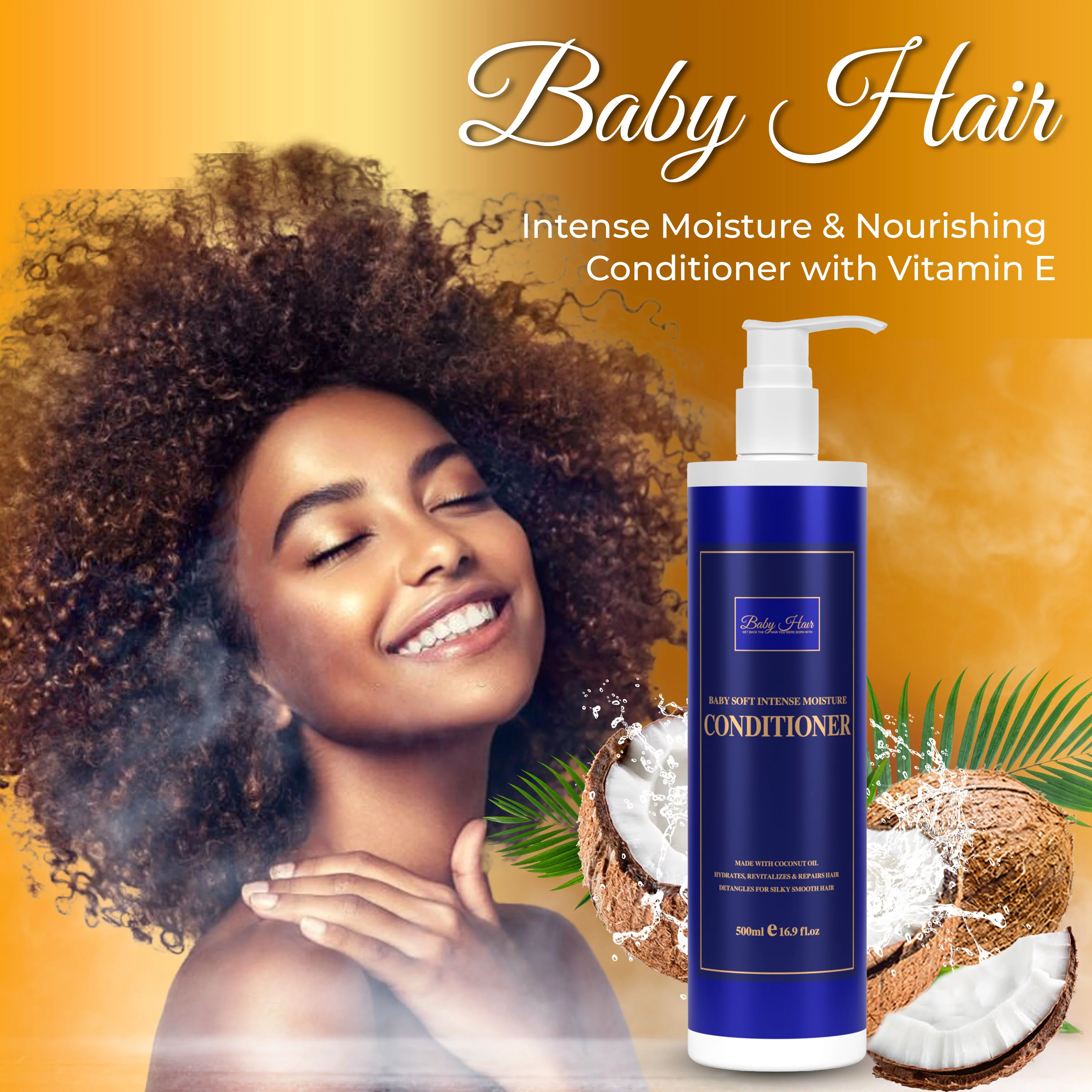 Baby Hair Intense Moisture & Nourishing Conditioner with Vitamin E, Coconut Oil, Macadamia Oil & Hyaluronic Acid for Healthy Strong Hair, 16.9 fl