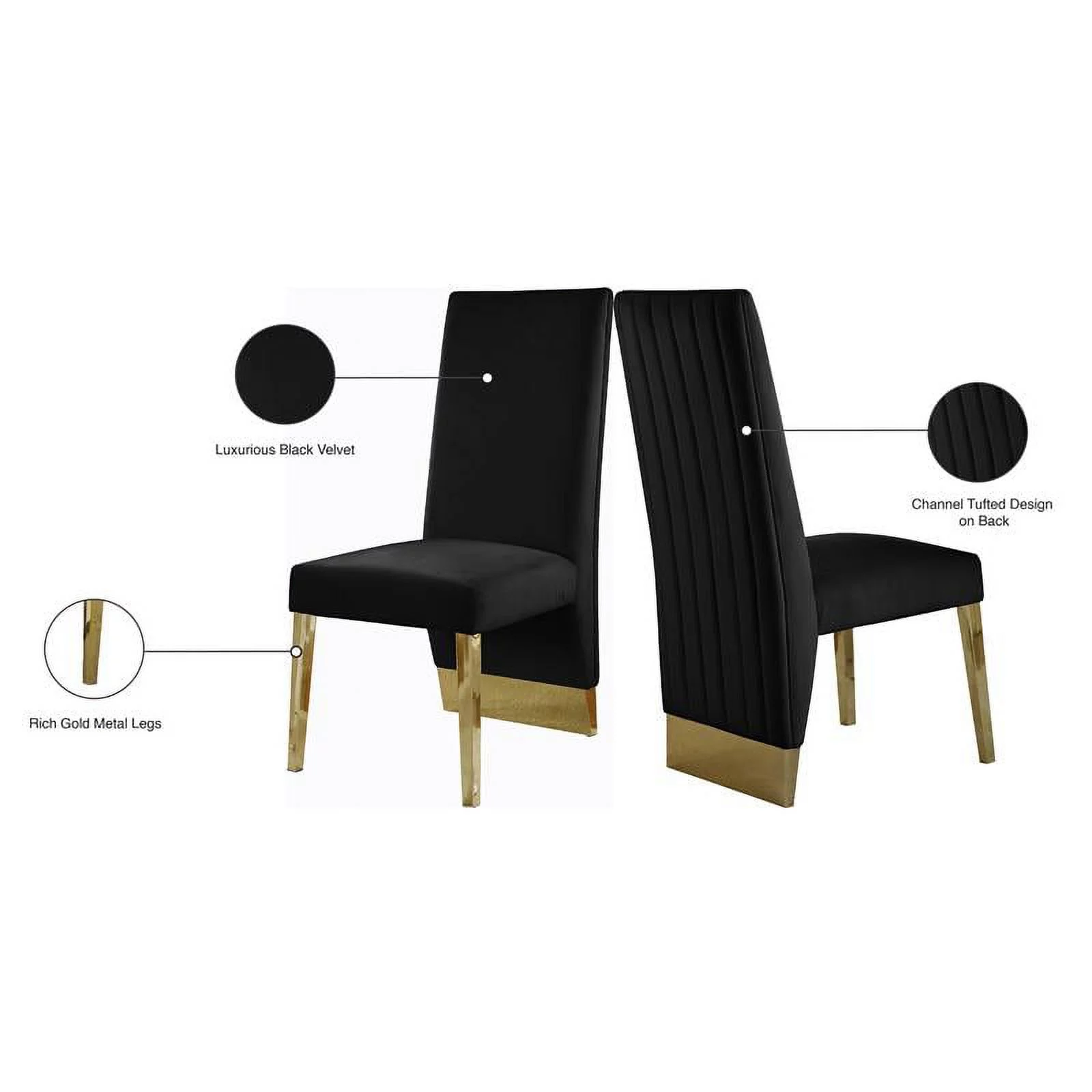 Maklaine Contemporary 19"H Velvet Dining Chair in Black (Set of 2)