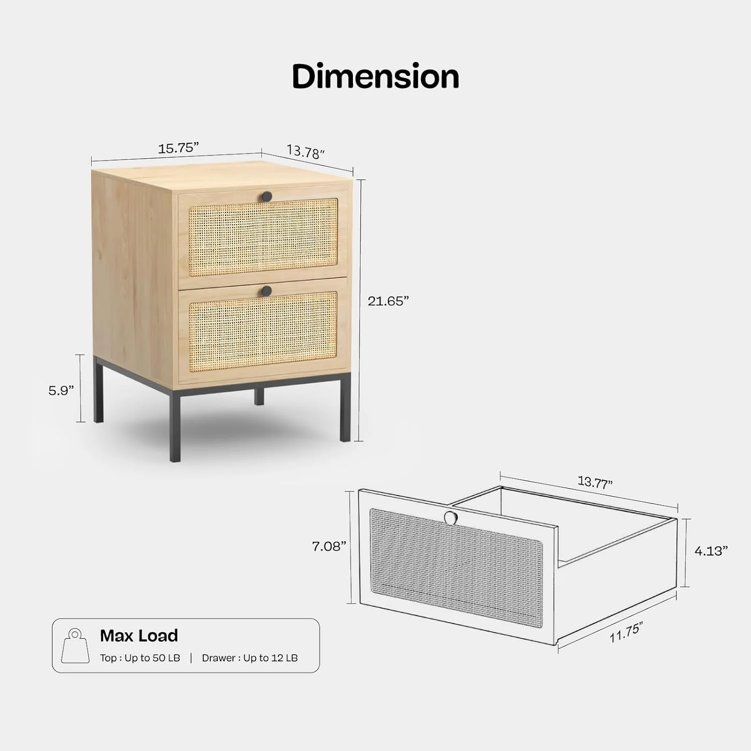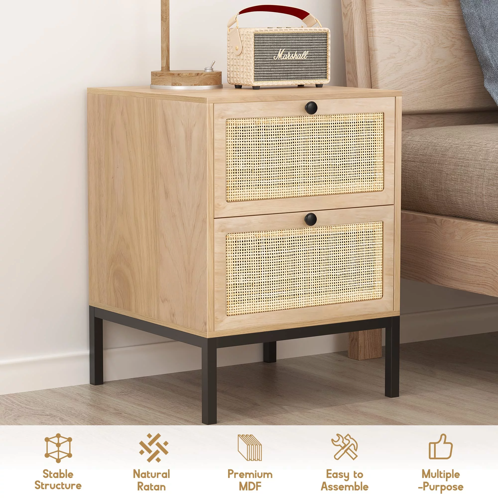 Brafab Nightstands Set of 2,With Handmade Nature Rattan Weave Finish Boho-style Storage Drawers and Shelf Storage, Side Table End Table For Living Room, Bedroom,dining Room