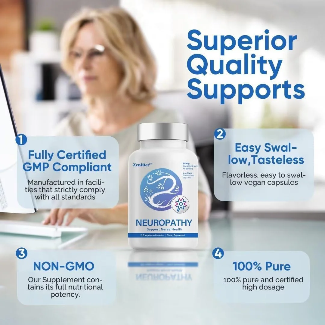 Zenlifer 120 Capsules Nerve Savior with 600 mg Alpha Lipoic Acid-Benfotiamine Supplement