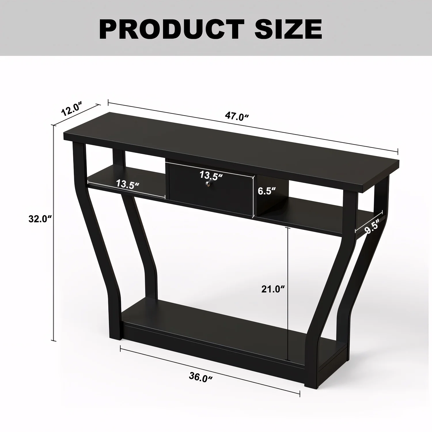 Dubbin Modern Sofa Accent Table with Drawer for Entryway and Hallway Black