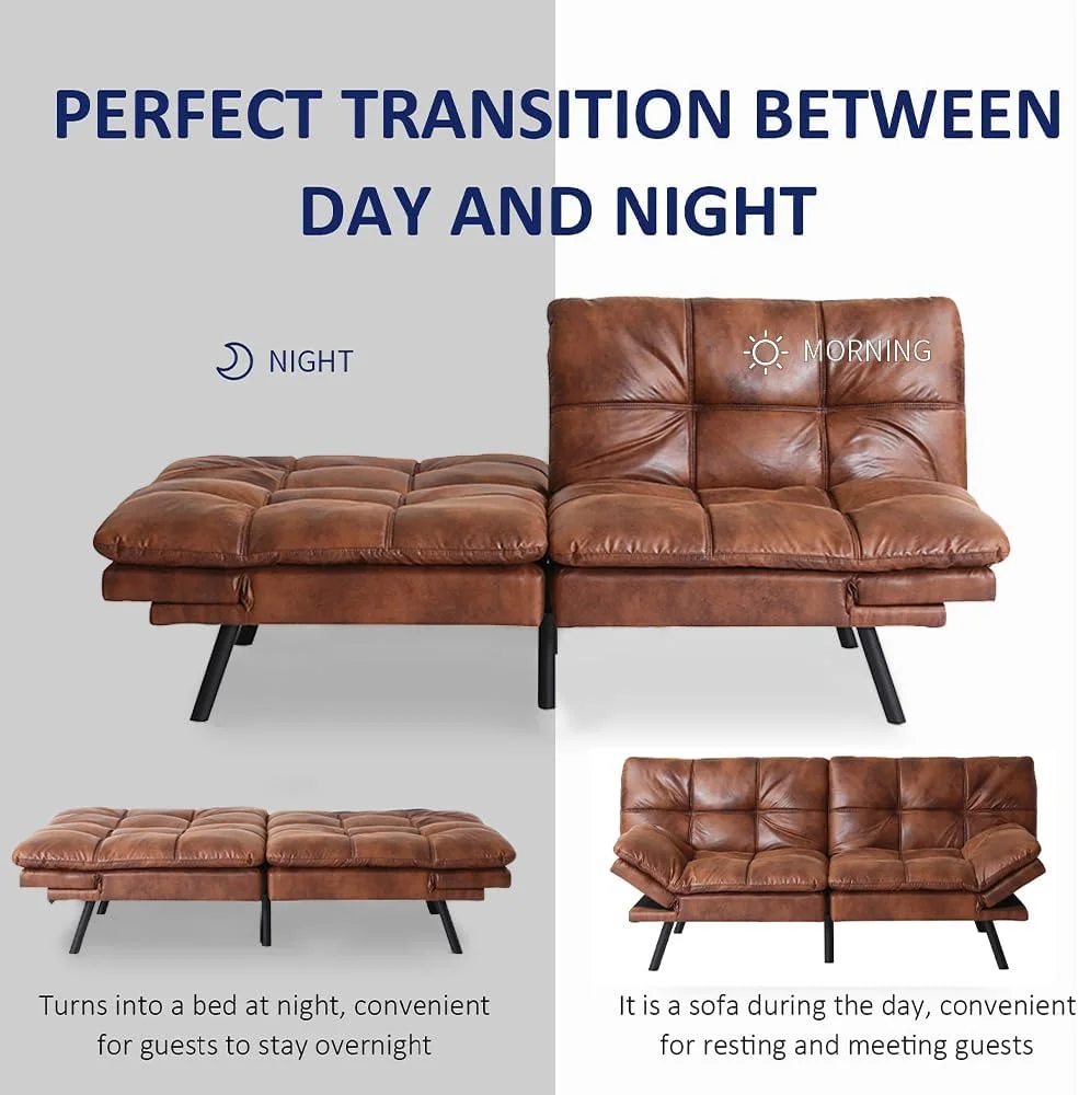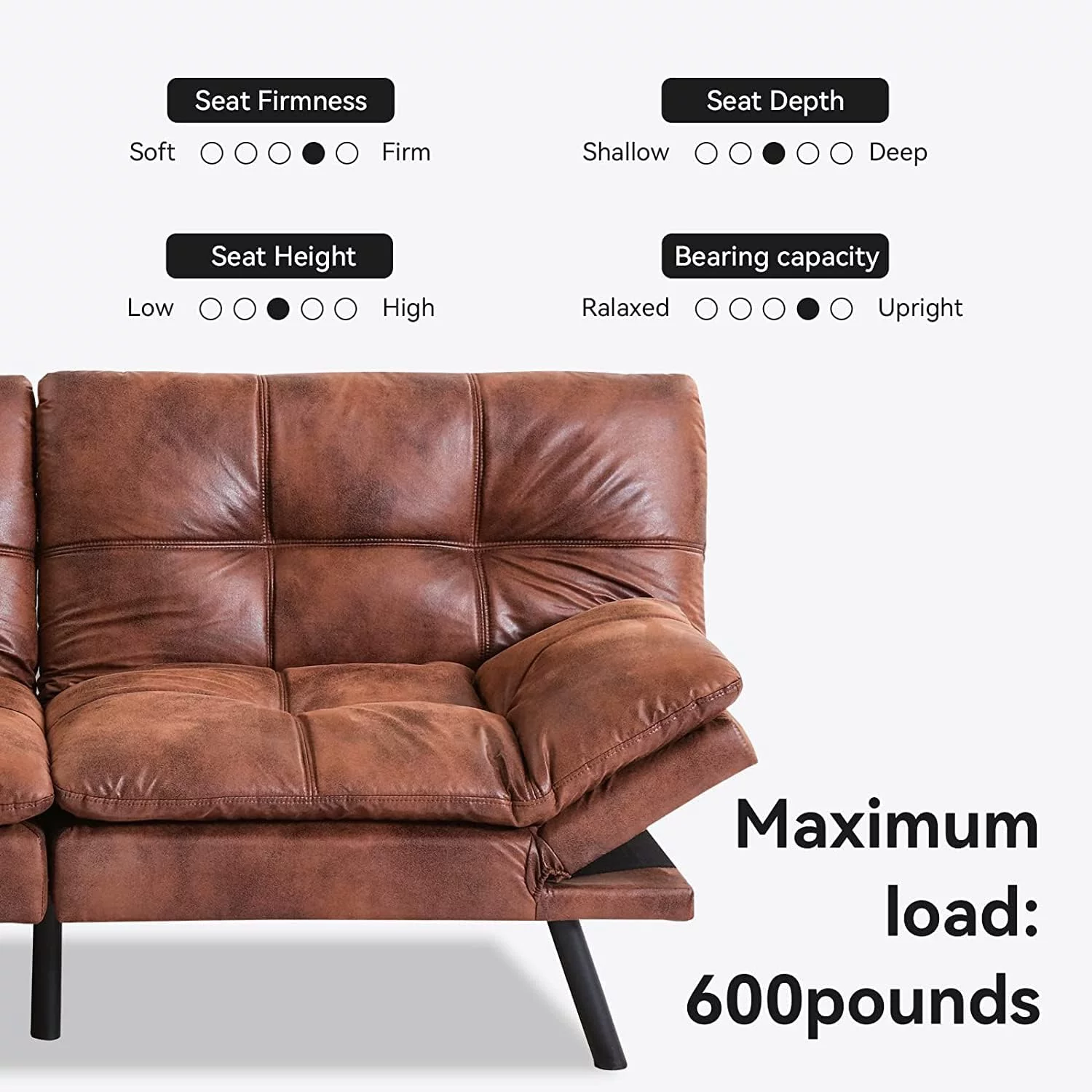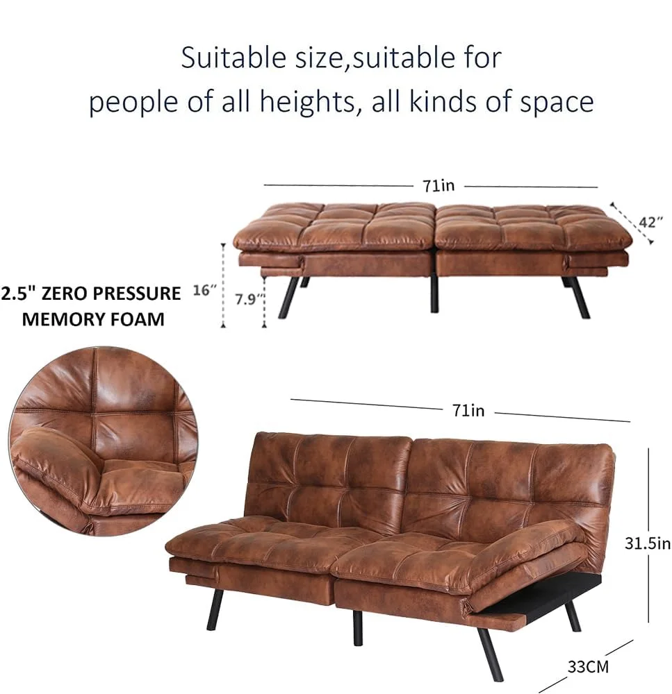 HESTINYSU 70.5'' Upholstered PU Leather Sofa, Memory Foam Futon Couch Bed, Modern Folding Sleeper Sofa,Brown