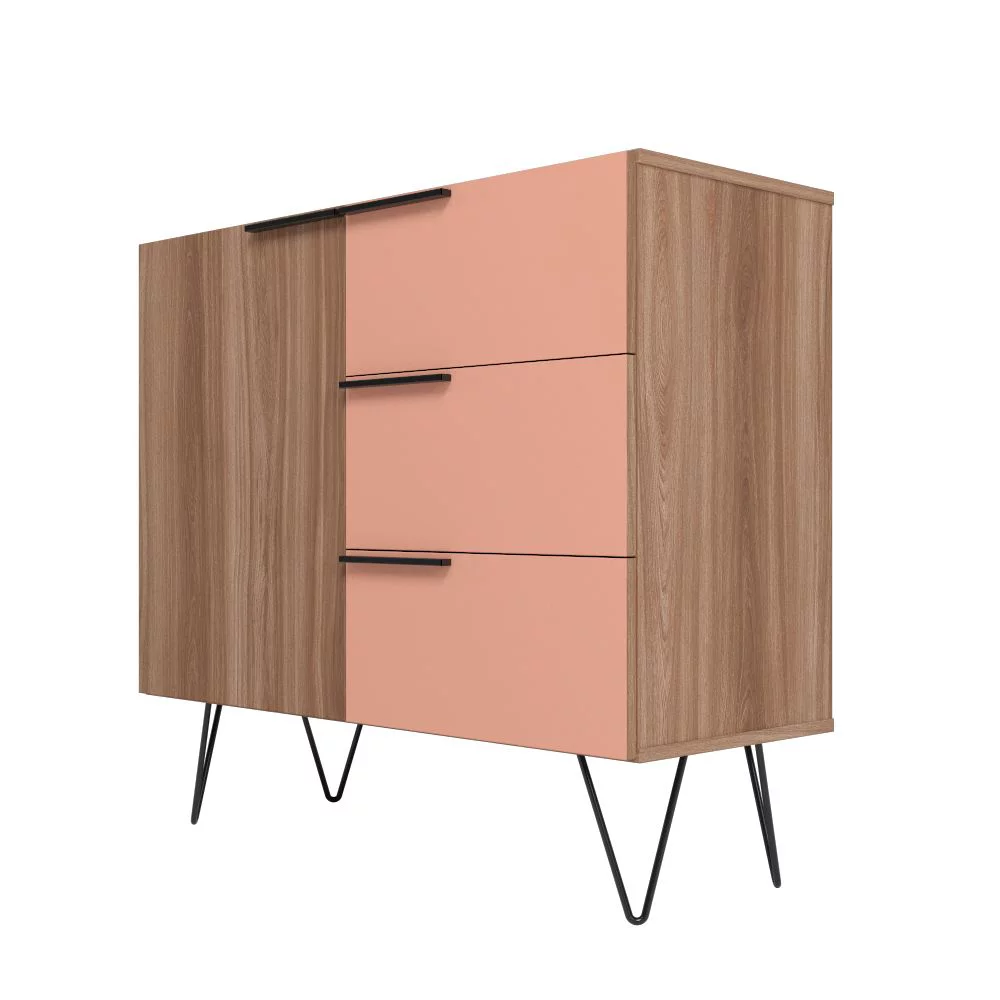 Manhattan Comfort Beekman 35.43 Dresser with 2 Shelves in Brown and Pink